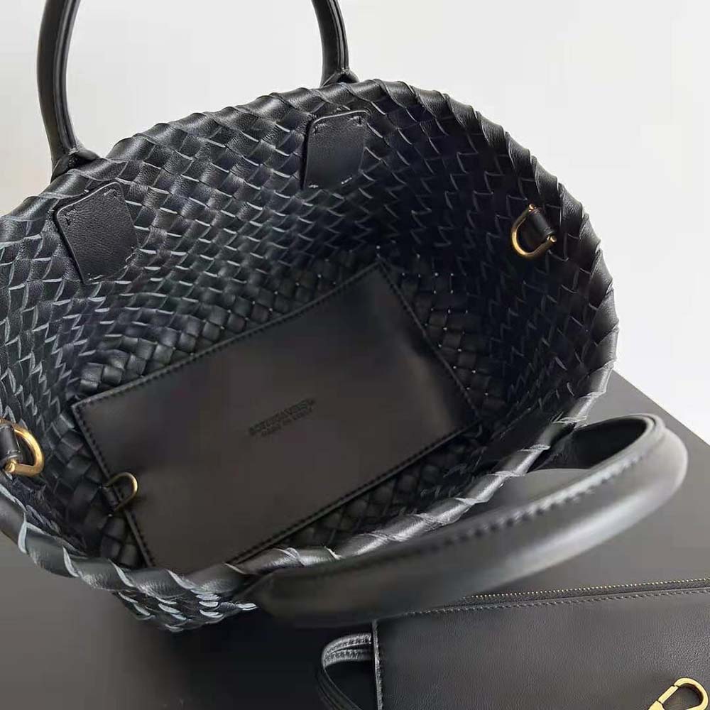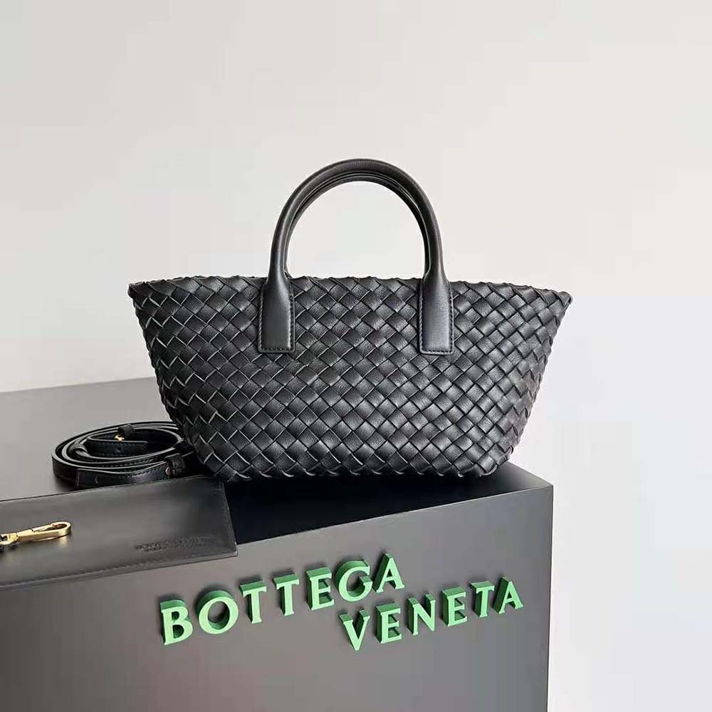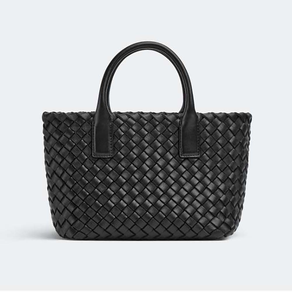 Bottega Veneta Women Mini Cabat Intreccio Leather 1:1 Replica Tote Bag with Detachable Strap-Black