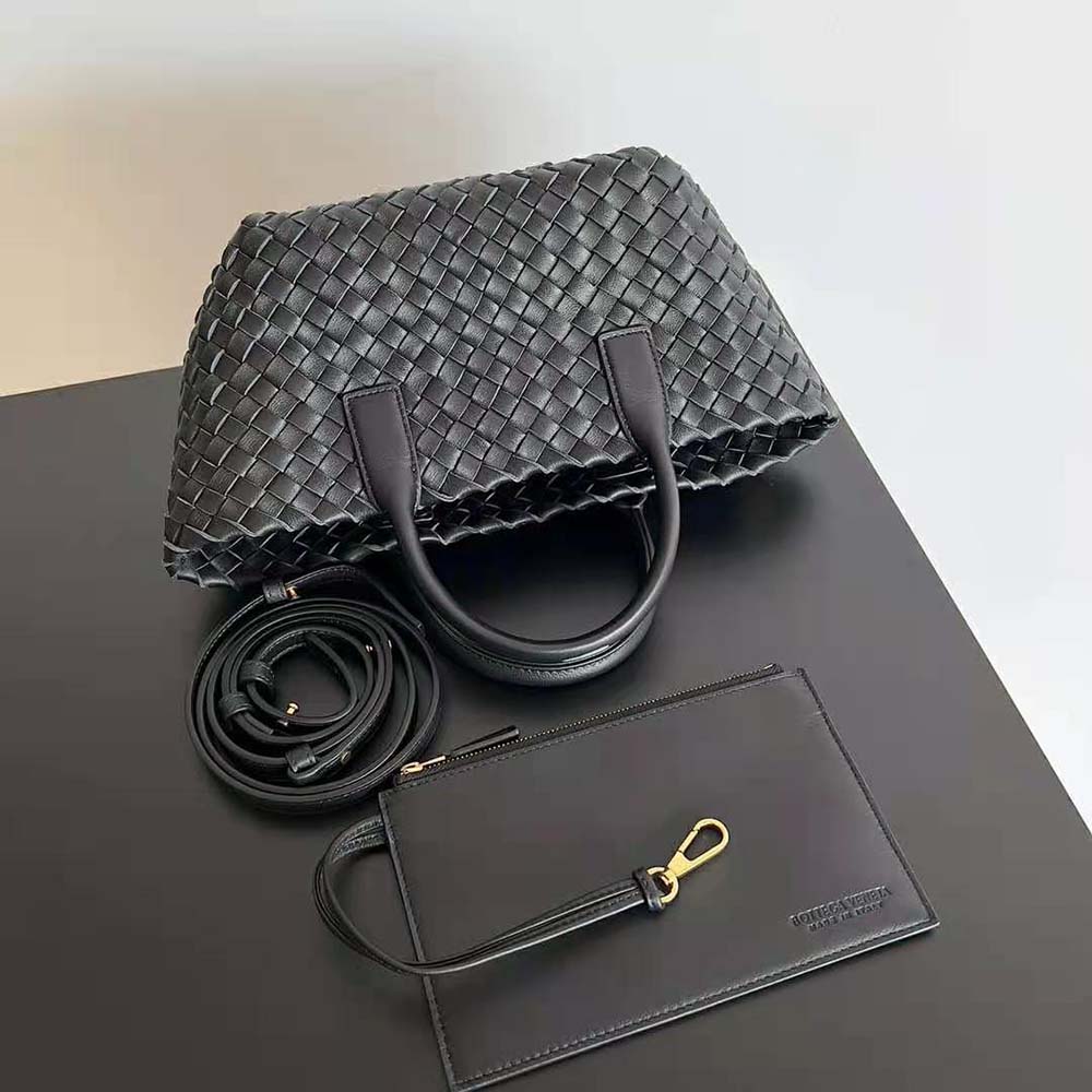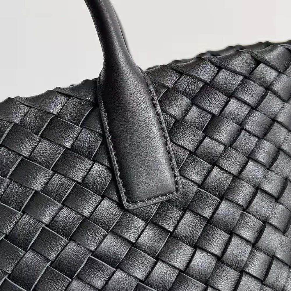 Home Bags & Luggage Handbags Bottega Veneta Women Mini Cabat Intreccio Leather 1:1 Replica Tote Bag with Detachable Strap-Black