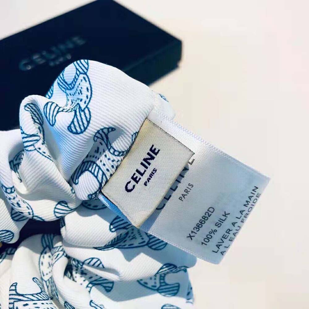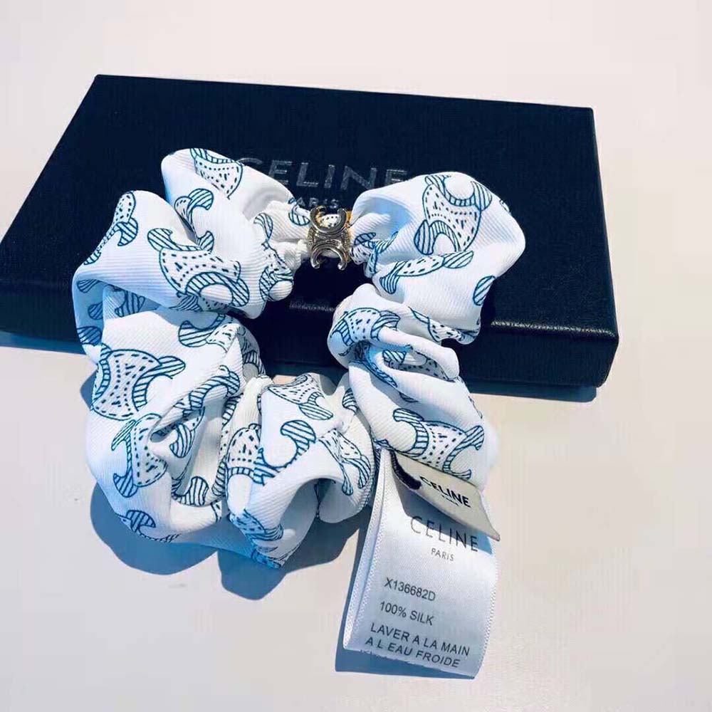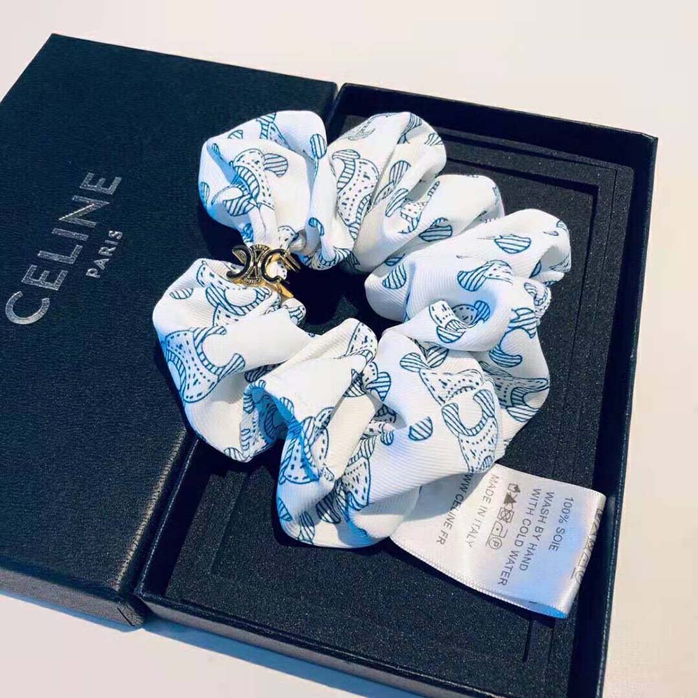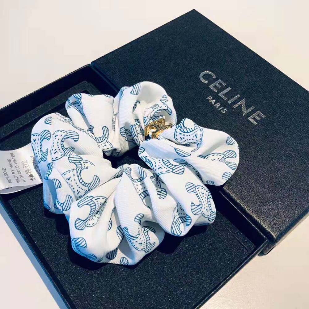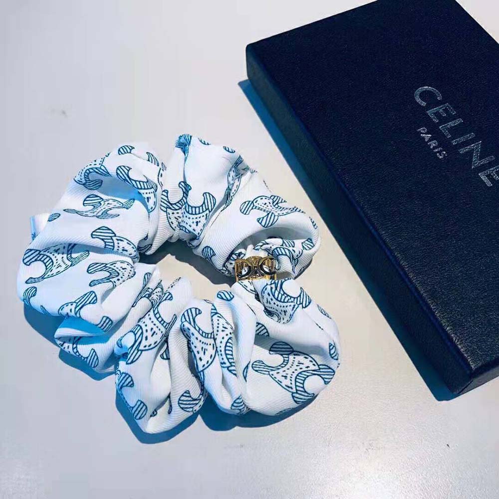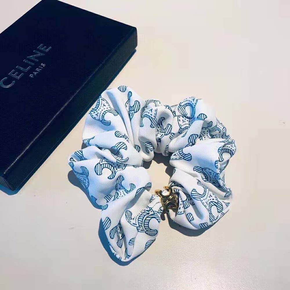 Celine Women Scrunchy Celine Triomphe Toile De Jouy Bracelet Mirror Quality in Brass with Gold Finish and White and Navy Silk