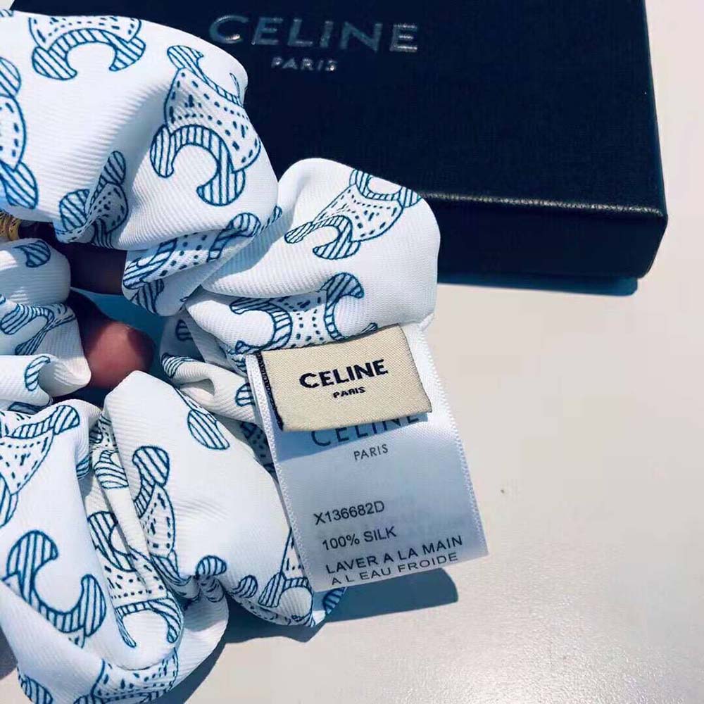 Celine Women Scrunchy Celine Triomphe Monogram Bracelet Mirror Quality in Brass with Gold Finish and White Silk $ 79