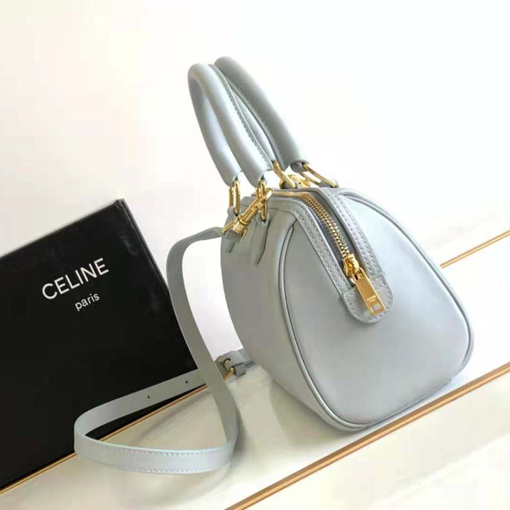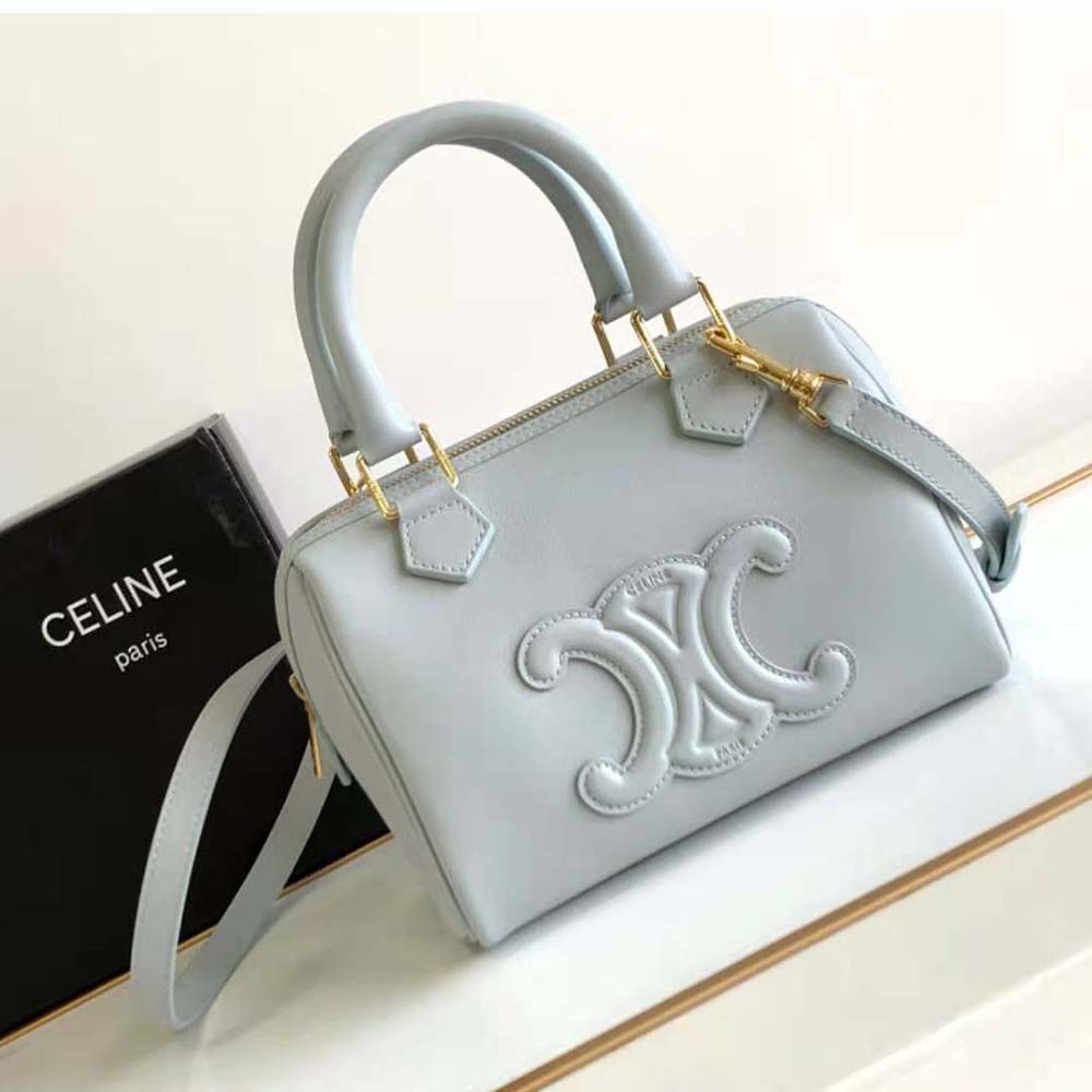 Home Bags & Luggage Handbags Celine Women Small Boston Cuir Triomphe Mirror Copy in Smooth Calfskin-Blue