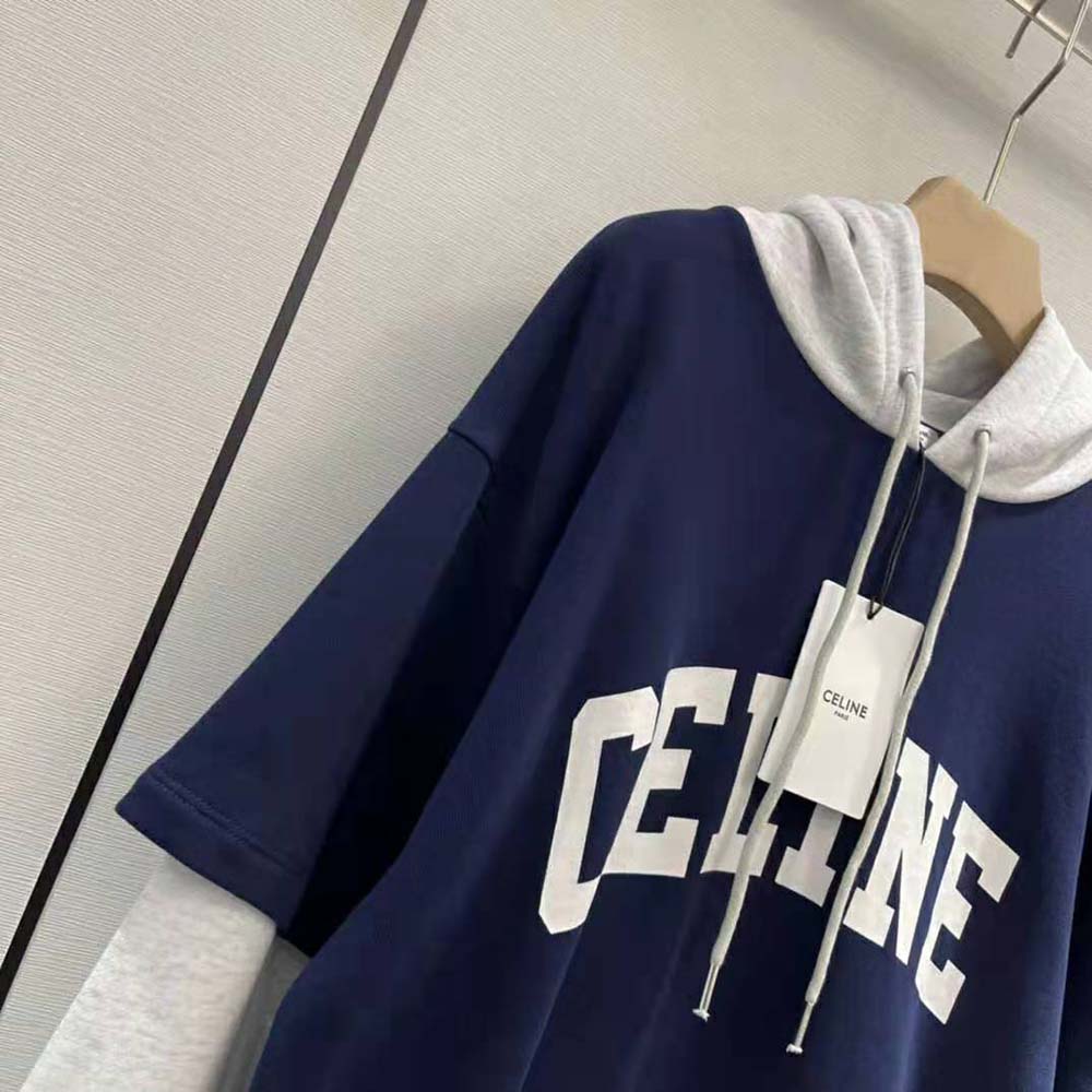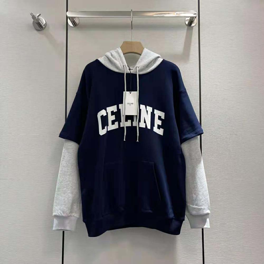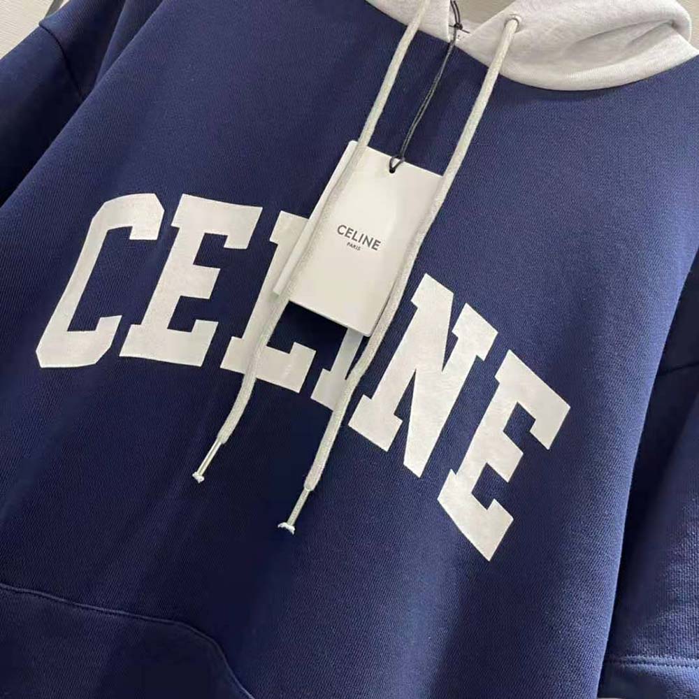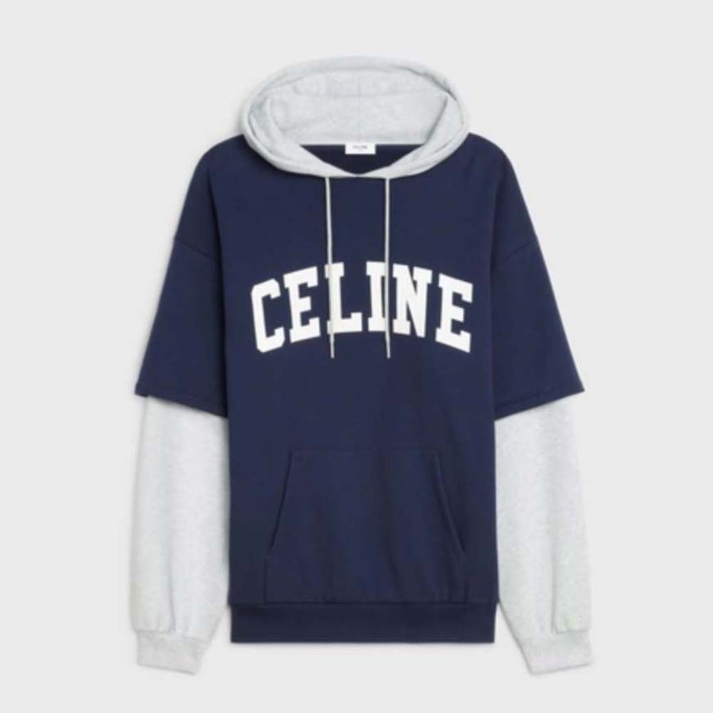 - HOODED COLLAR WITH ADJUSTABLE DRAWSTRING AND CELINE-ENGRAVED METAL AGLETS