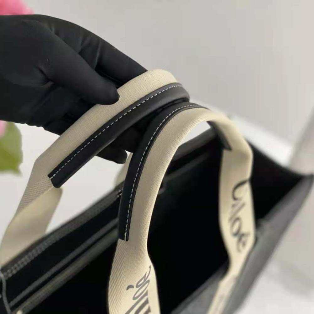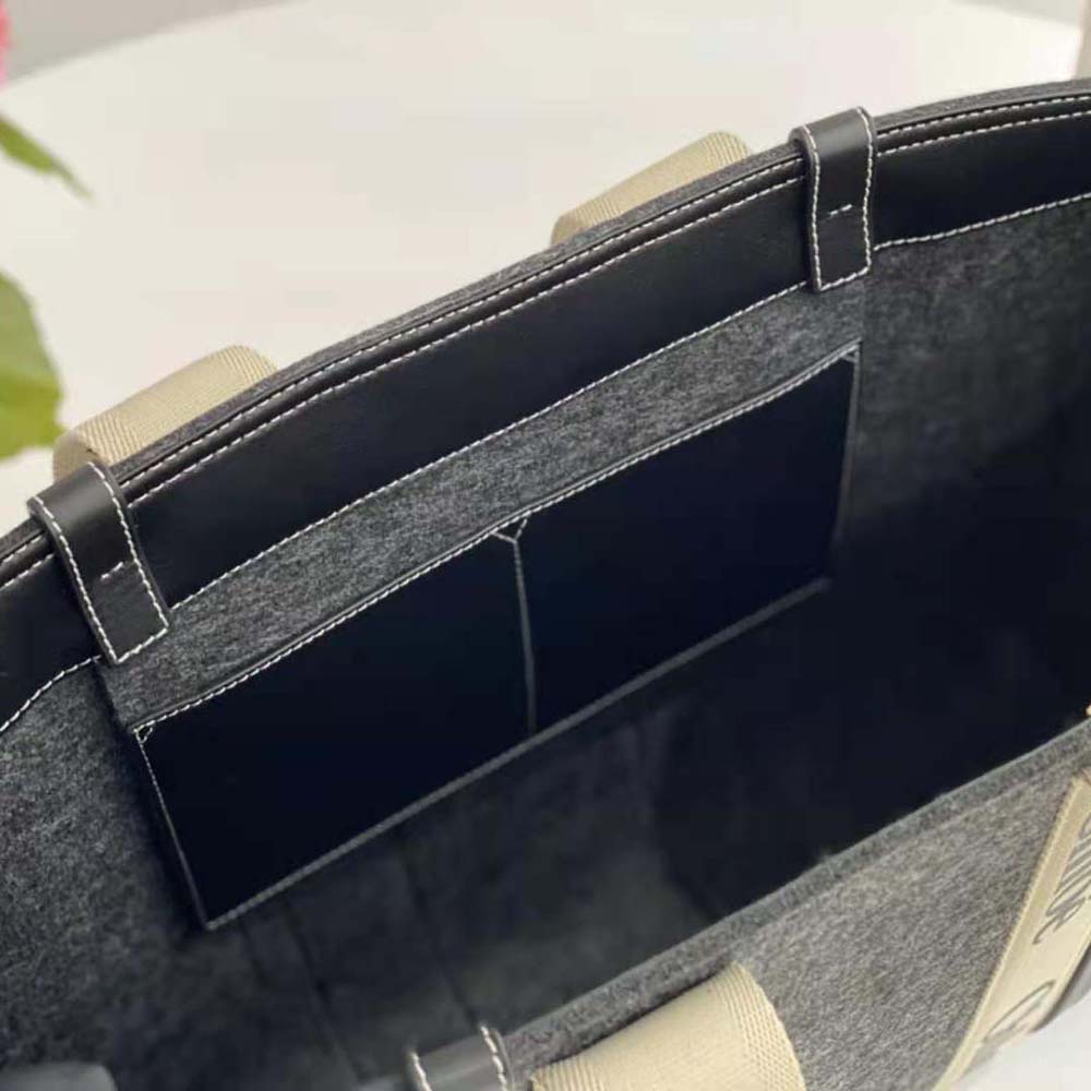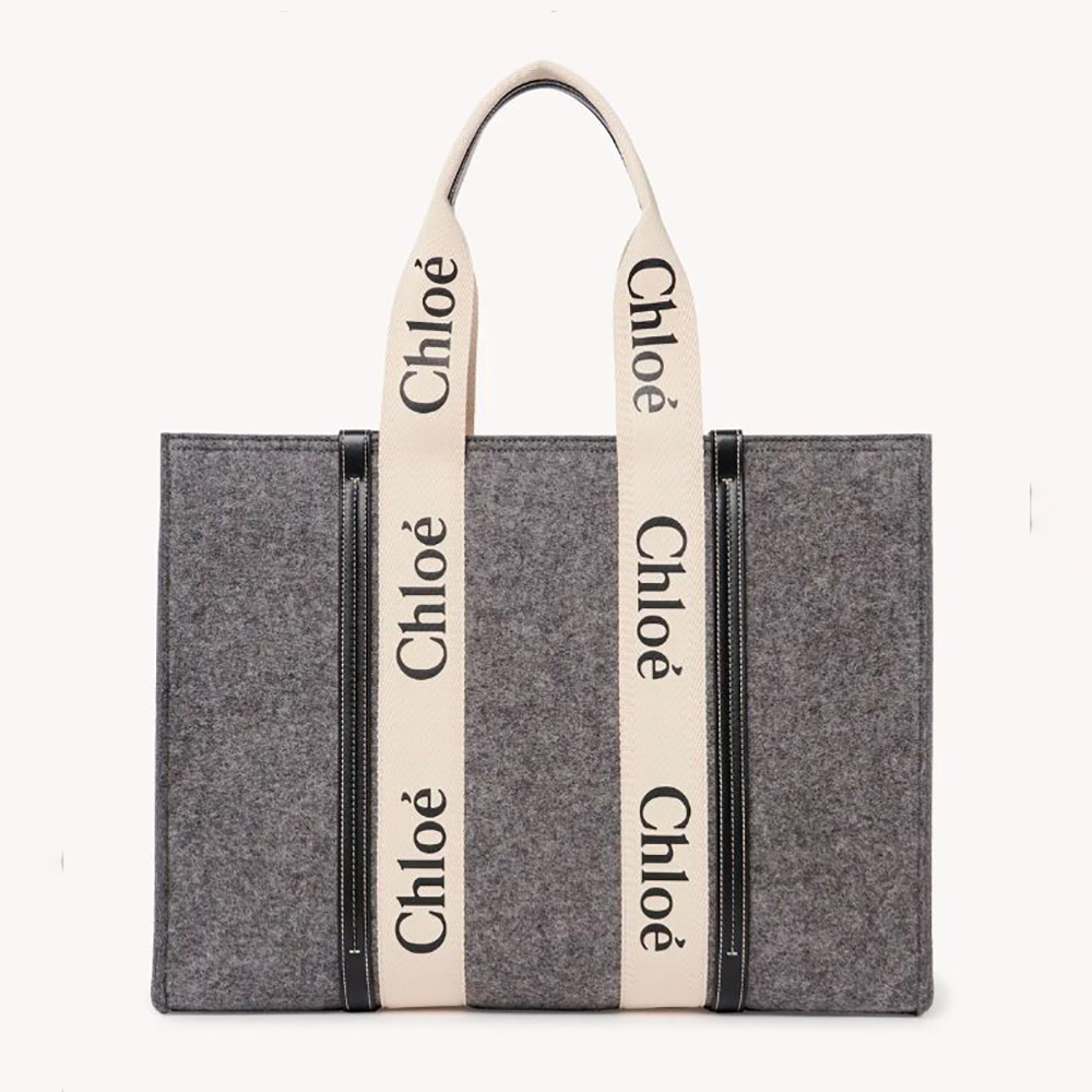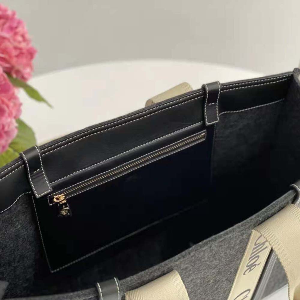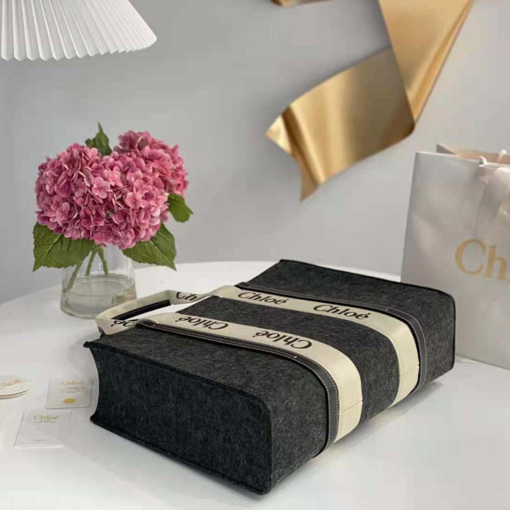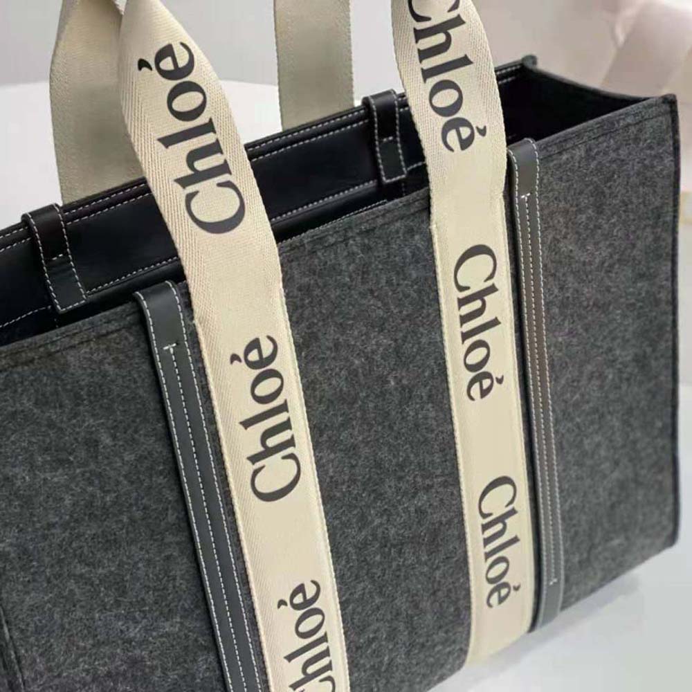 Mirror Copy Chloe Women Large Woody Tote Bag in Recycled Felt and Shiny Calfskin-Gray