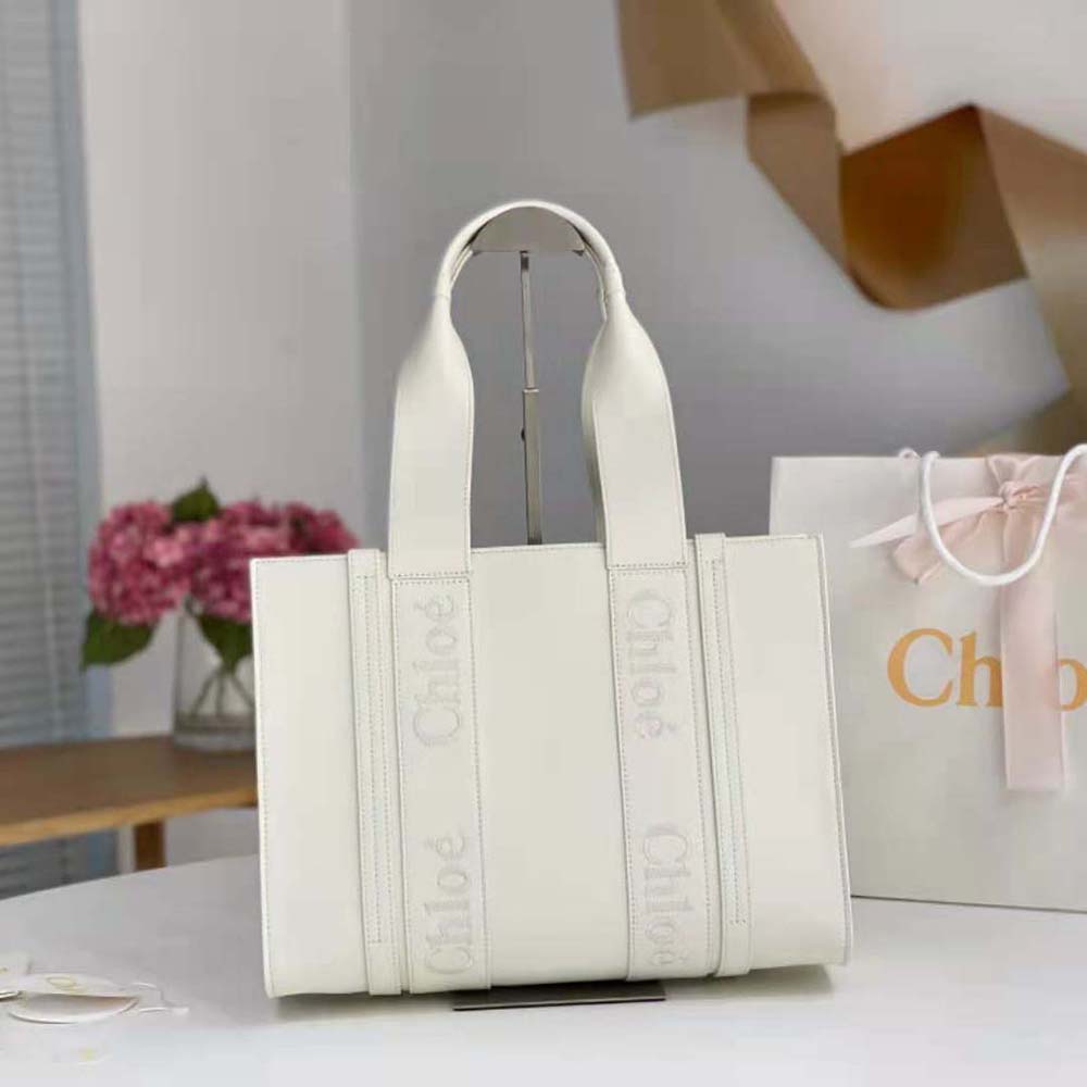 - Tote bag in smooth calfskin with embroidered Chloé logo