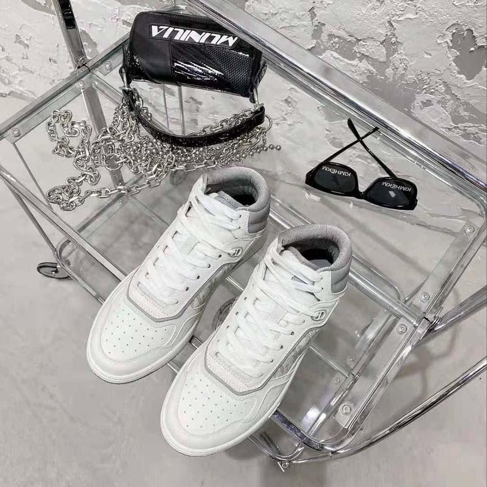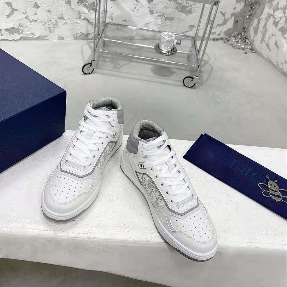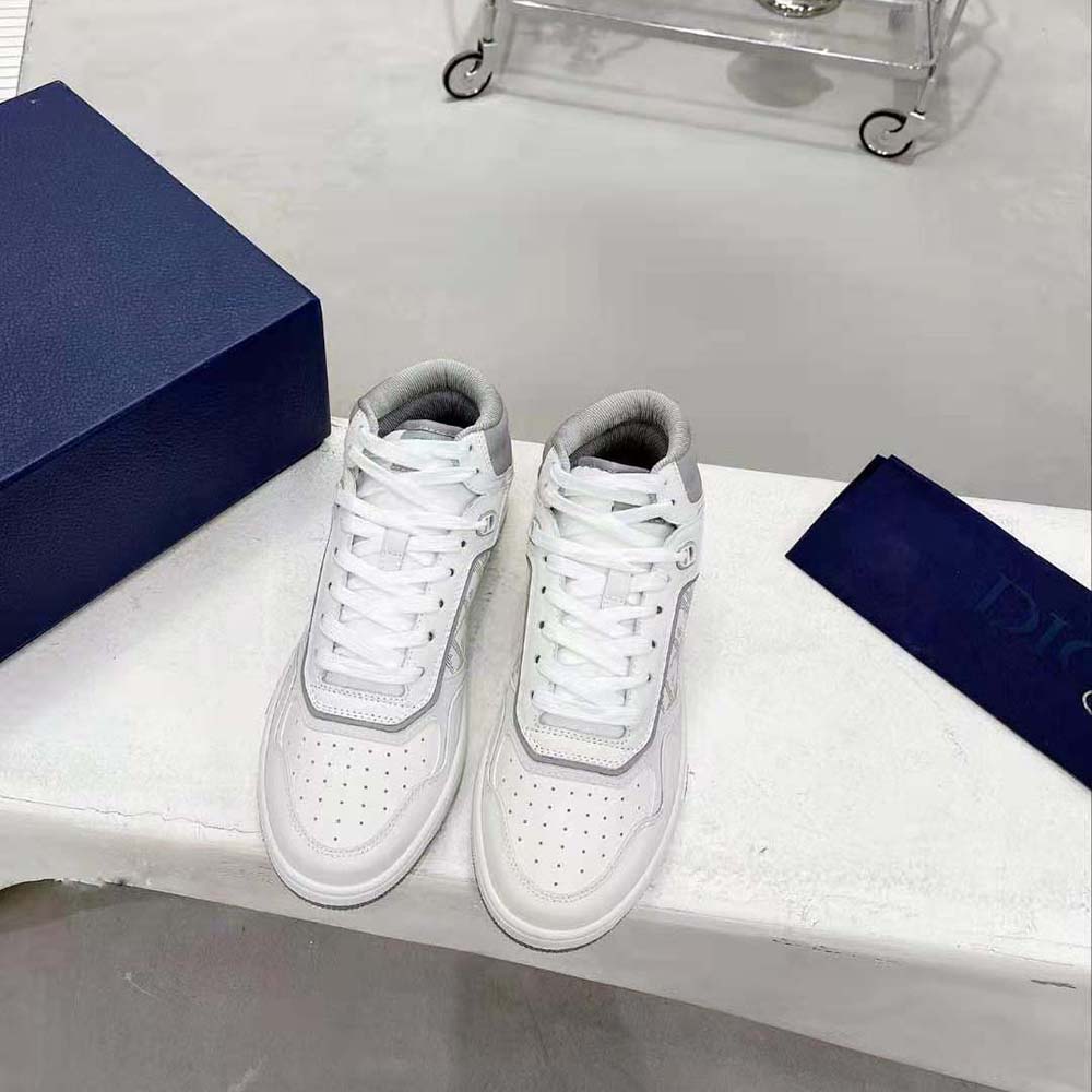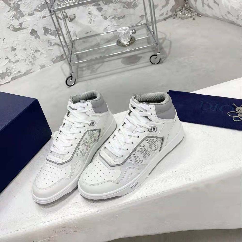 Dior Men B27 High-Top Sneaker White and Gray Smooth Calfskin