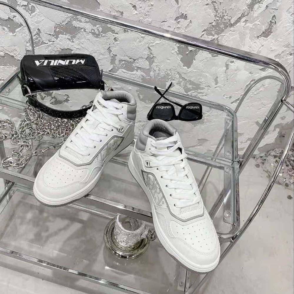 Home Shoes Sneakers Buy Fake Dior Men B27 High-Top Sneaker White and Gray Smooth Calfskin