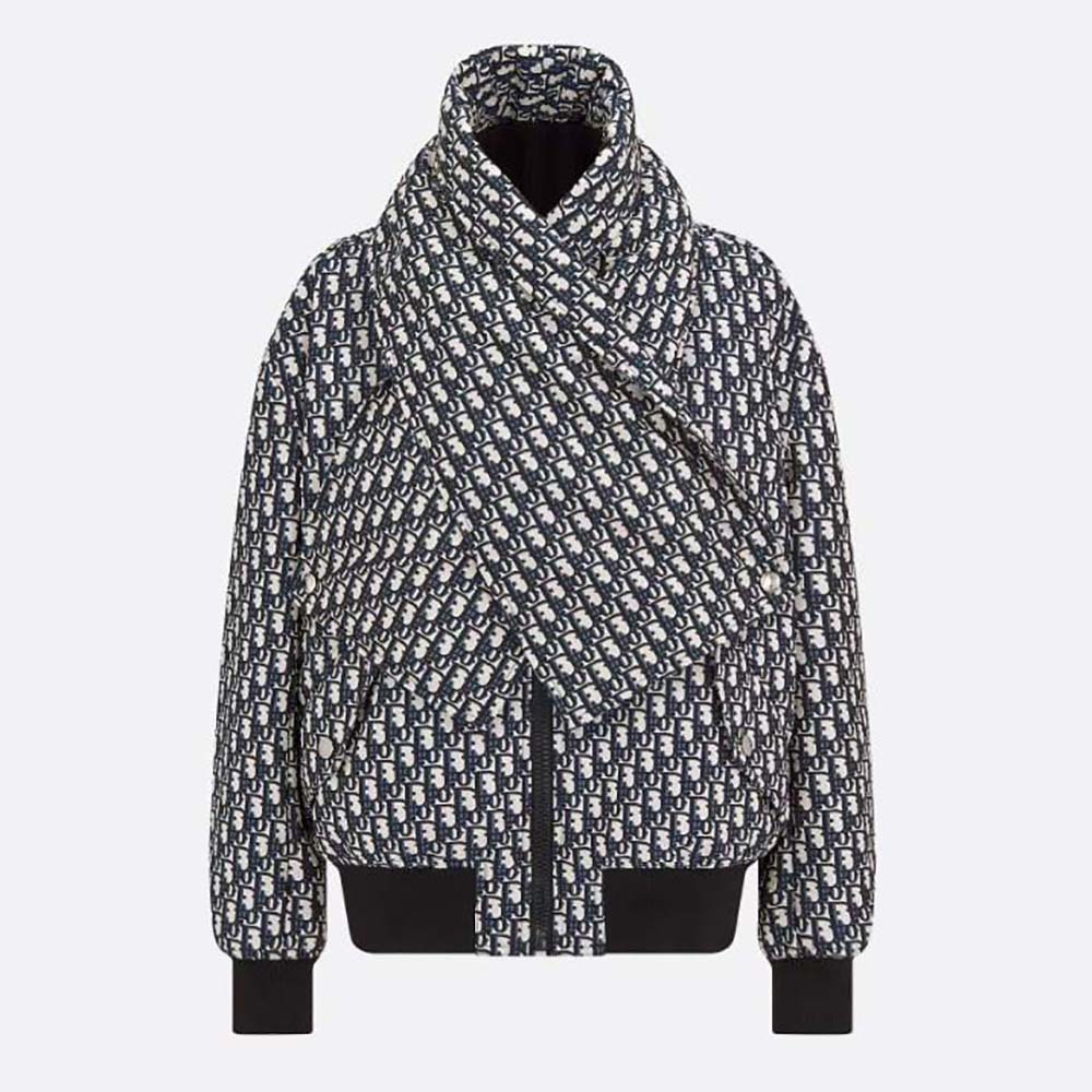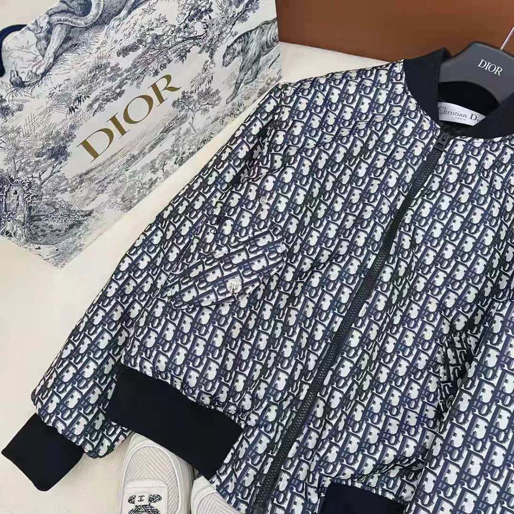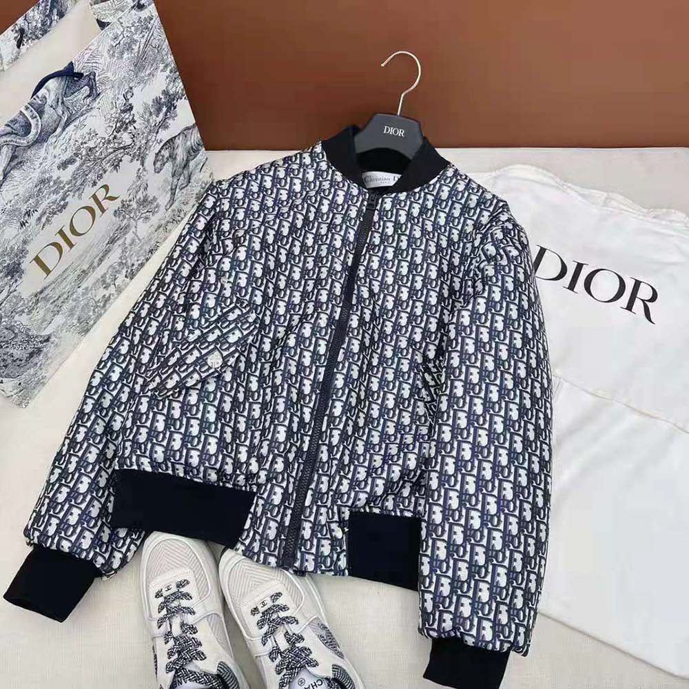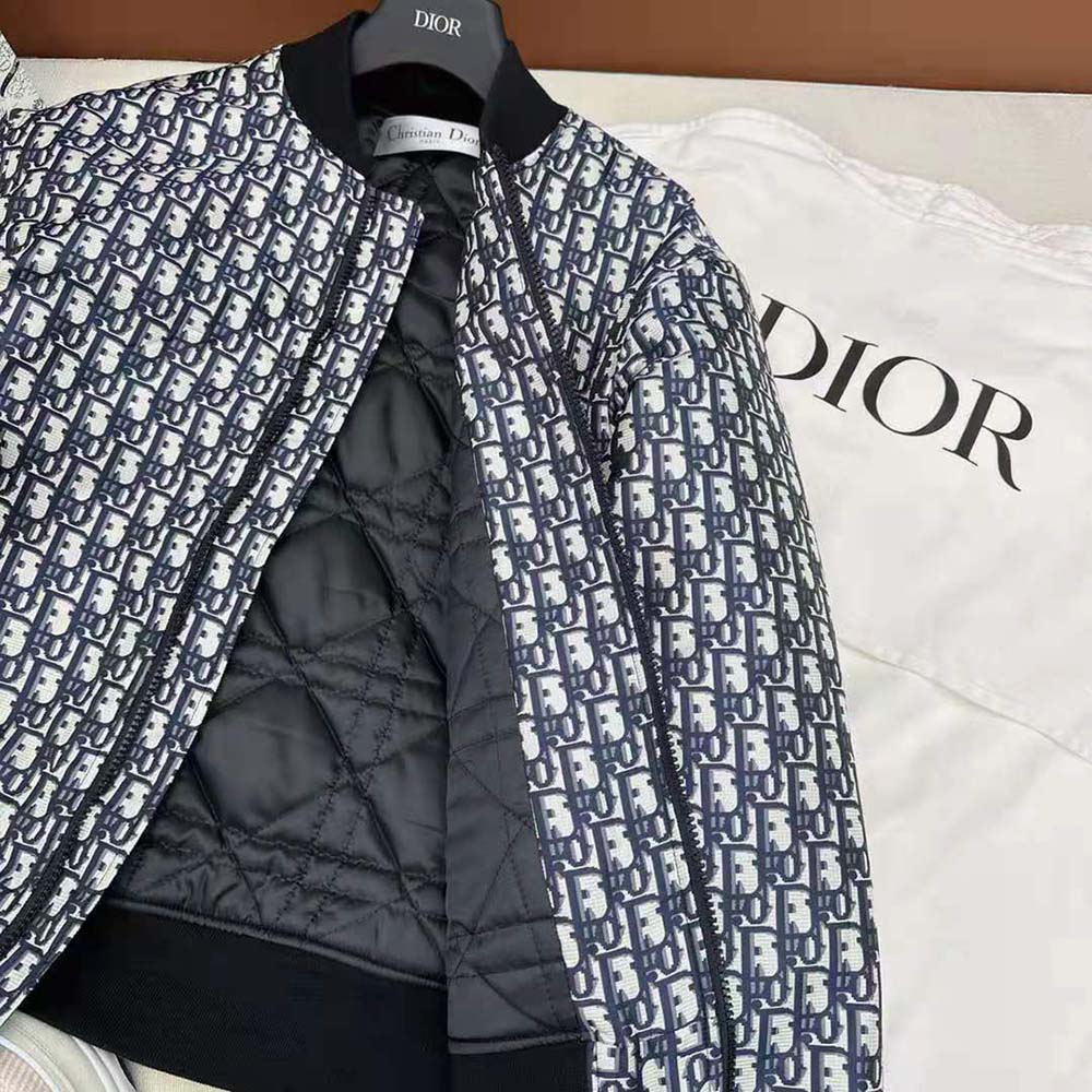 - The bomber jacket is available in a blue and ecru Dior Oblique motif,