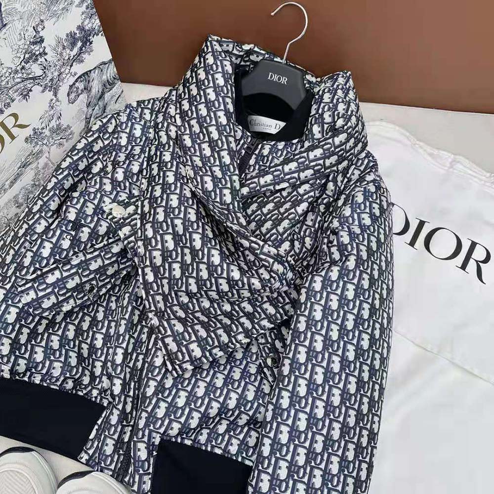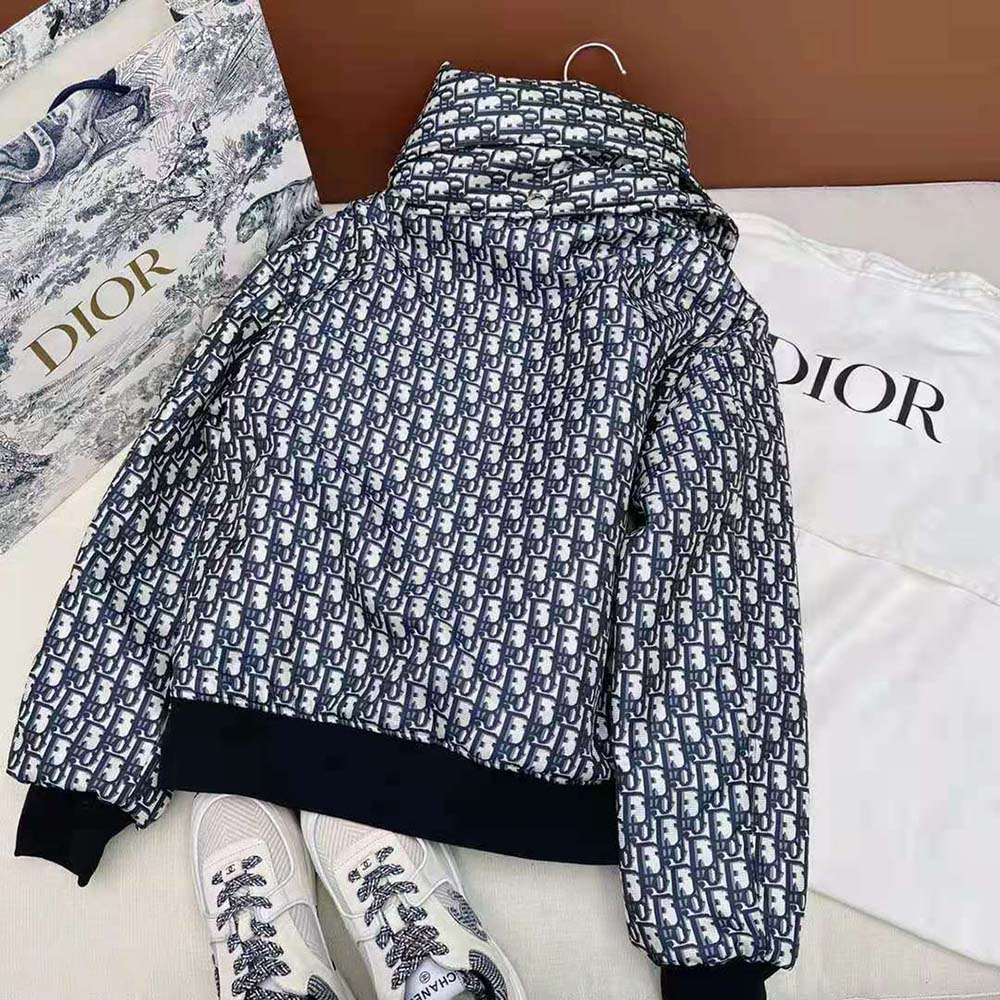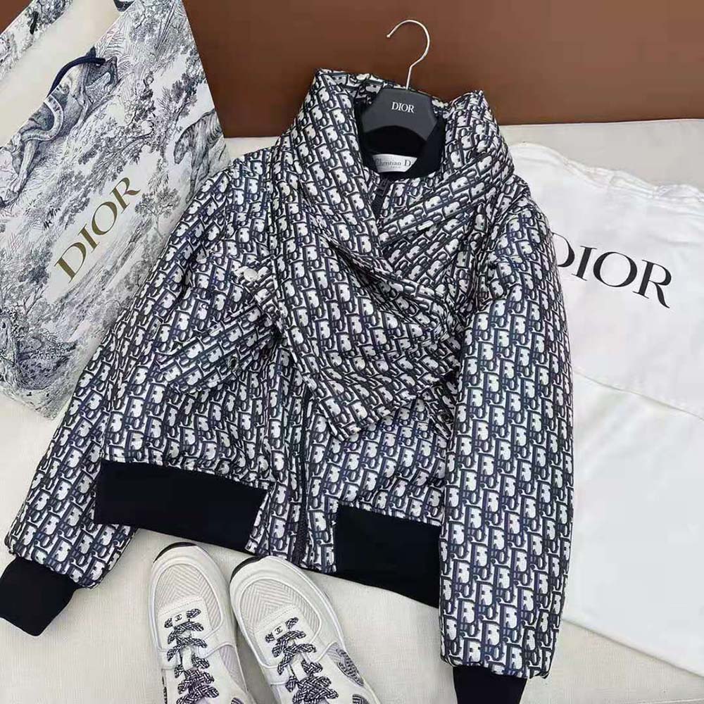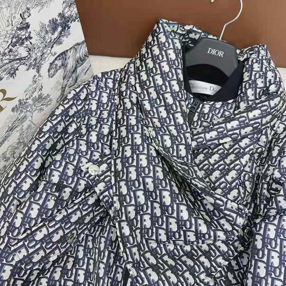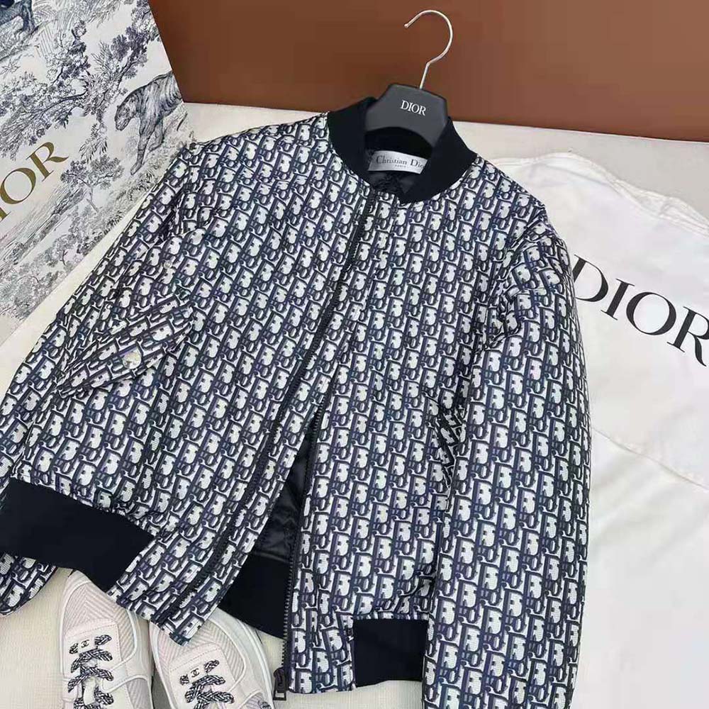 - The bomber jacket is available in a blue and ecru Dior Oblique motif,