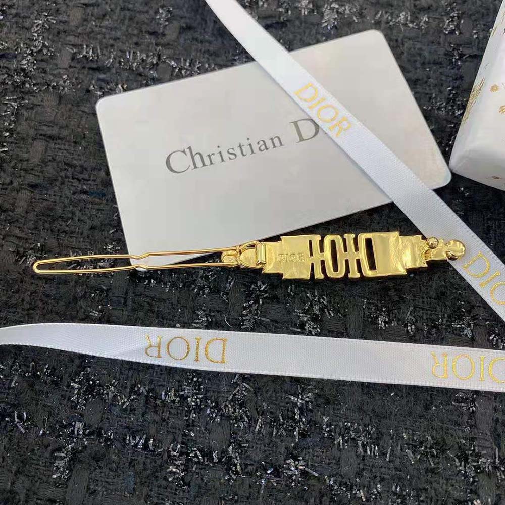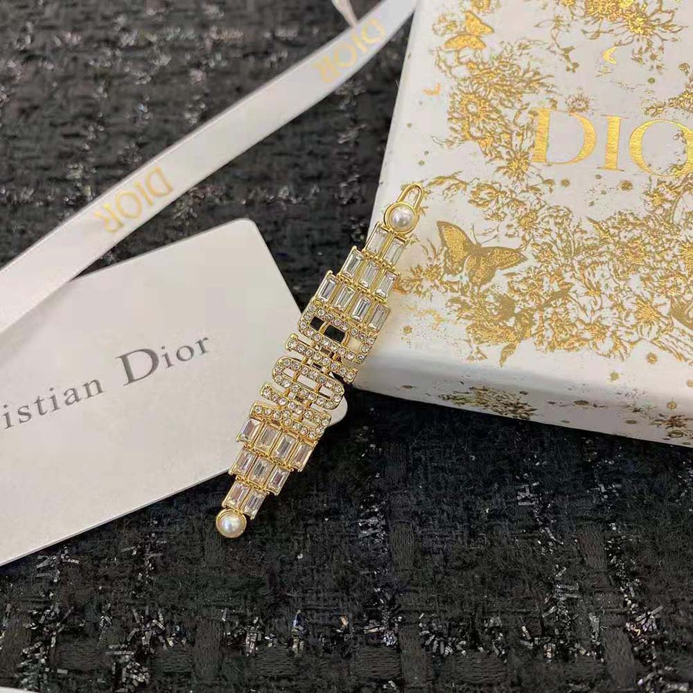 • Finely crafted in gold-finish metal, it features the ‘DIOR’ signature with pavĂ©-set white crystals.