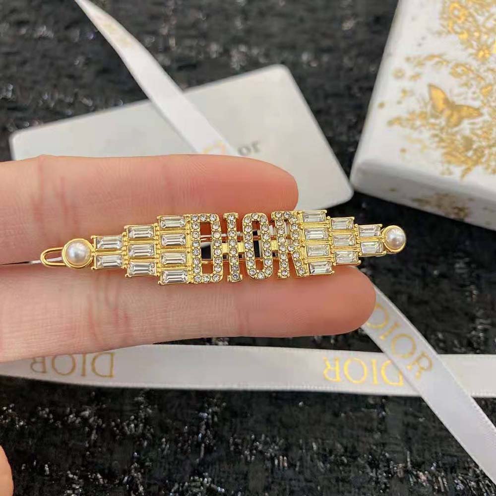Dior Women Dio(r)evolution Barrette Gold-Finish Metal with White Crystals and White Resin Pearls