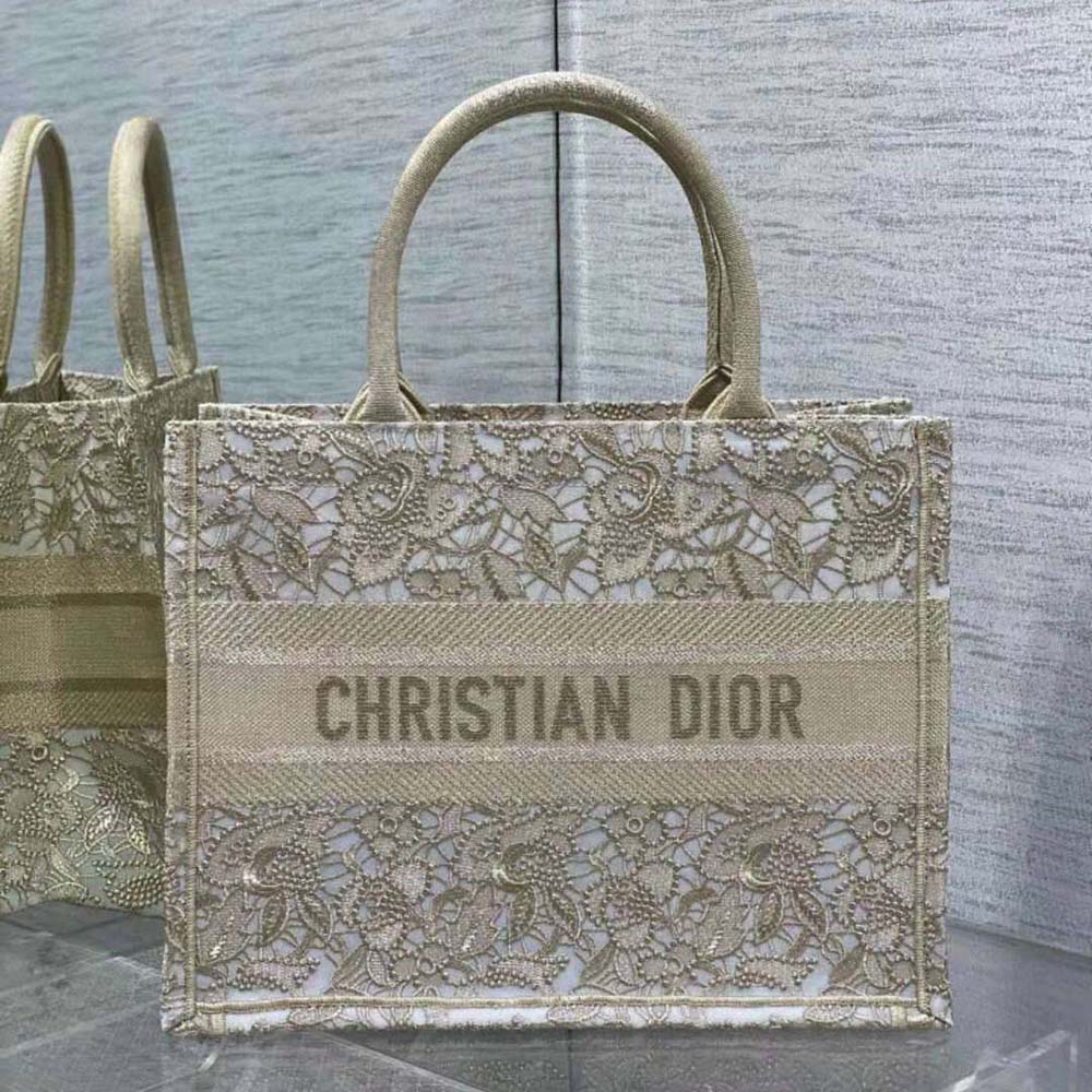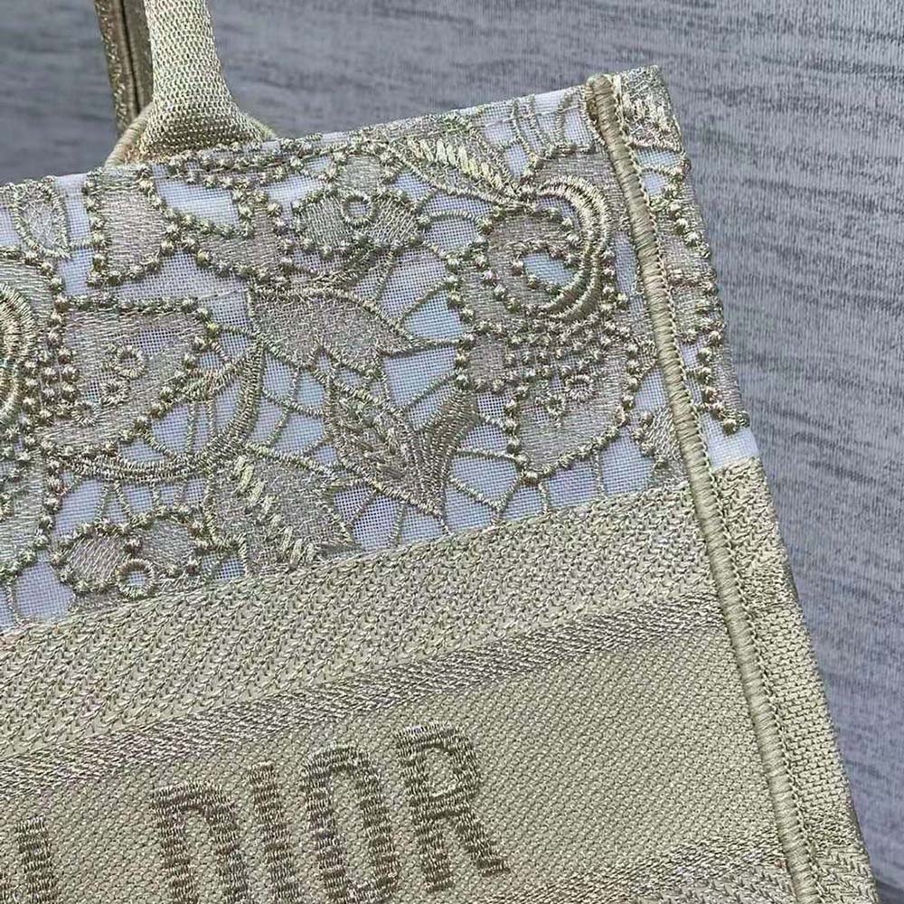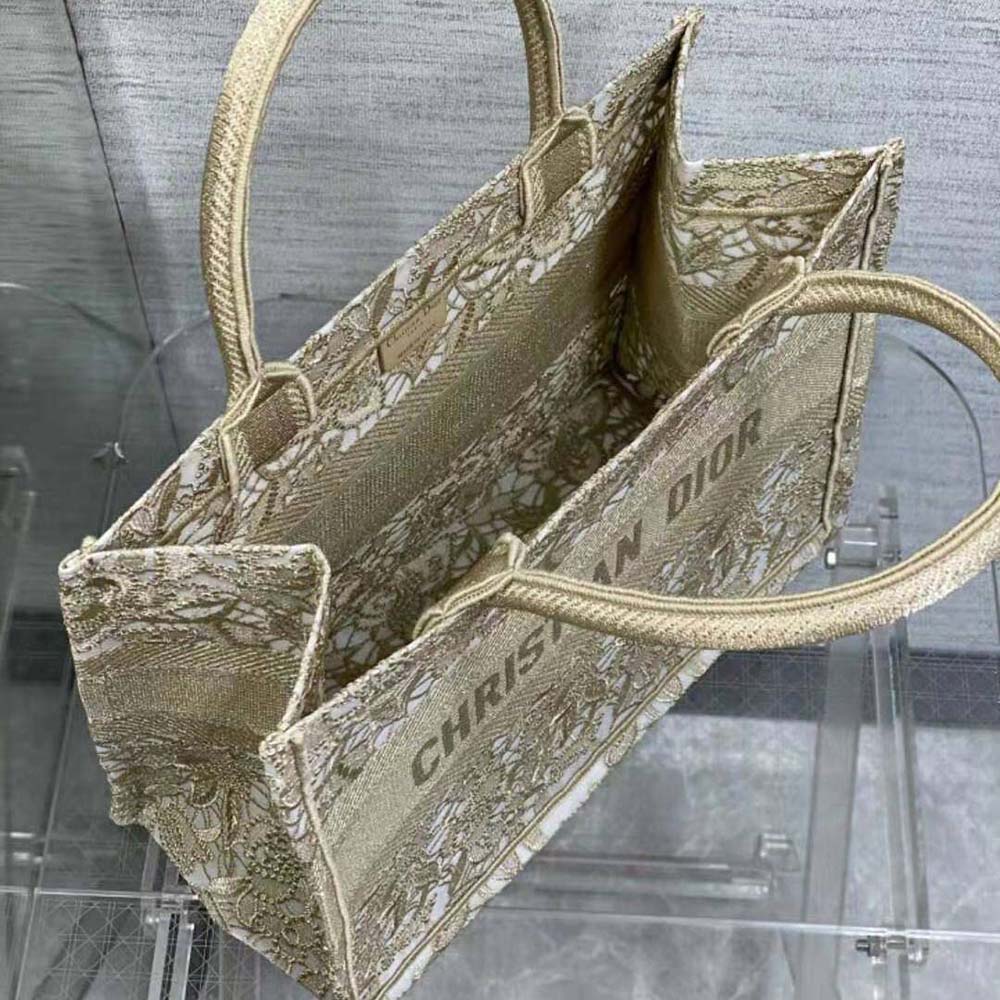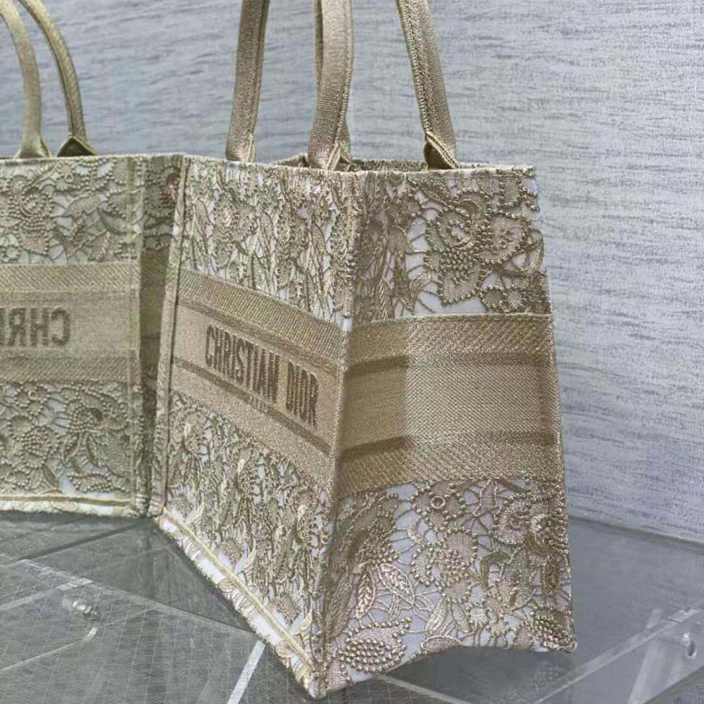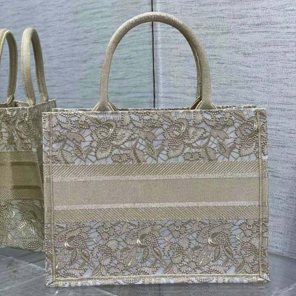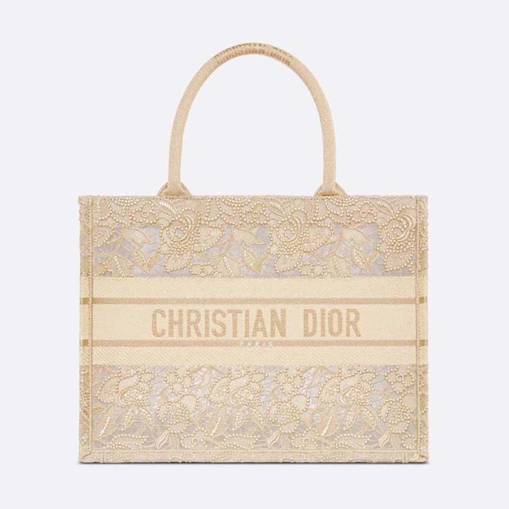 Buy Replica Dior Women Medium Dior or Dior Book Tote Gold-Tone D-Lace Embroidery with Macramé Effect