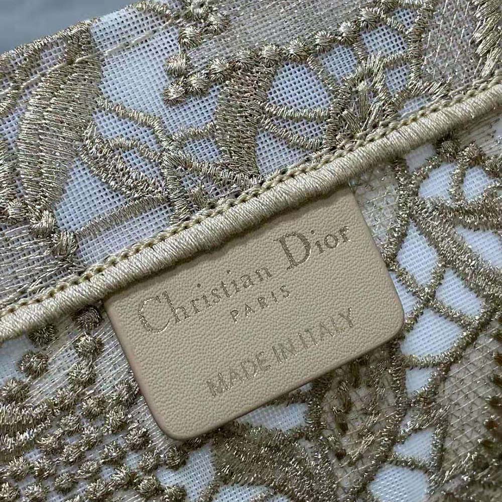 Dior Women Medium Dior or Dior Book Tote Gold-Tone D-Lace Embroidery with Macramé Effect