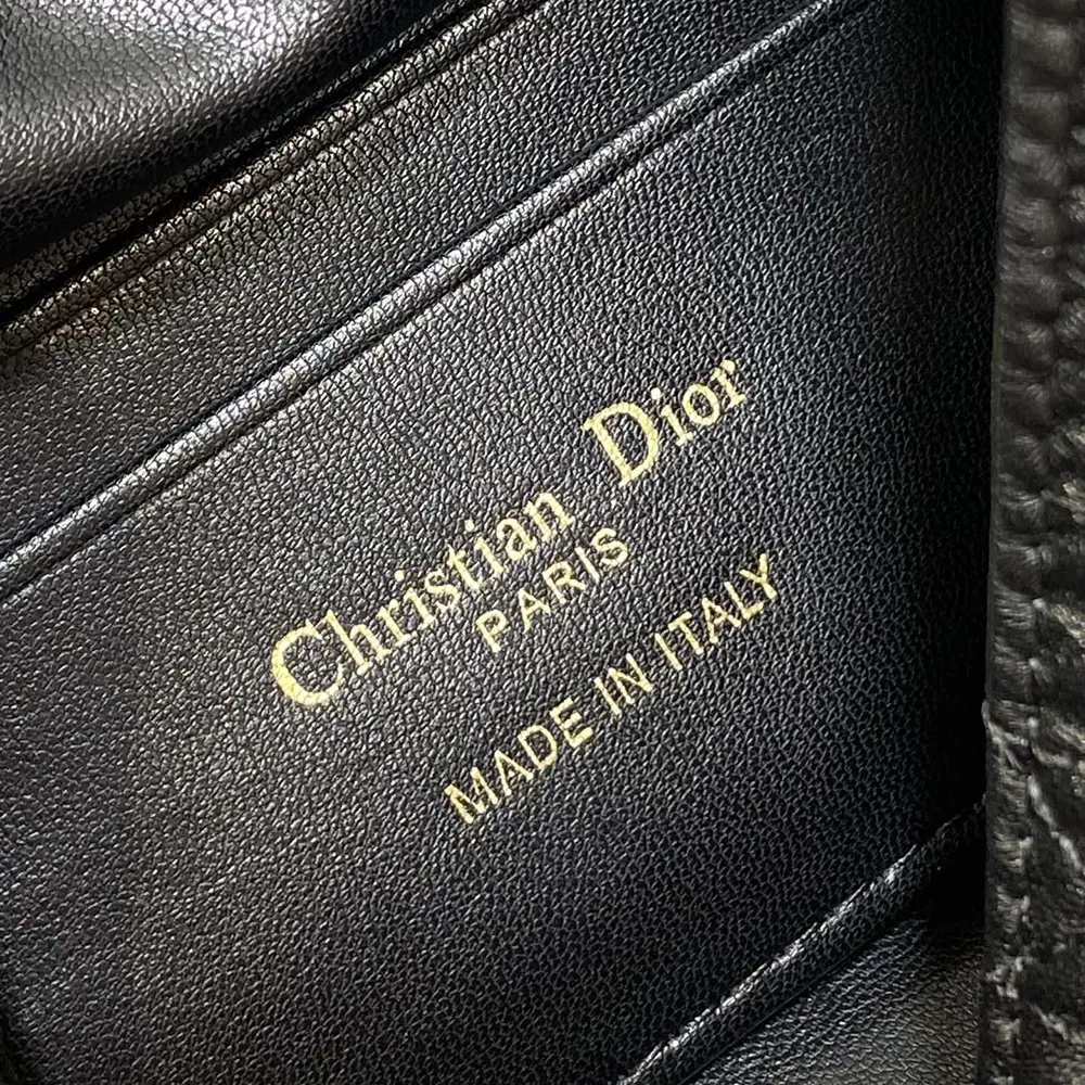 • Constructed in black lambskin enhanced by Macrocannage topstitching and the CD signature on the front,