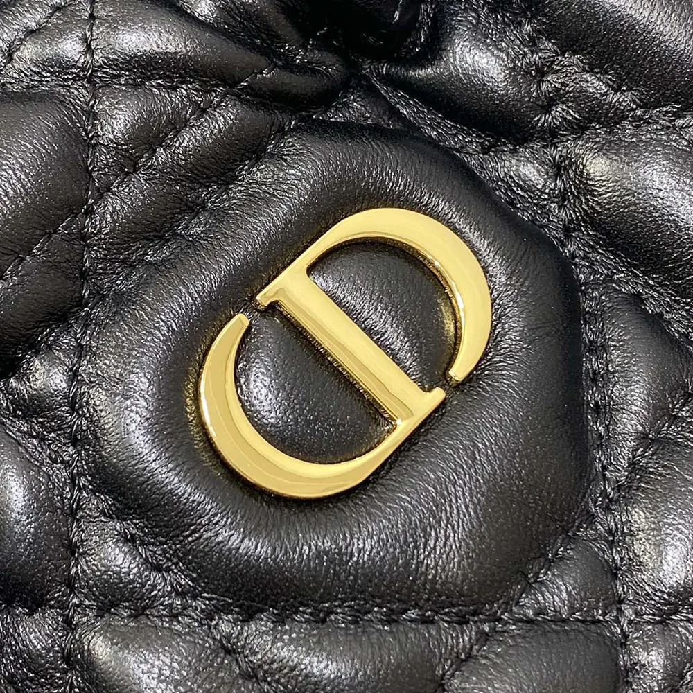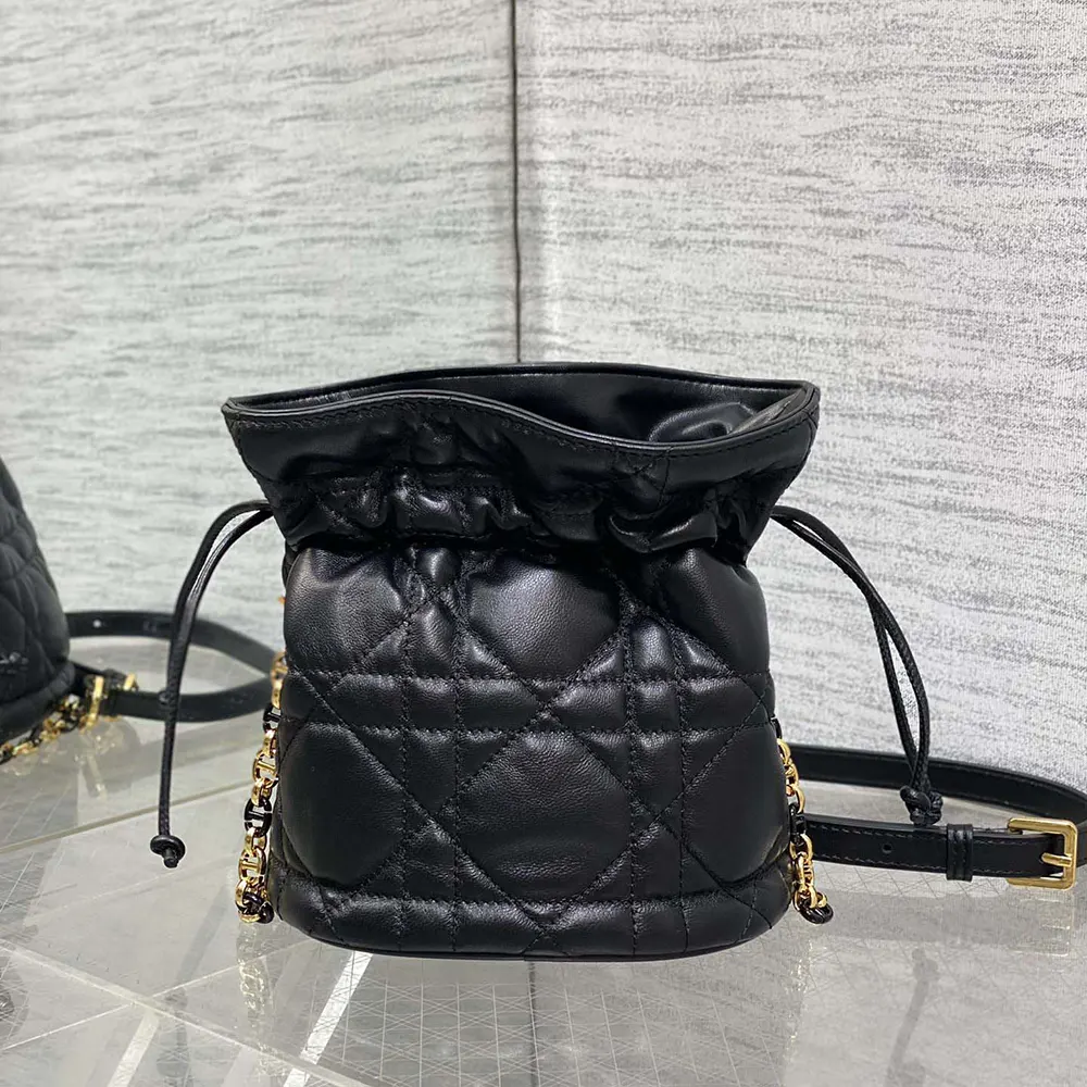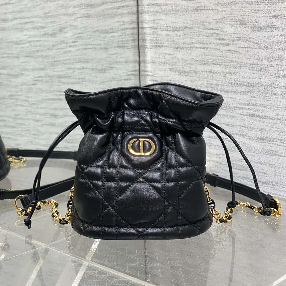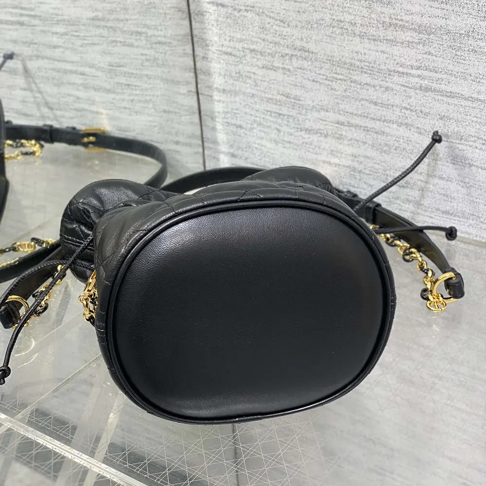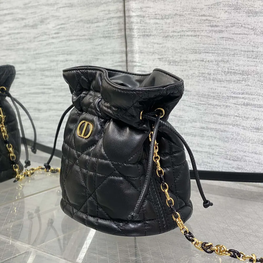 Dior Women Miss Caro Mini Bucket Bag with Drawstring Black Macrocannage Lambskin