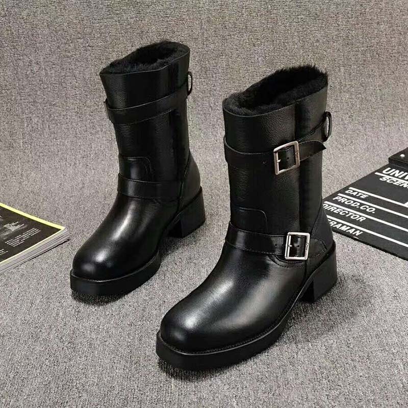 - Visible wool lining Aged metal buckles