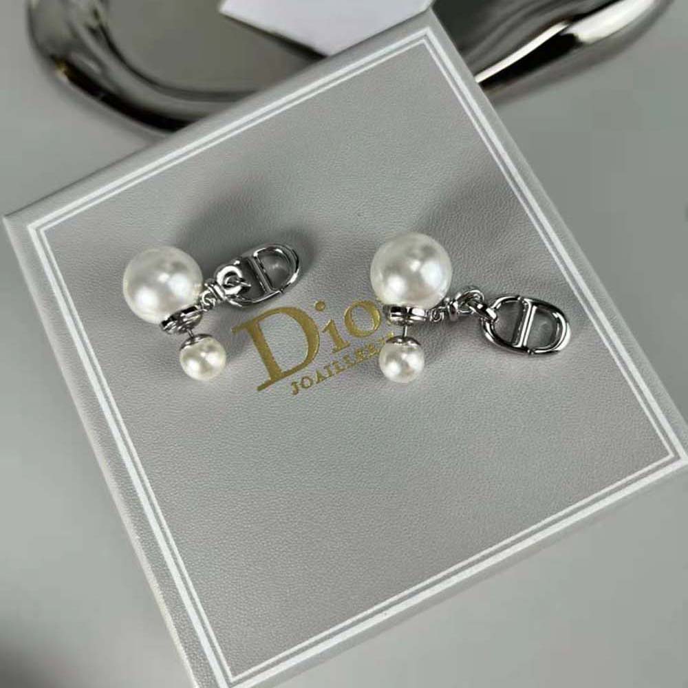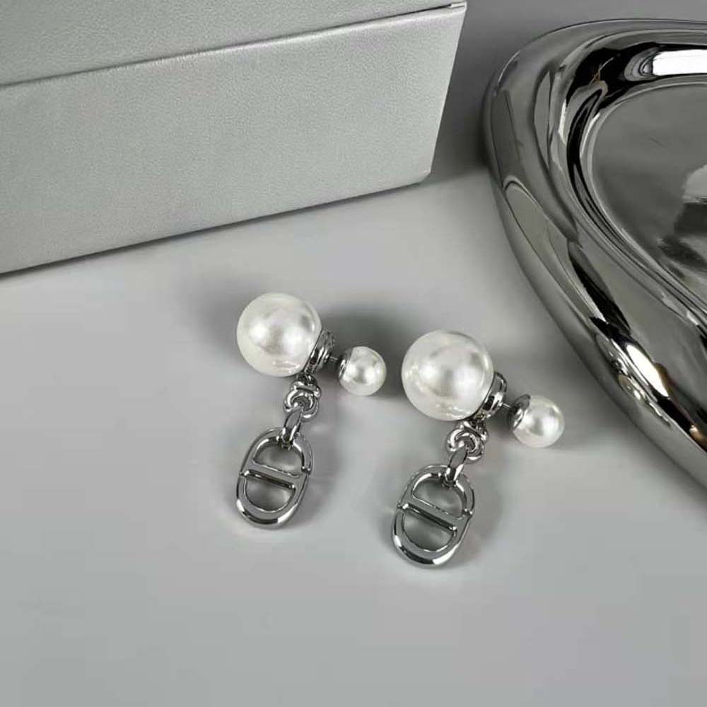 Dior Women Tribales Earrings Silver-Finish Metal with White Resin Pearls