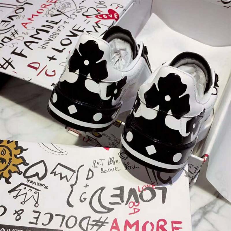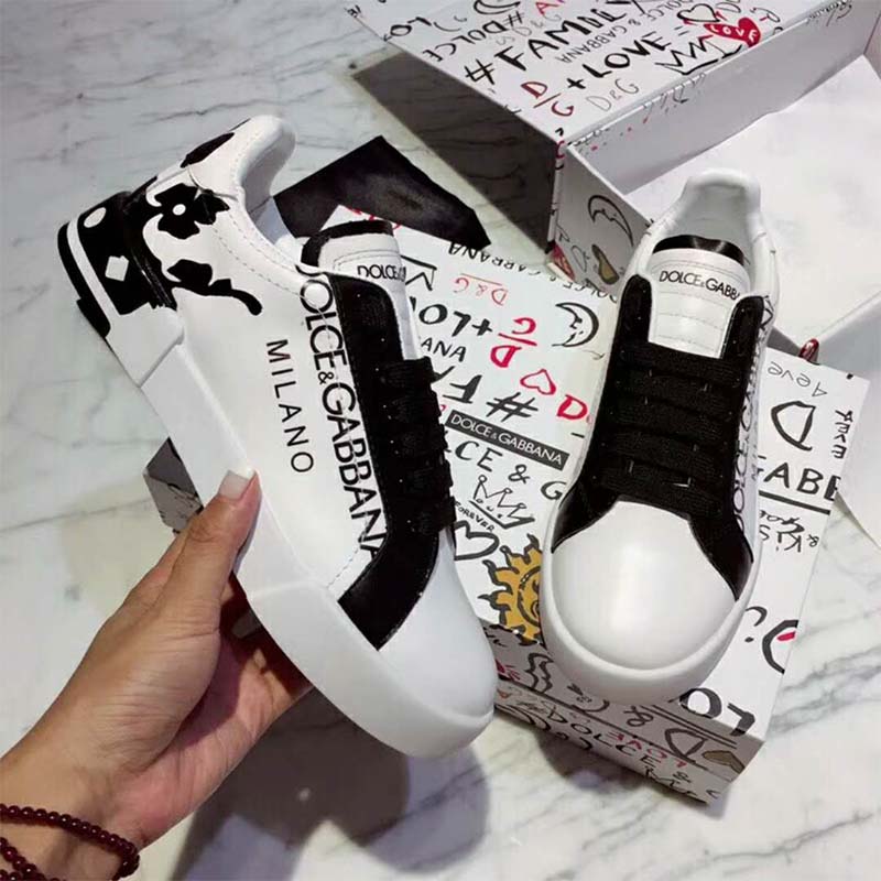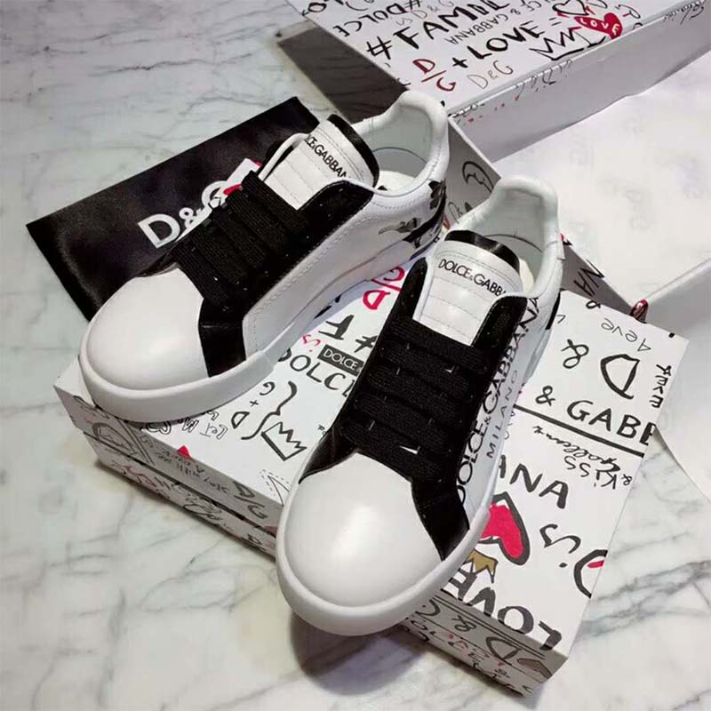 Dolce Gabbana D&G Men Shoes Portofino Sneakers Replica in Printed Nappa Calfskin-White $ 189