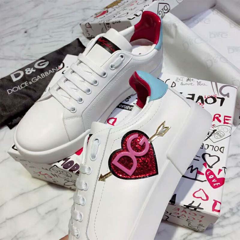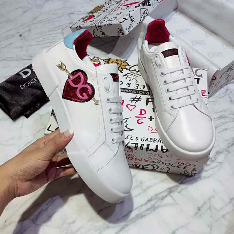 Home Shoes Sneakers Dolce Gabbana D&G Women Shoes Leather Portofino Sneakers Imitation with Patch