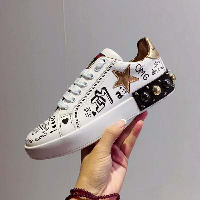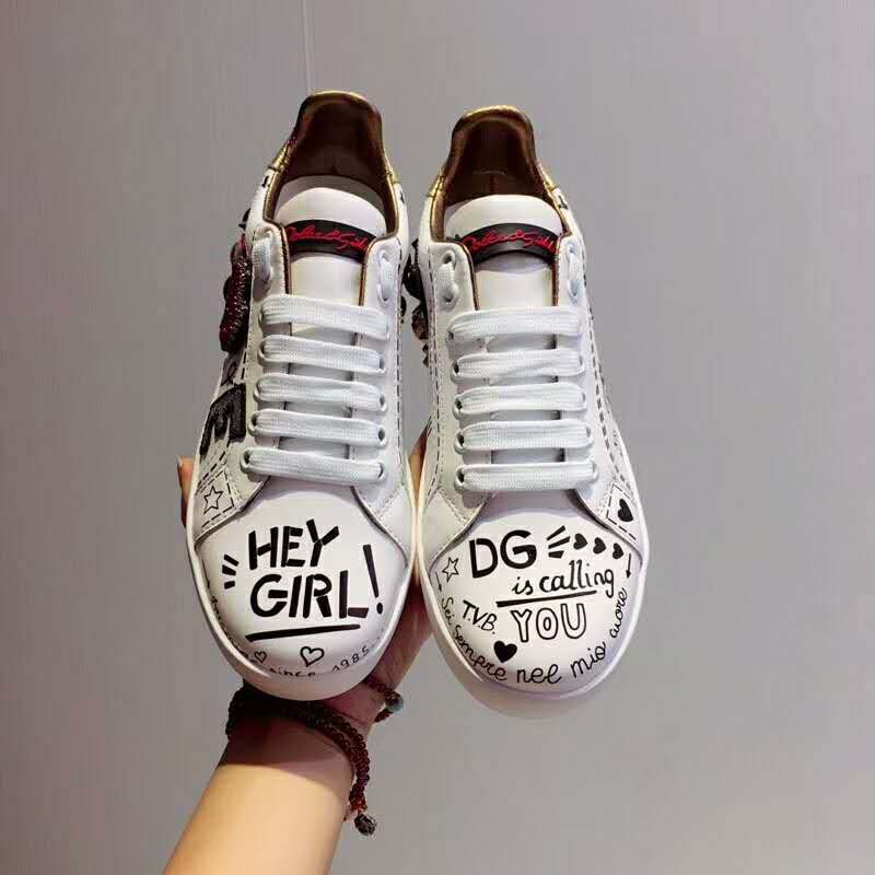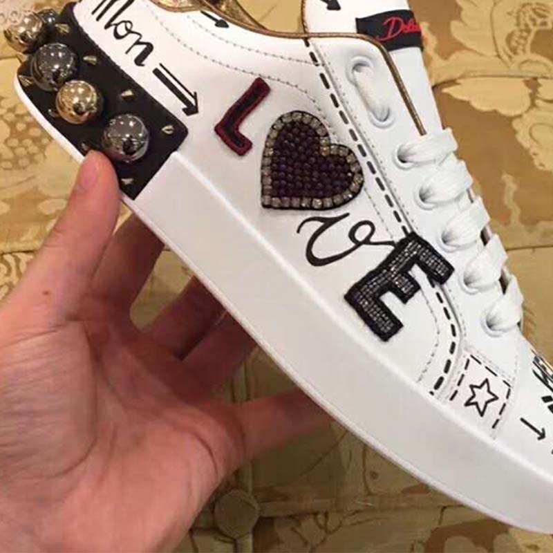 Home Shoes Sneakers Dolce Gabbana D&G Women Replica Shoes Zapatillas Portofino De becerro Estampado Con Parche Y Bordados