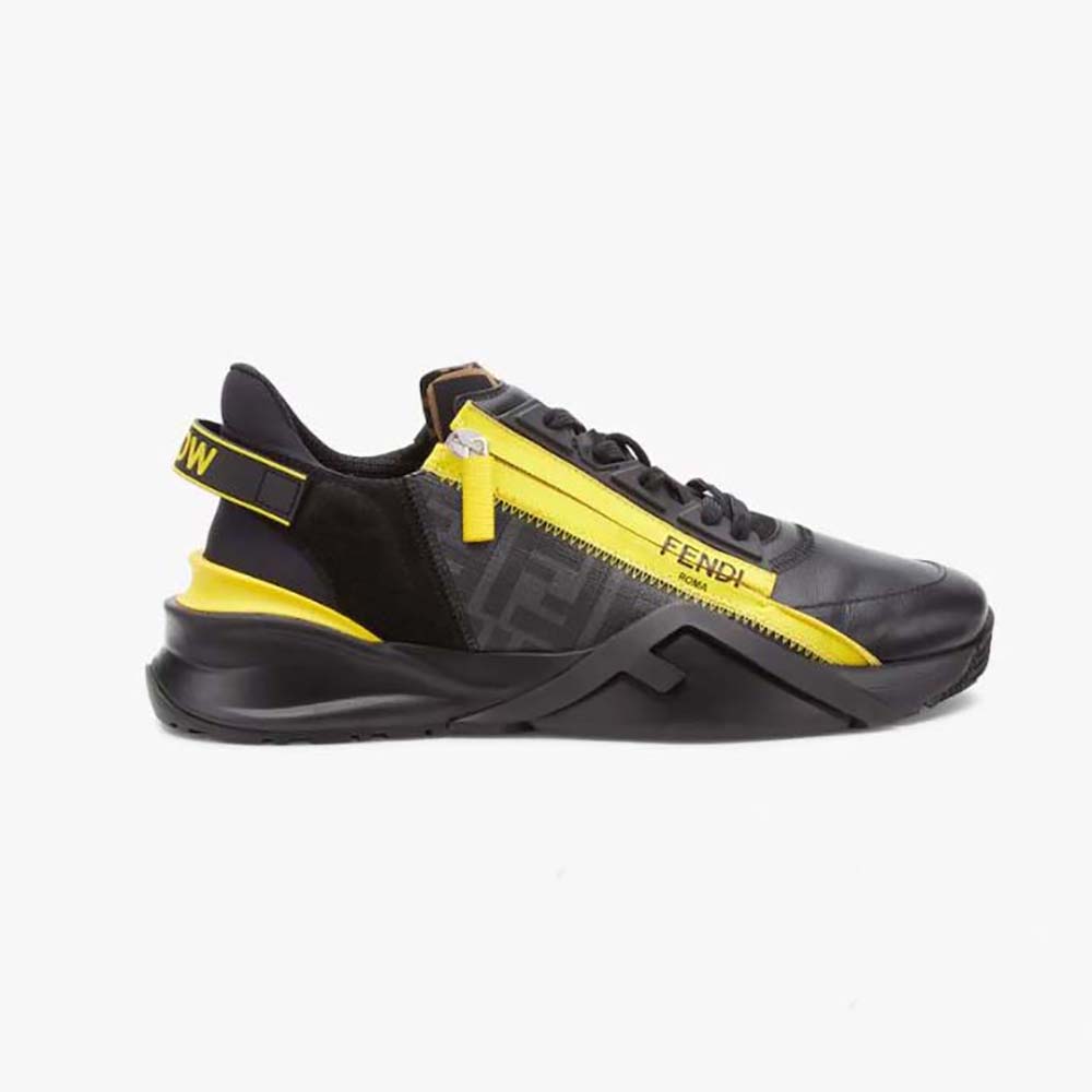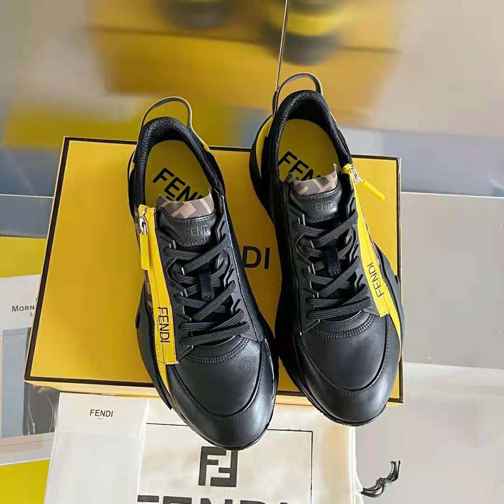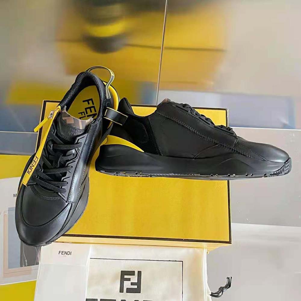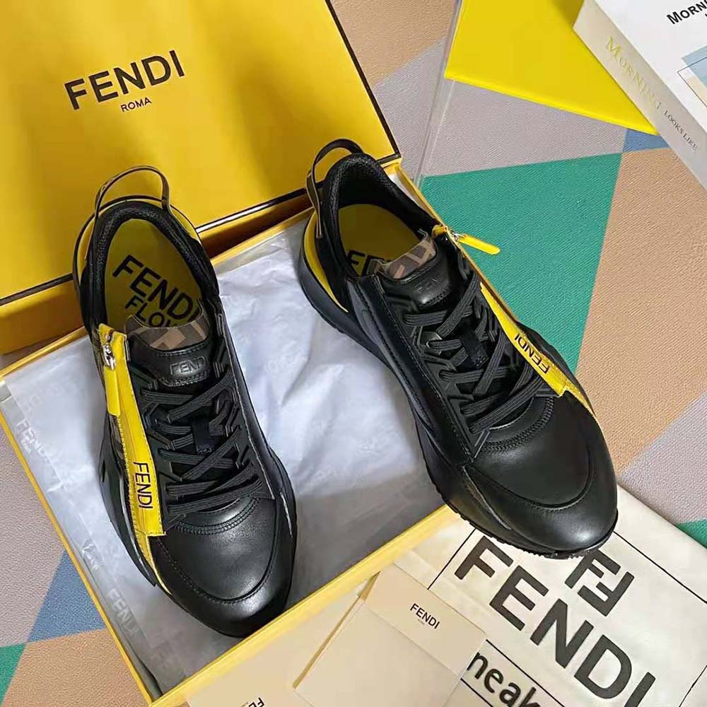 - Fendi Flow lettering embossed on the heels. Made of black leather and suede.