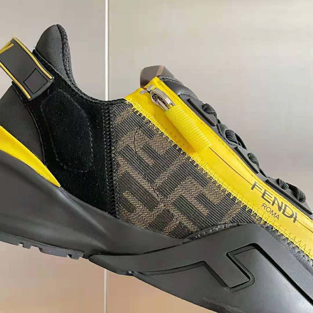 - Slip-on sneakers with adjustable elastic laces, side zipper and corrugated sole with engraved F.