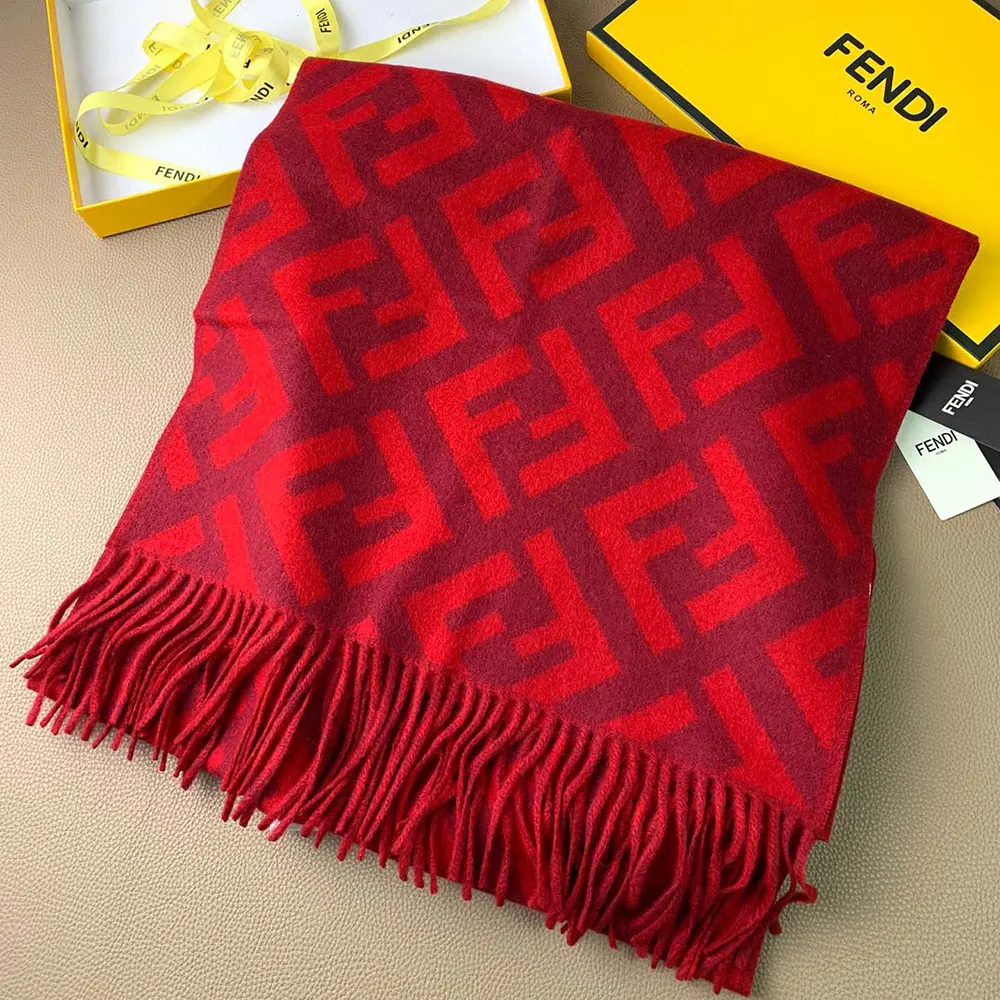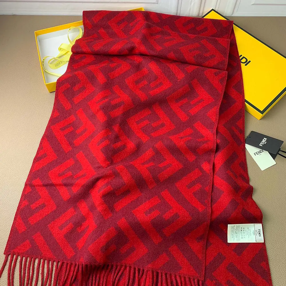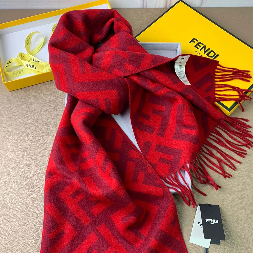 Fendi Unisex FF Scarf Red Cashmere Scarf FXT260A8RSF0QC9