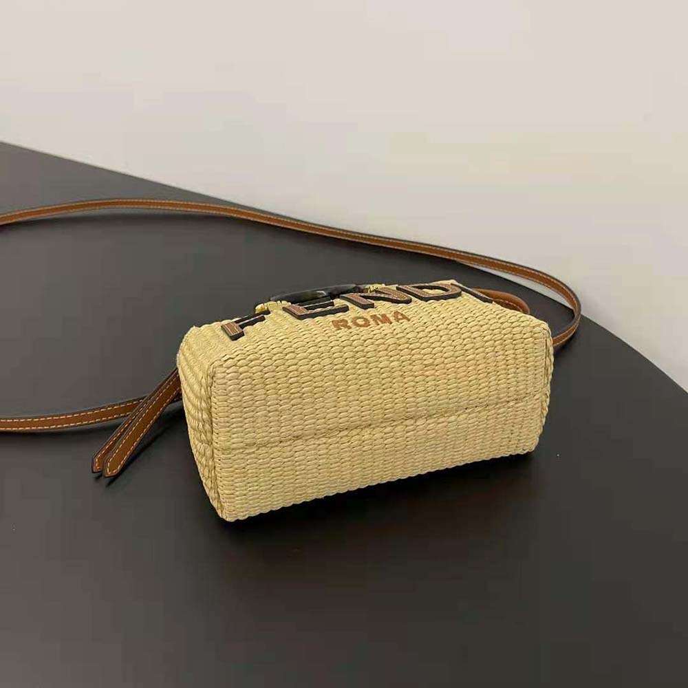 Affordable Replica Fendi Women By The Way Mini Natural Straw Small Boston Bag