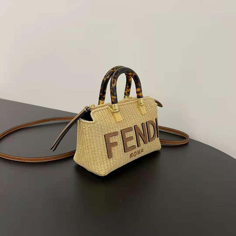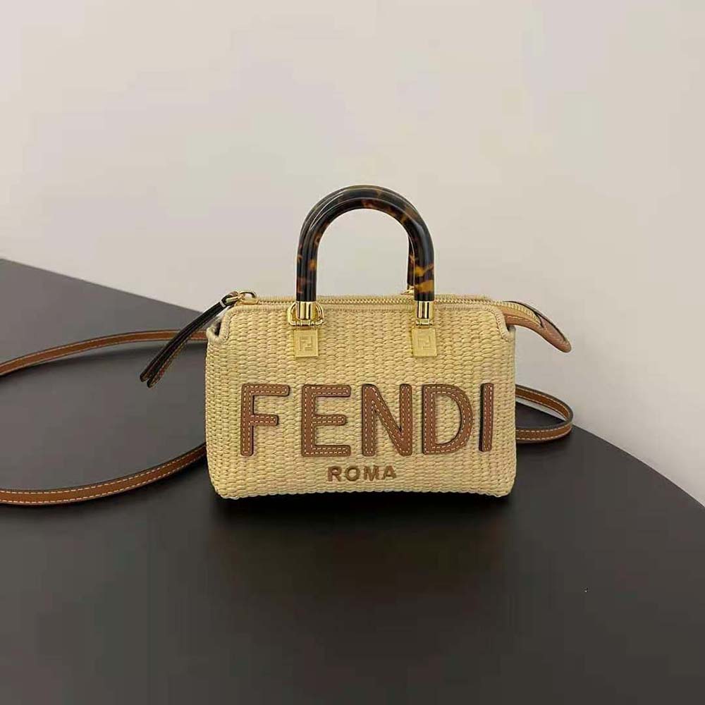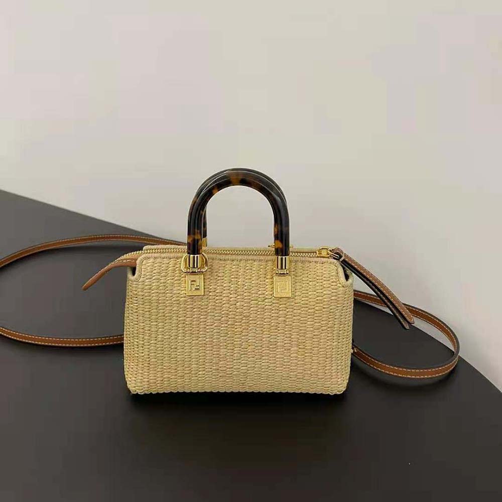 Home Bags & Luggage Handbags Affordable Replica Fendi Women By The Way Mini Natural Straw Small Boston Bag