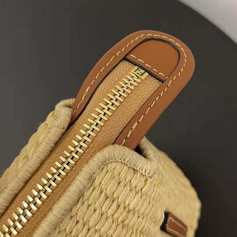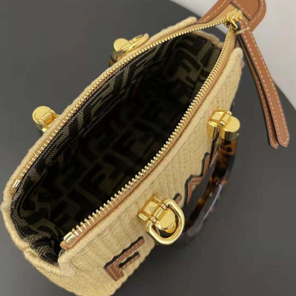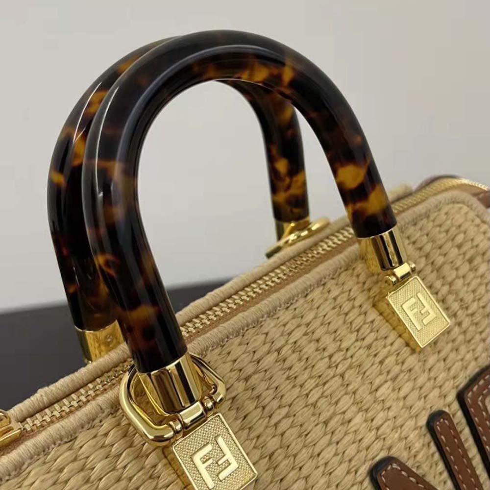 Fendi Women By The Way Mini Natural Straw Small Boston Bag