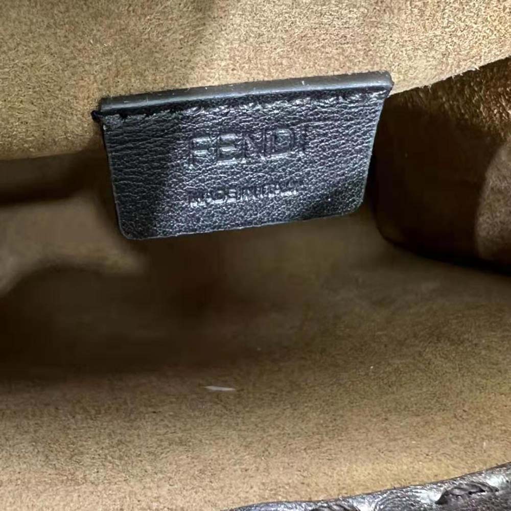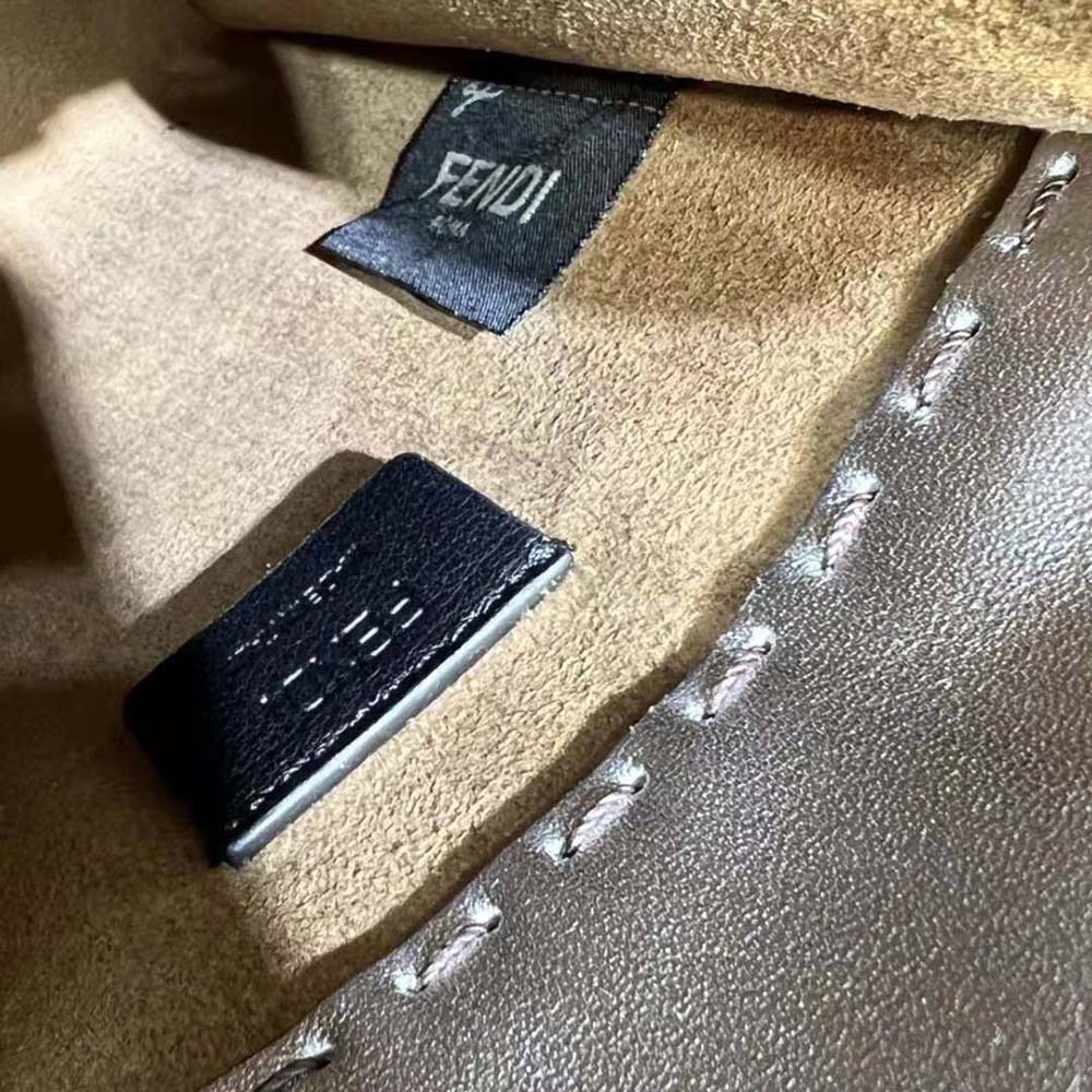 Fendi Women Mini Luxury Replica Sunshine Shopper Brown Patent Leather and Canvas Mini-Bag