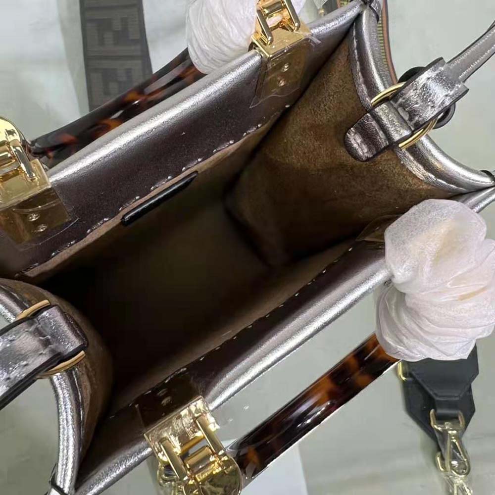 Fendi Women Mini Sunshine Shopper Silver Laminated Leather Shopper