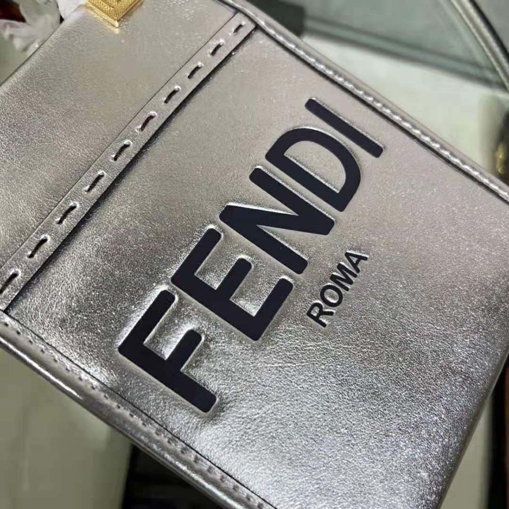 Fendi Women Mini AAA-grade Replica Sunshine Shopper Silver Laminated Leather Shopper
