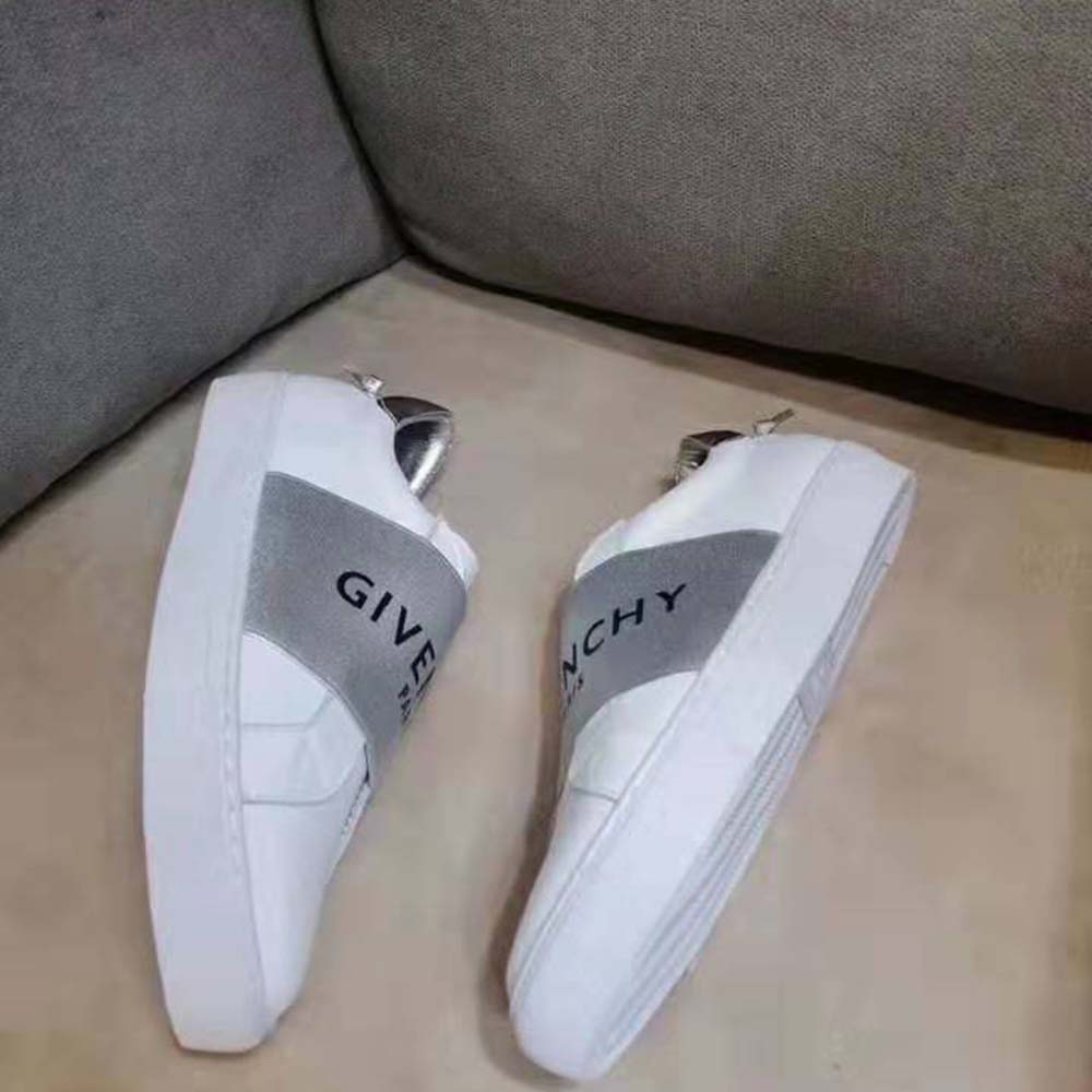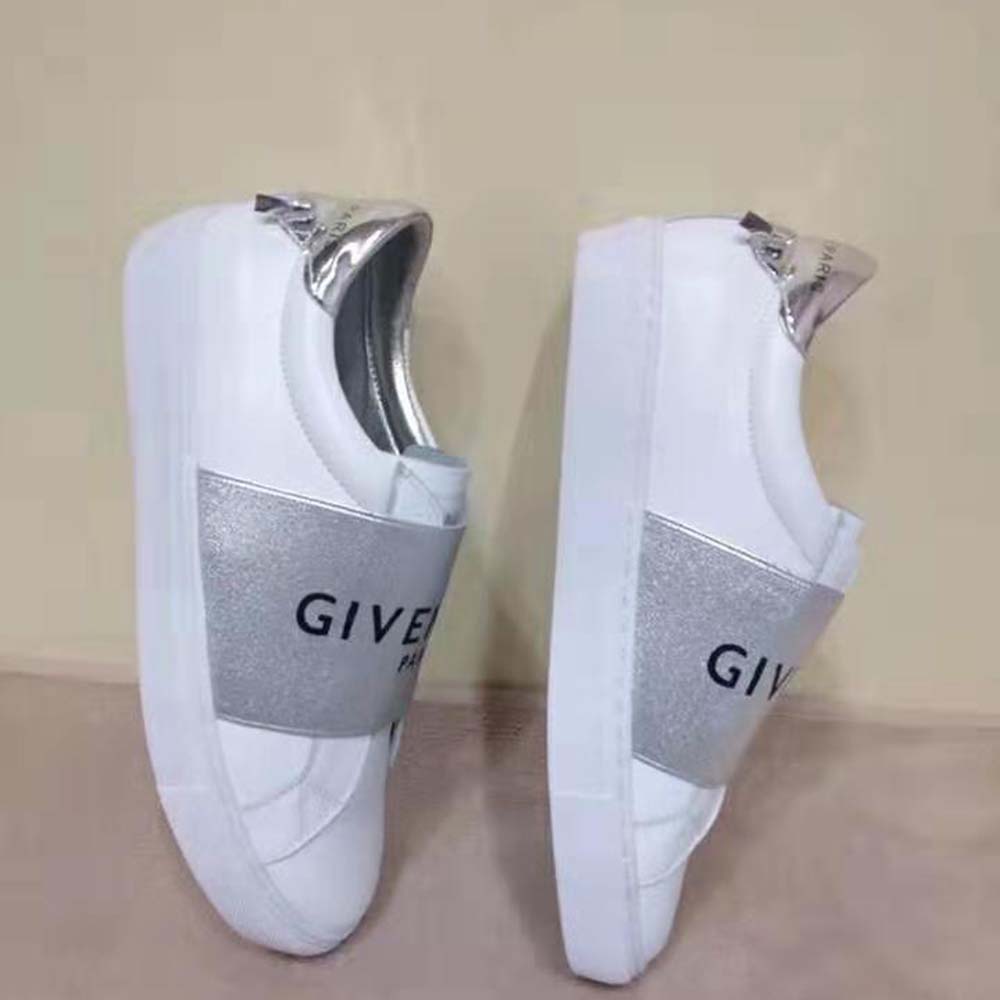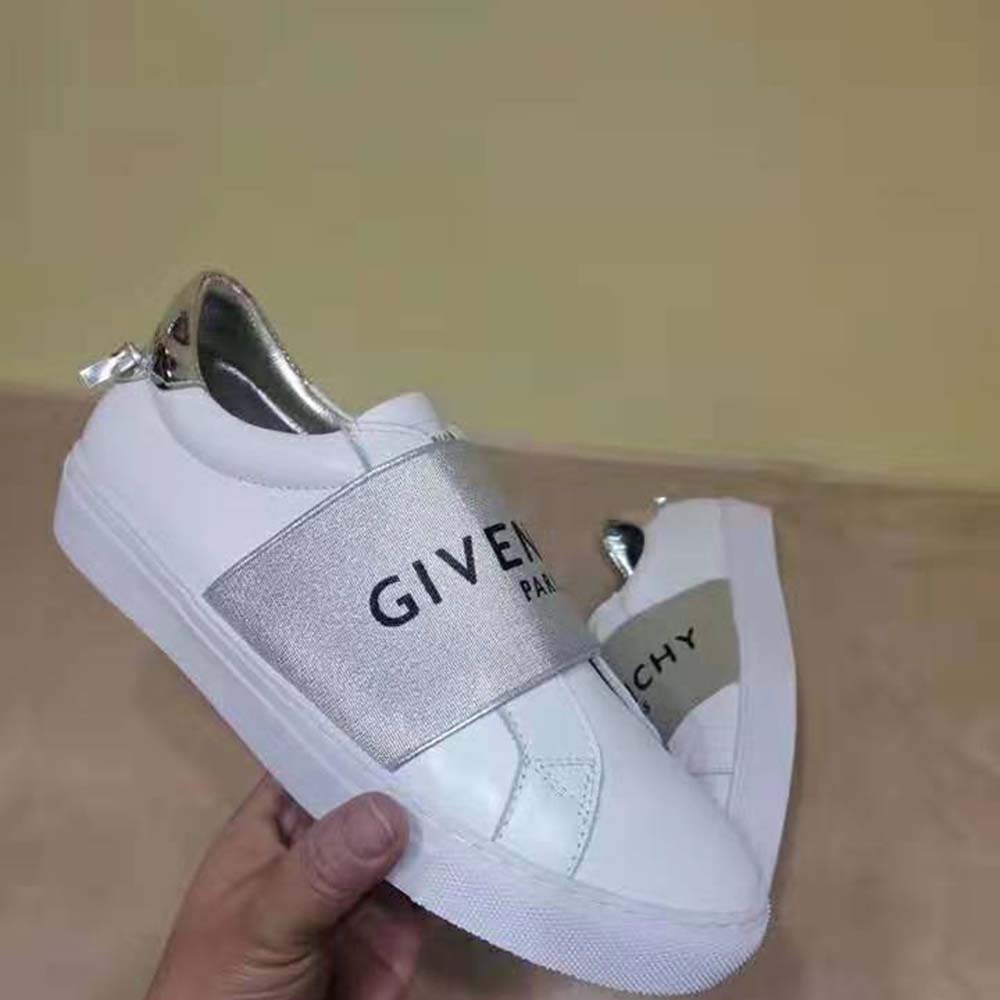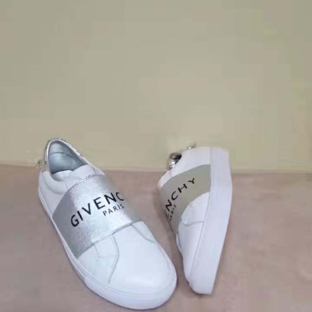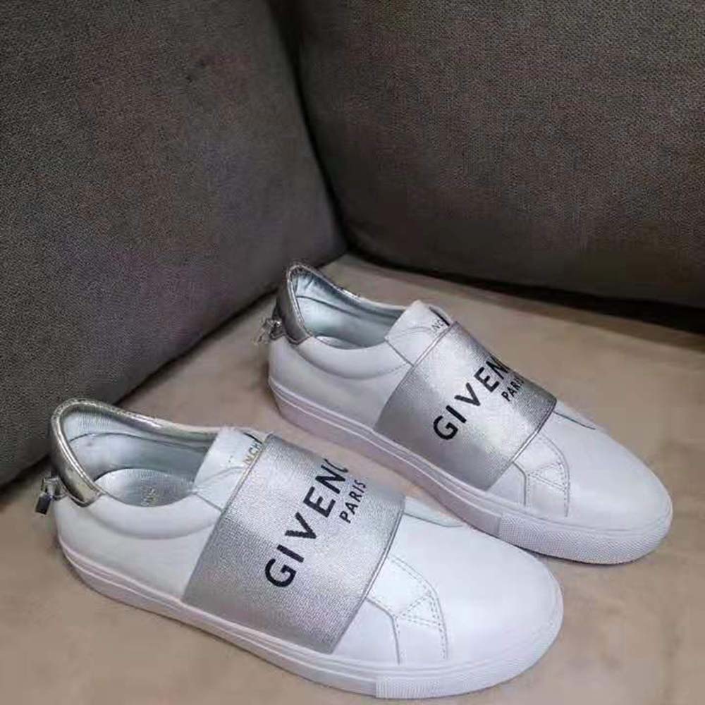 - Urban Street sneakers in white leather, wide metallic silver elastic band
