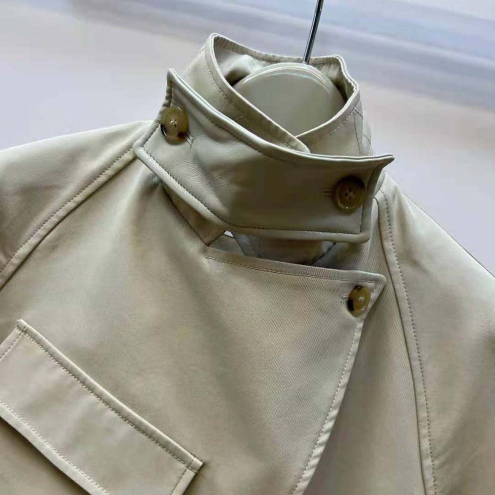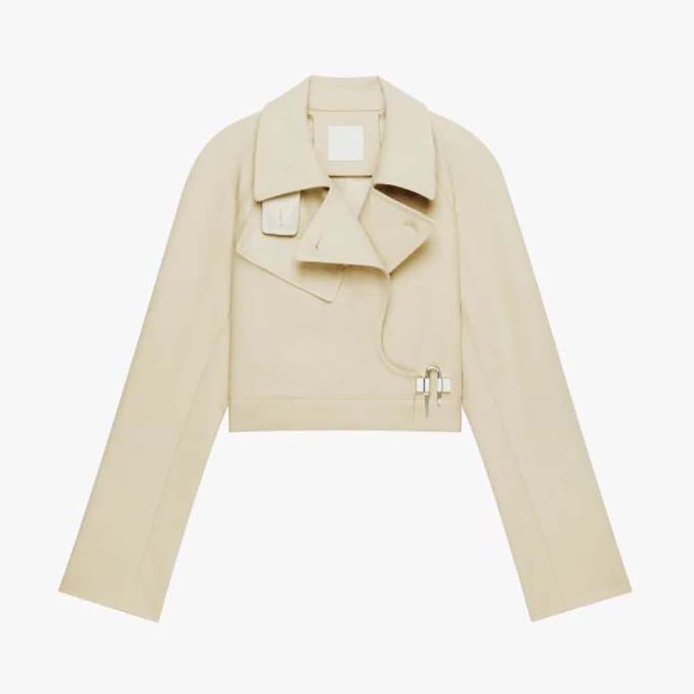 - Short trench coat in cotton twill, with metal U-Lock buckle closure on the side.