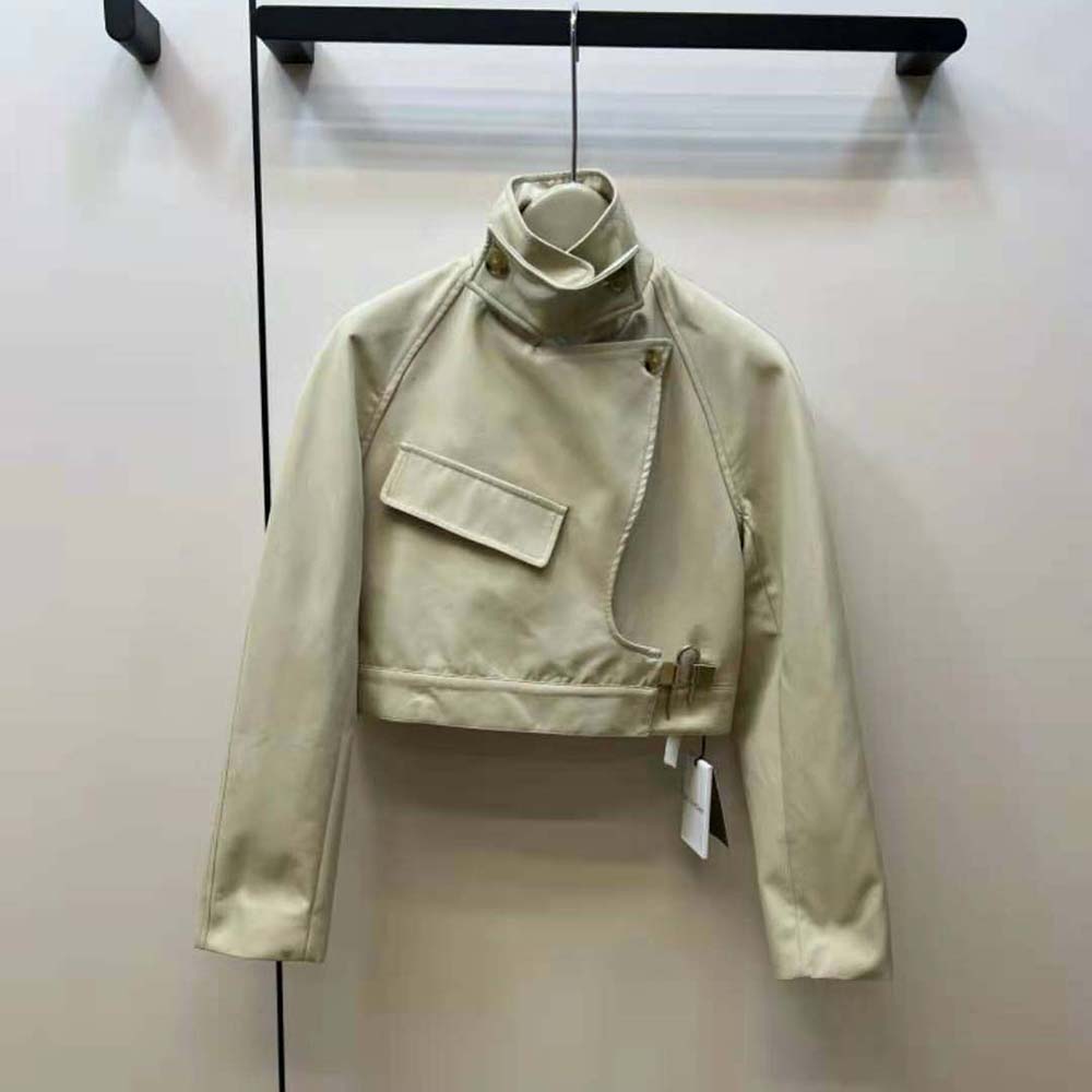 - Tone-on-tone leather tab under the collar which allows you to wear it raised.