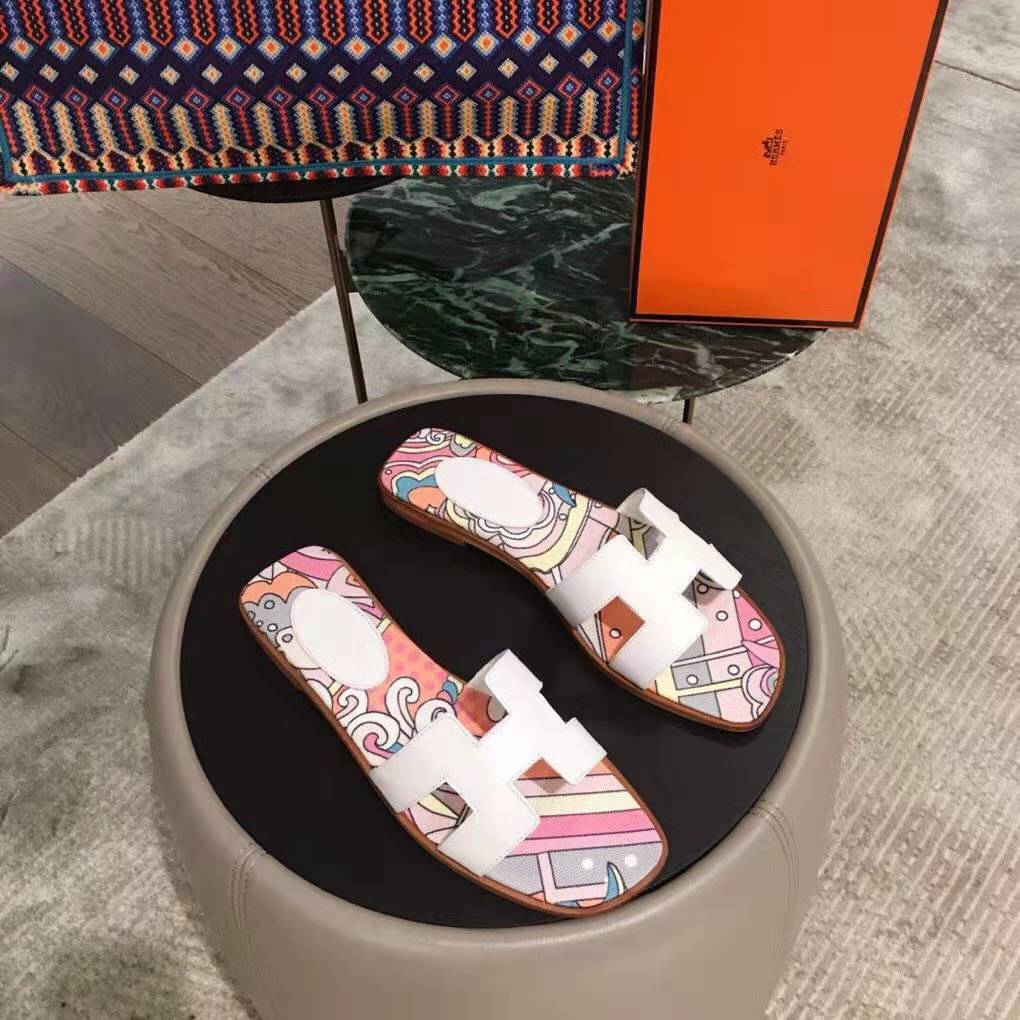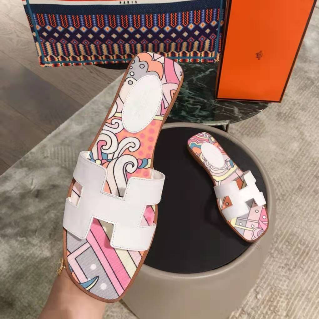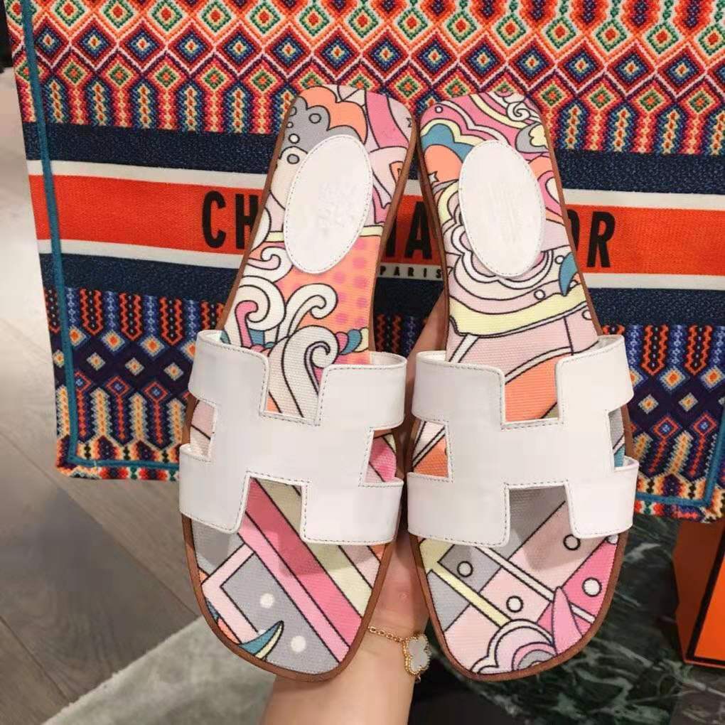 - Sandal in cotton canvas with “Faubourg rainbow” print and iconic “H” cut-out