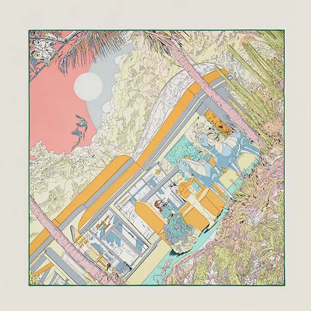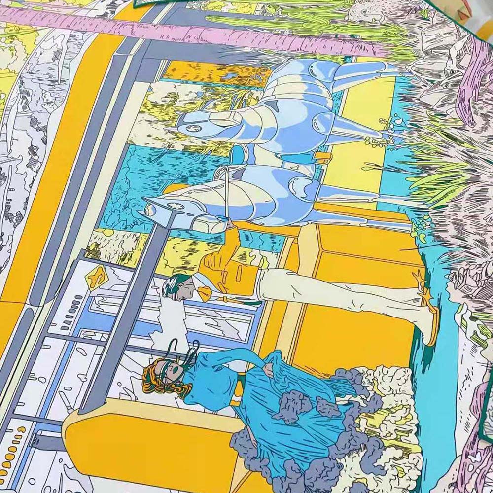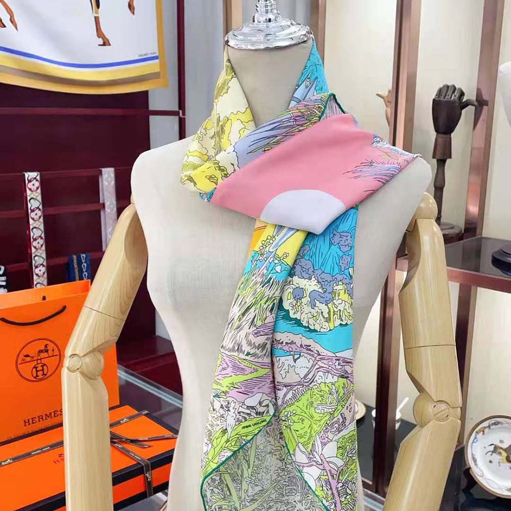 Hermes Women Jungle Love Stamped Scarf 70 in Silk Twill with Hand-Rolled Edges-Blue $ 149