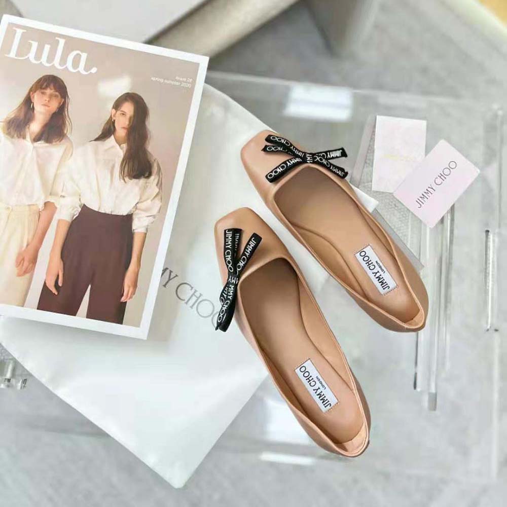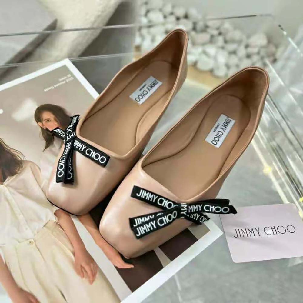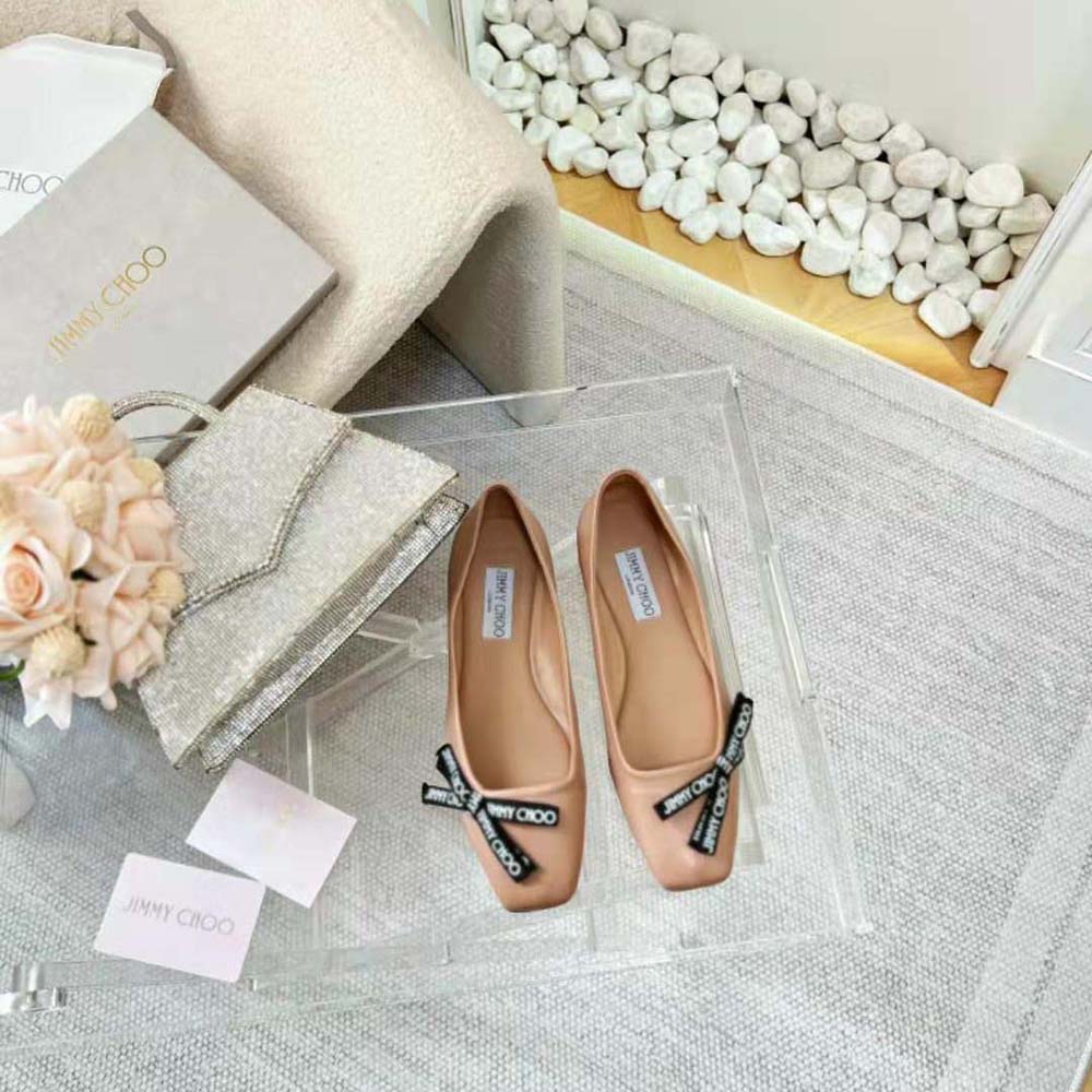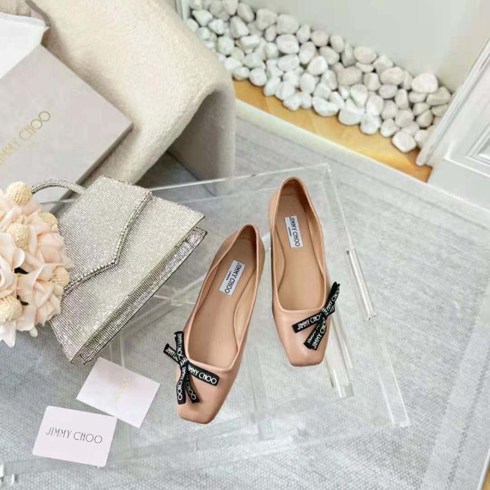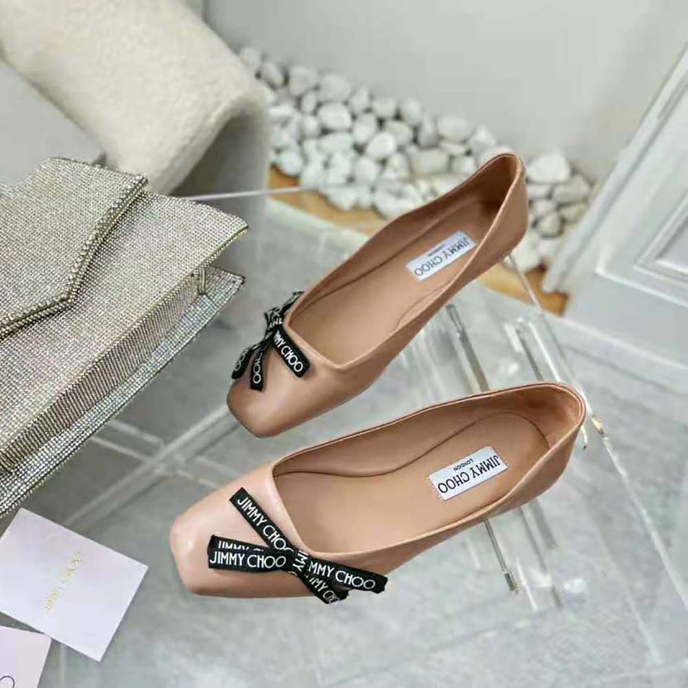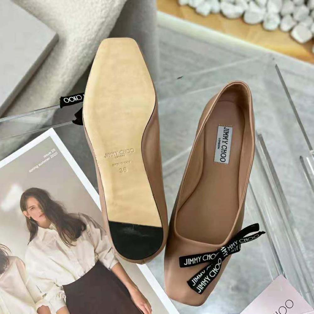 Jimmy Choo Women Veda Ballerina Ballet Pink Nappa Leather Flat Ballerina Pumps 1:1 Replica with Jimmy Choo Bow