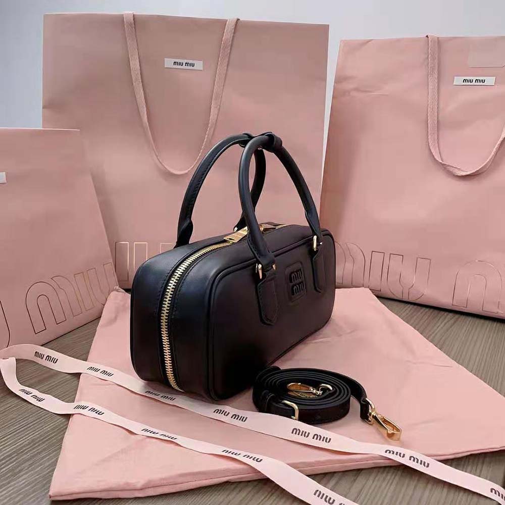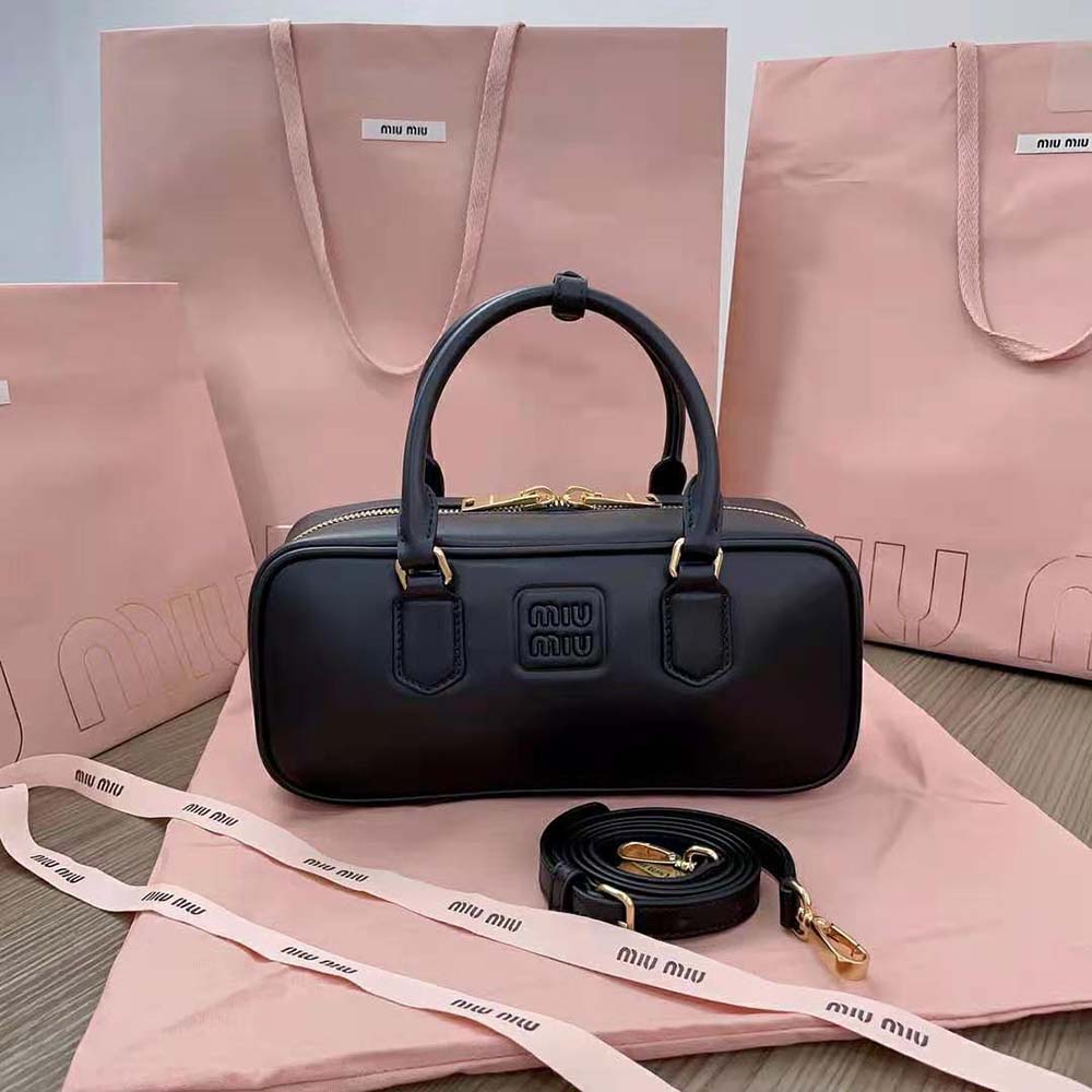 Home Bags & Luggage Handbags 1:1 Replica Miu Miu Women Arcadie Leather Bag-Black