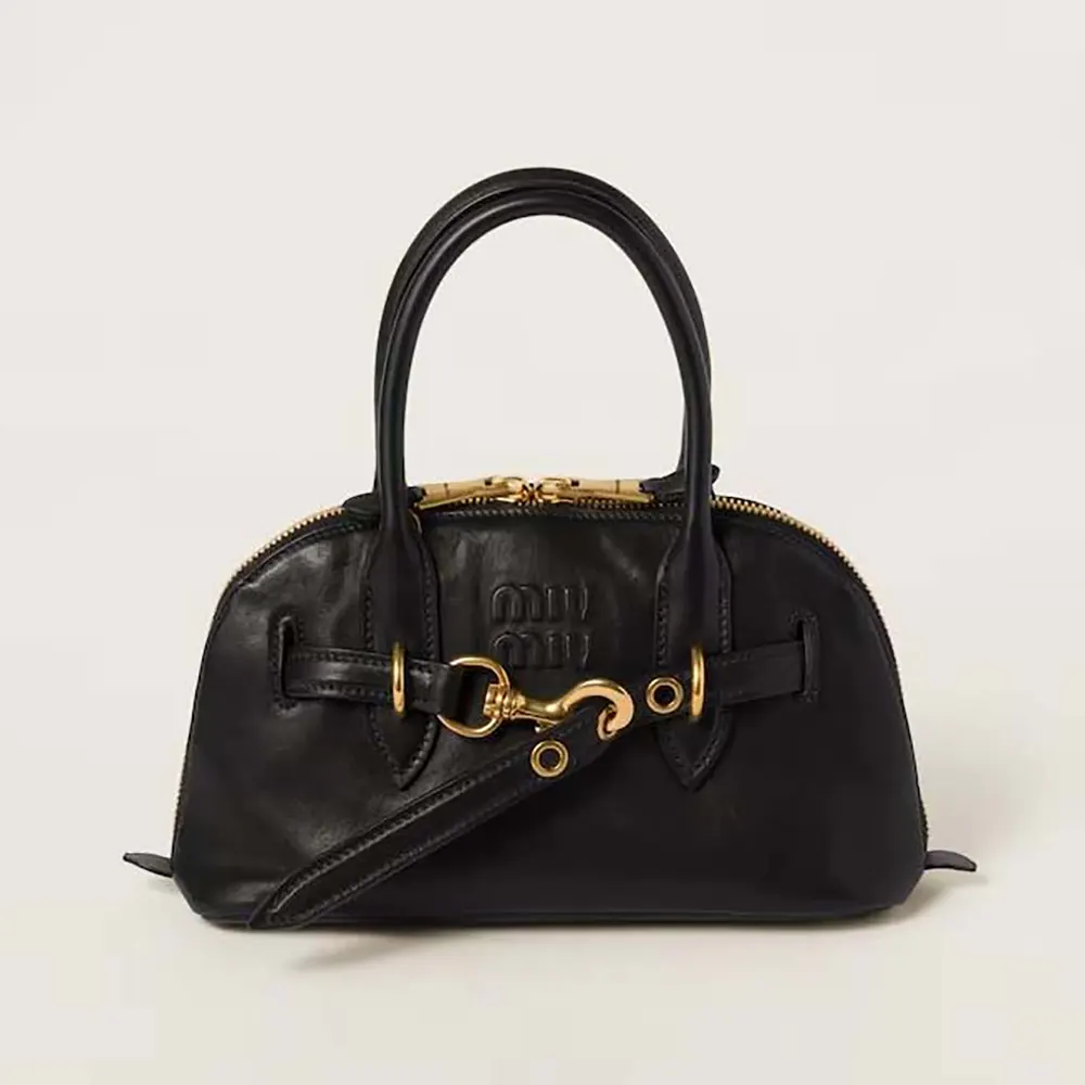 - The Aventure top-handle bag, recovered from the Miu Miu archives, has been reinterpreted in terms of a lighter structure and attitude,