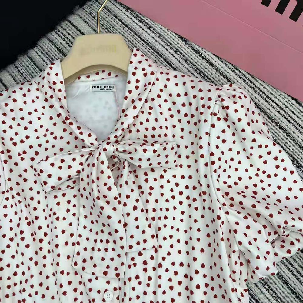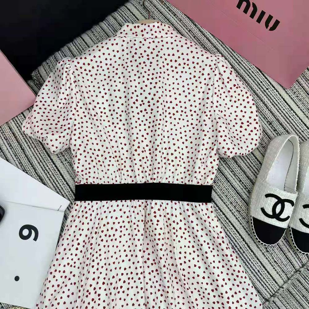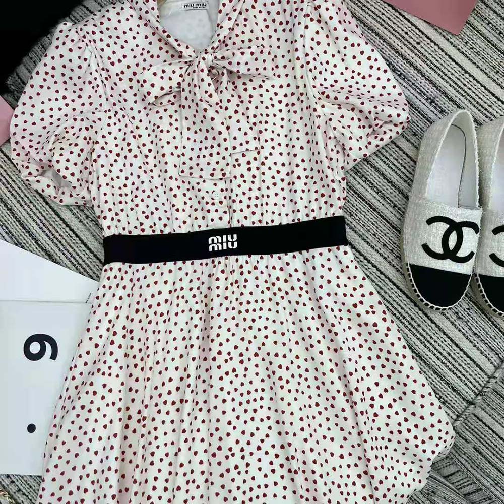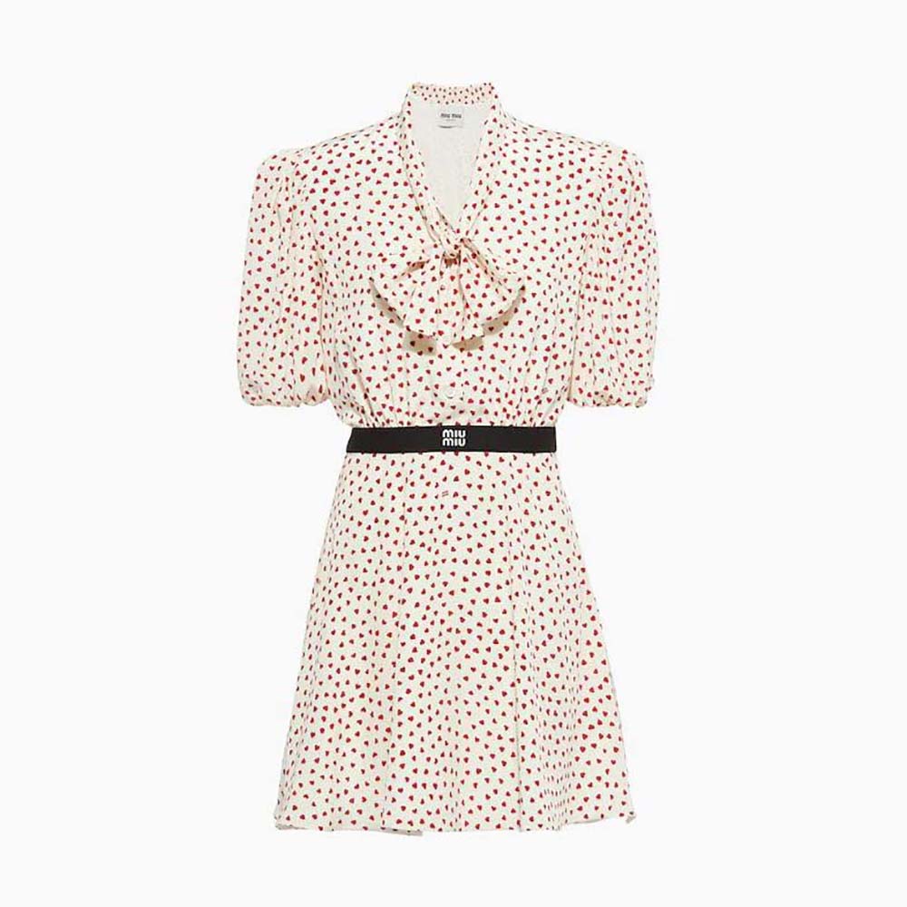 - Romantic, playful allure characterizes this new crepe de chine mini-dress with a heart print.