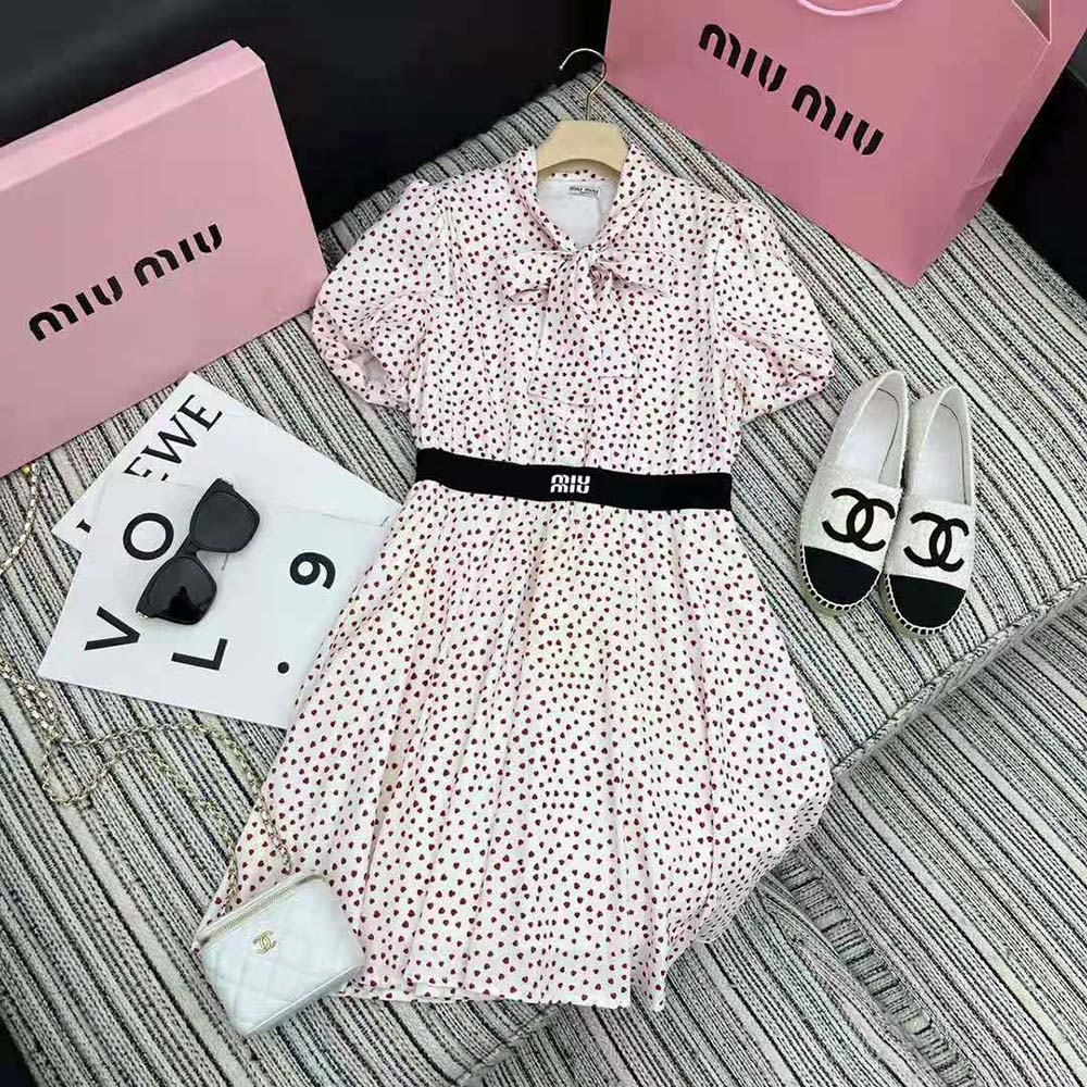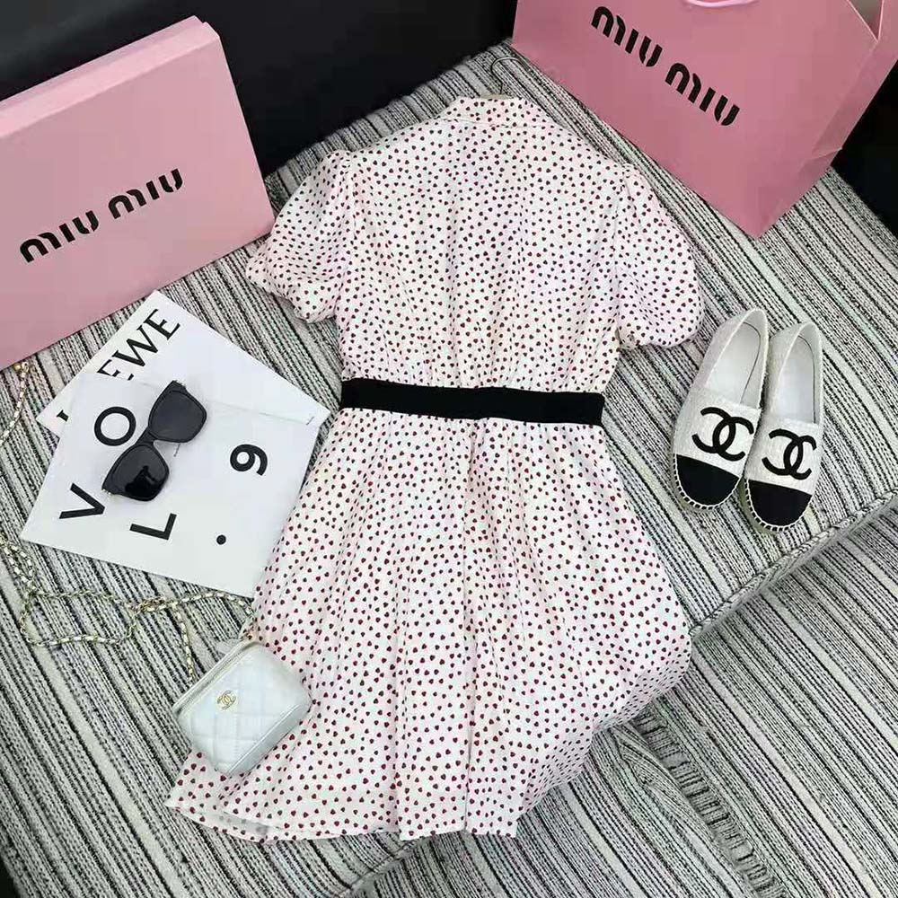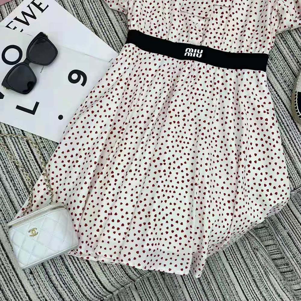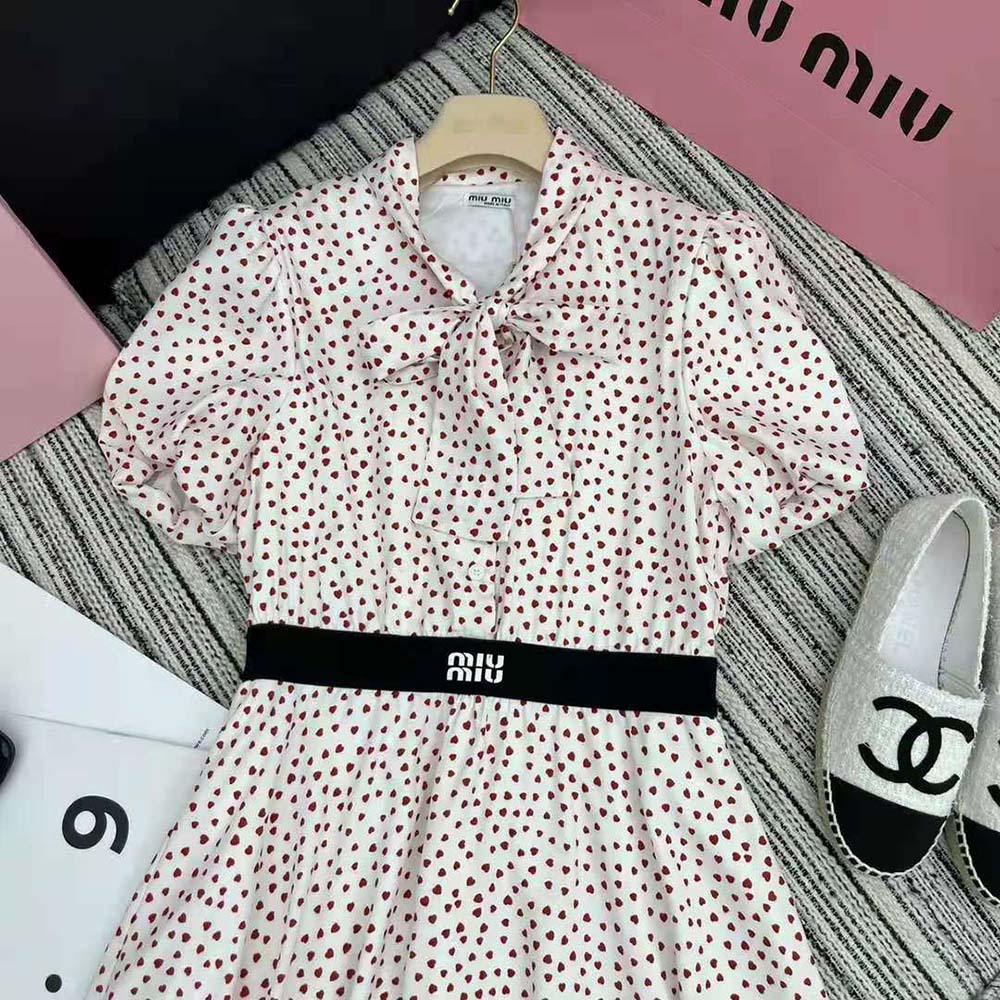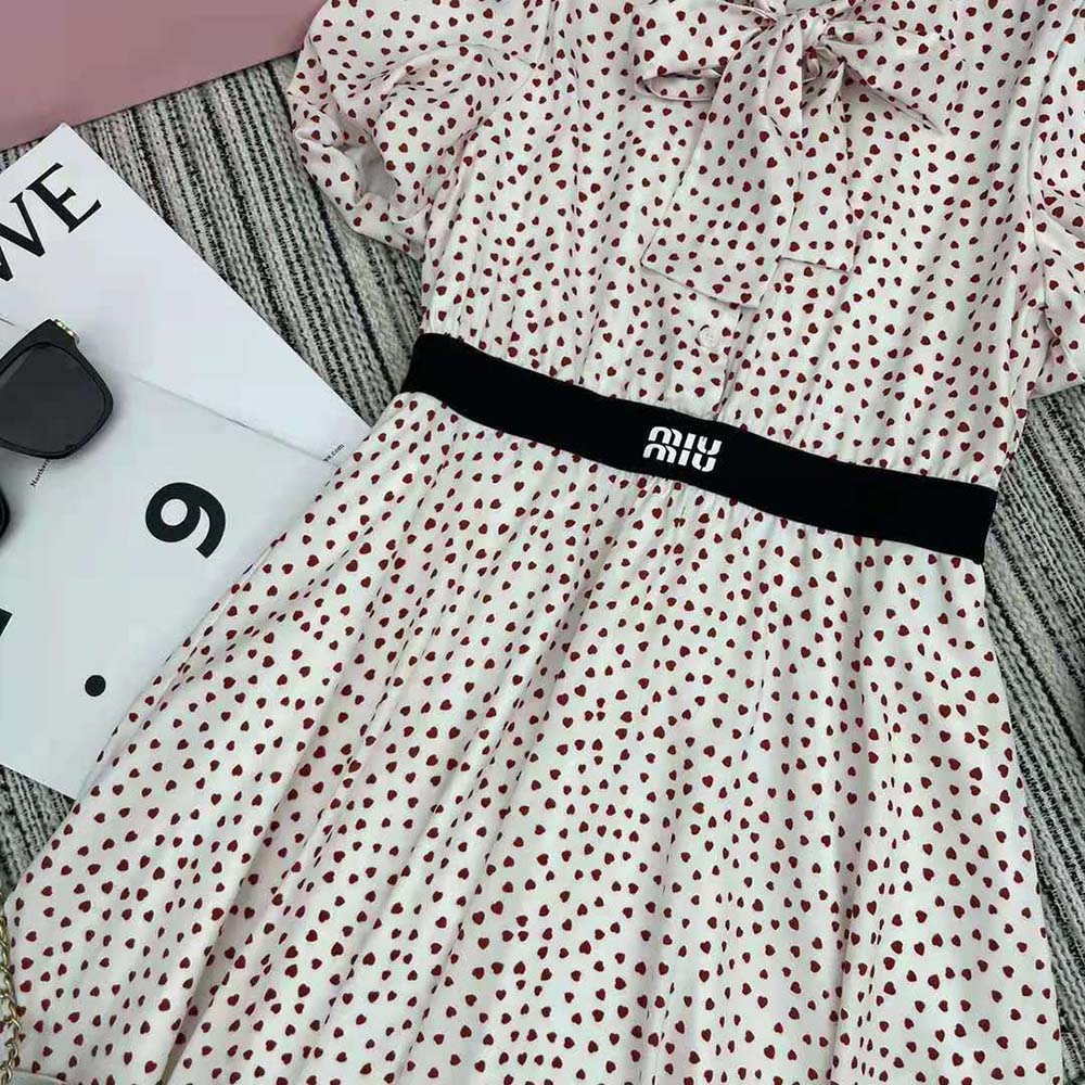 - Romantic, playful allure characterizes this new crepe de chine mini-dress with a heart print.