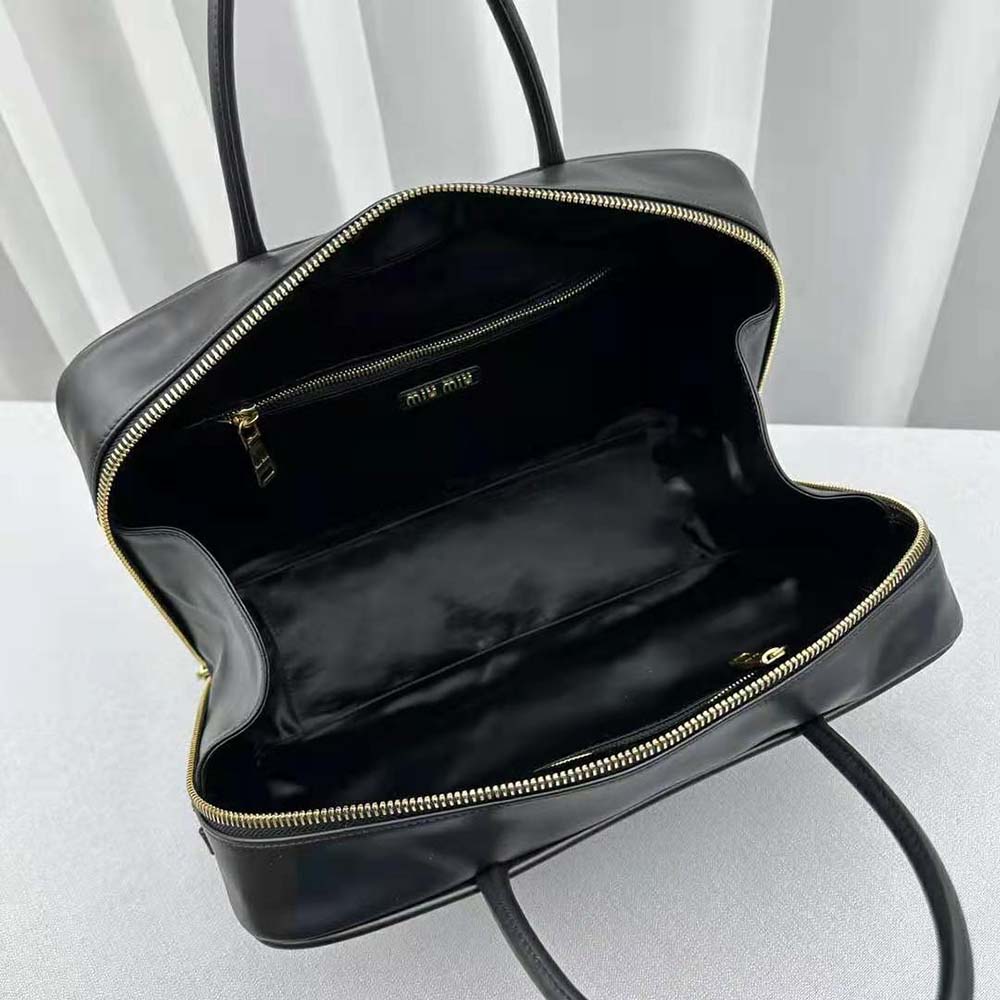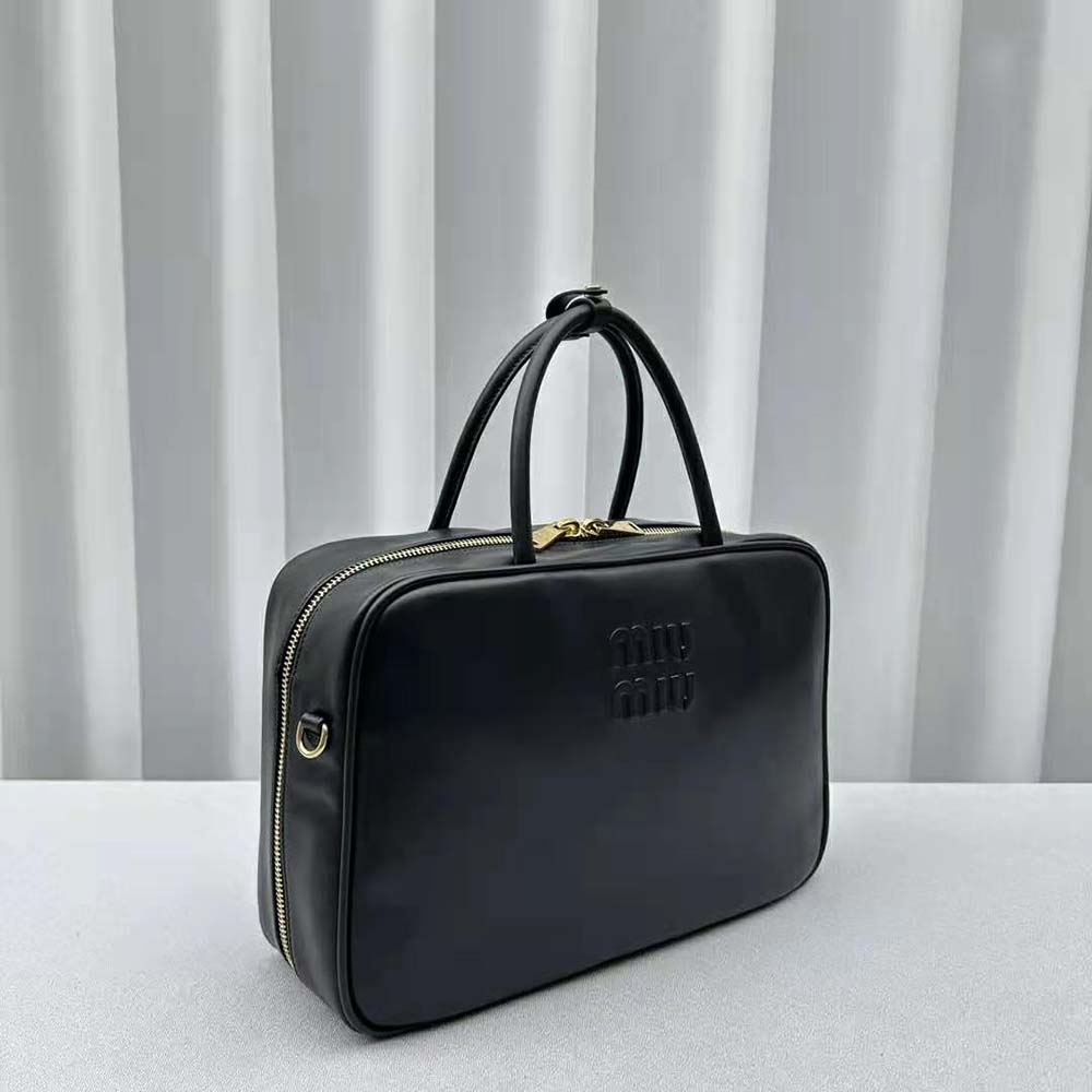 - Miu Miu reimagines the iconic top-handle bag in this sophisticated and versatile design.