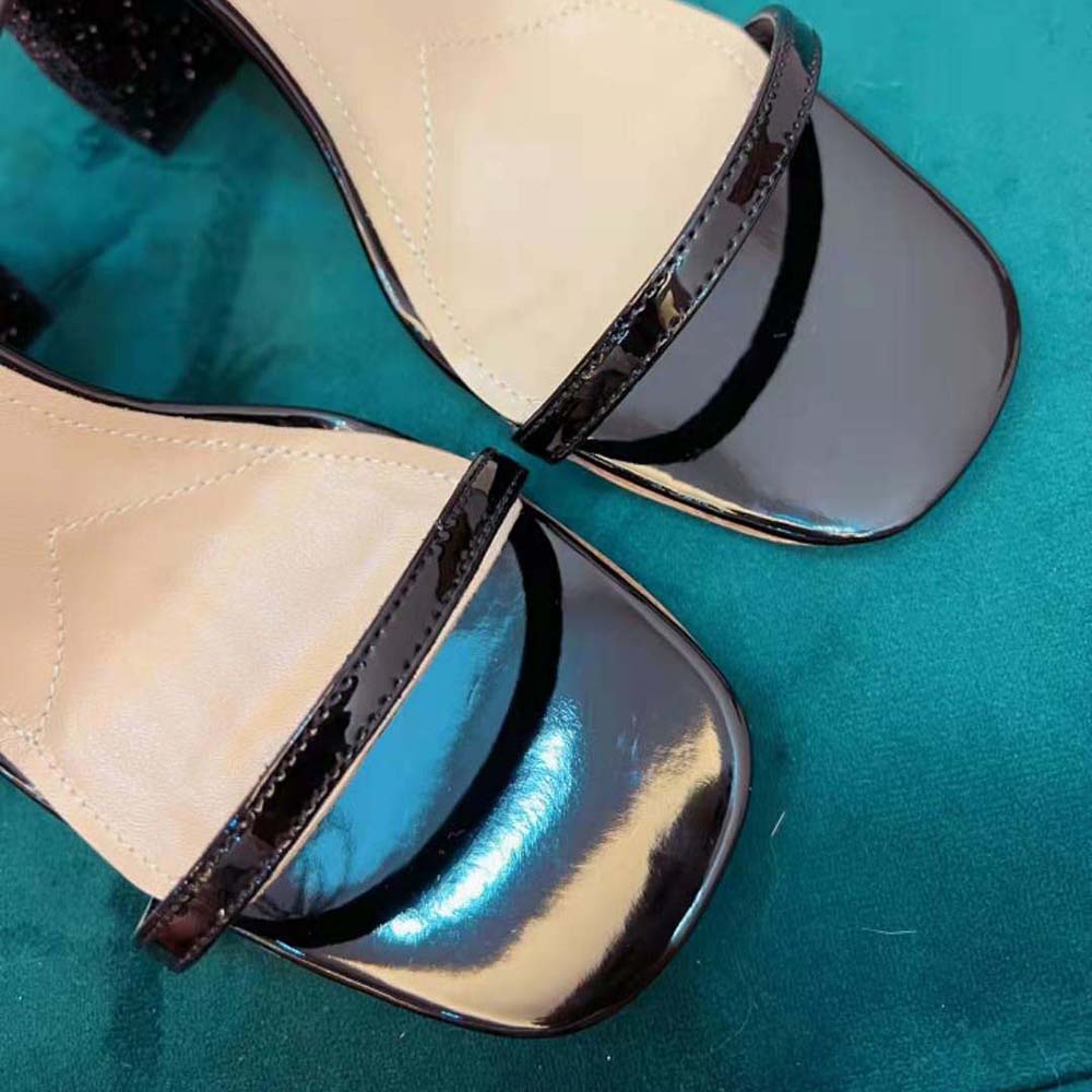 Miu Miu AAA-grade Fake Women Patent Leather and Glitter Sandals in 100mm Heel Height-Black