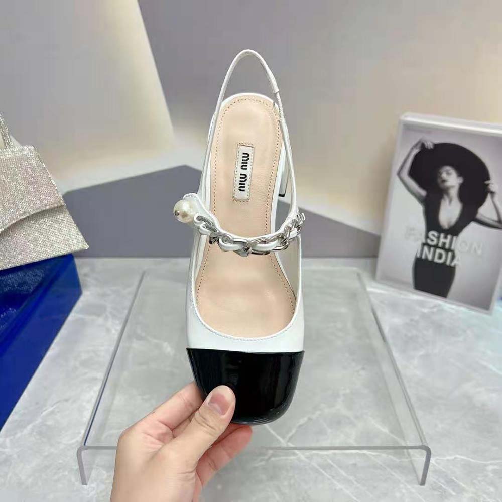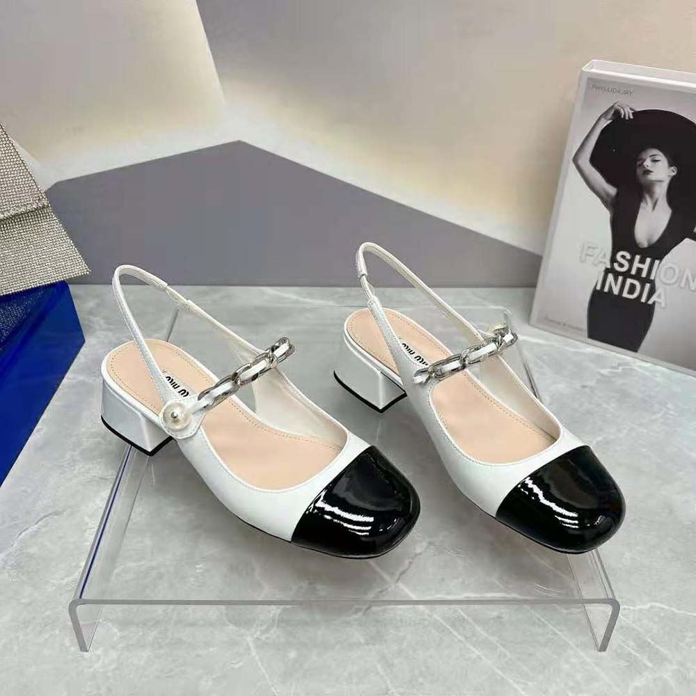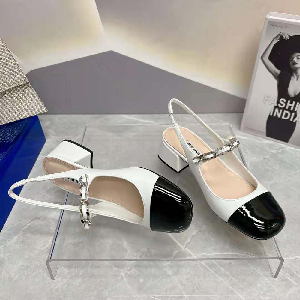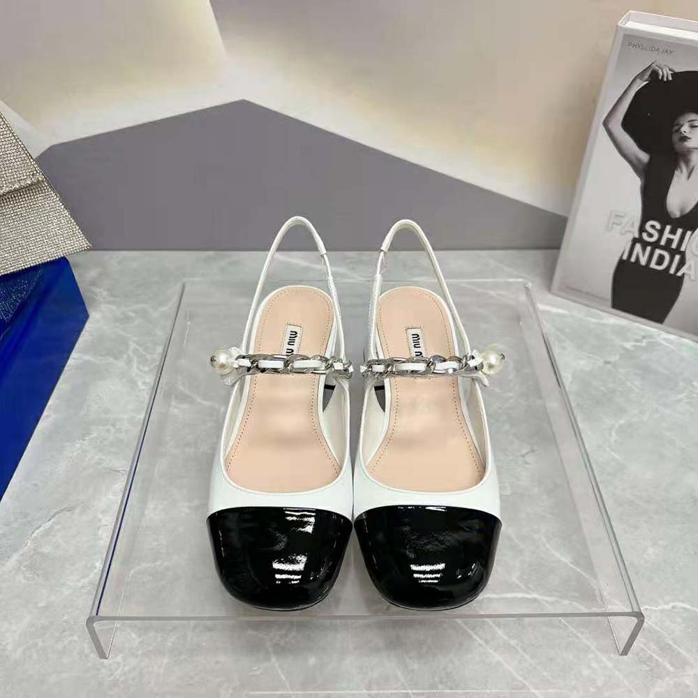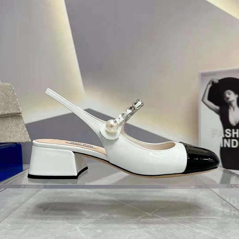 - On these patent leather pumps, the toe in a contrasting shade and instep strap add romantic charm.