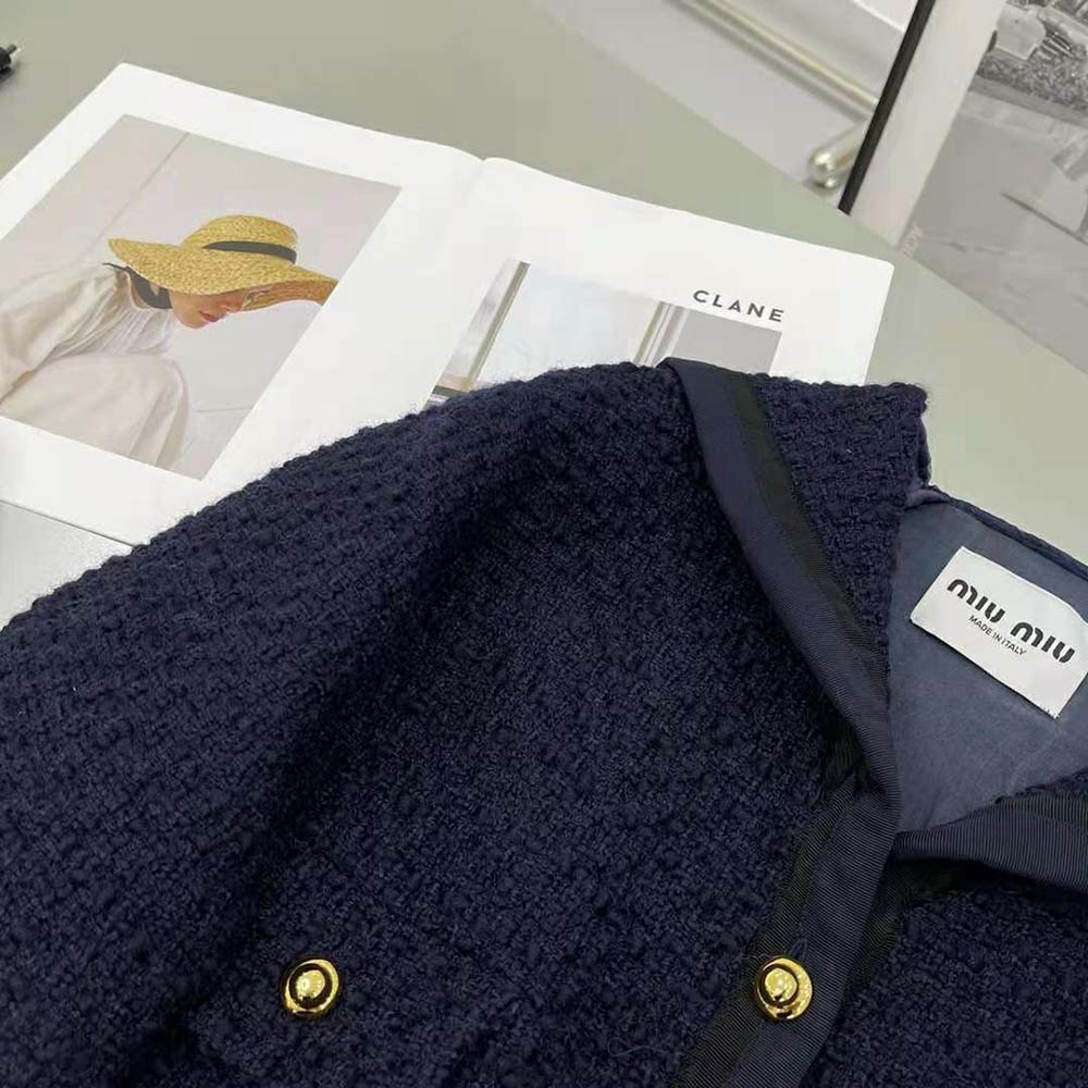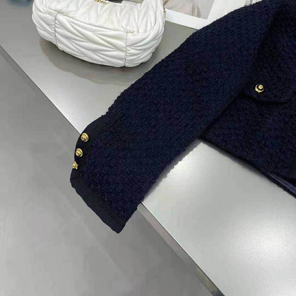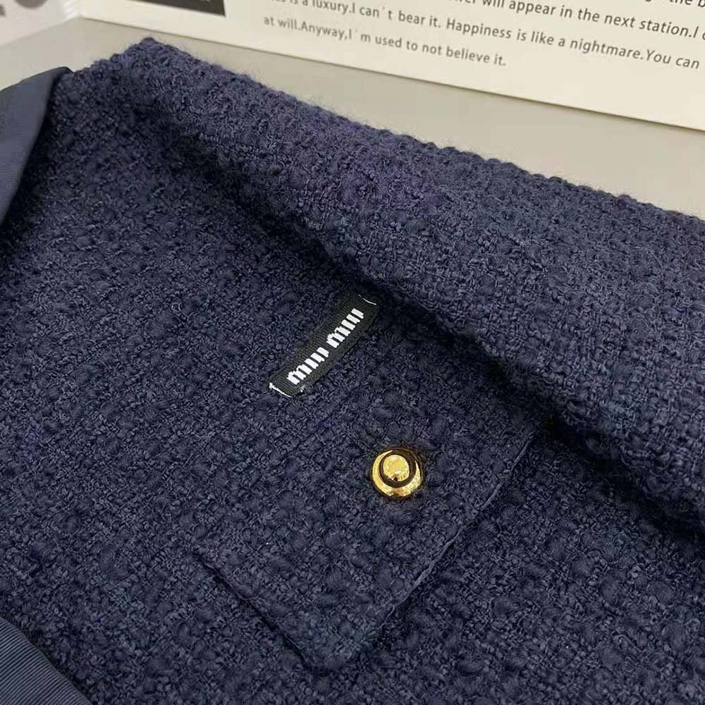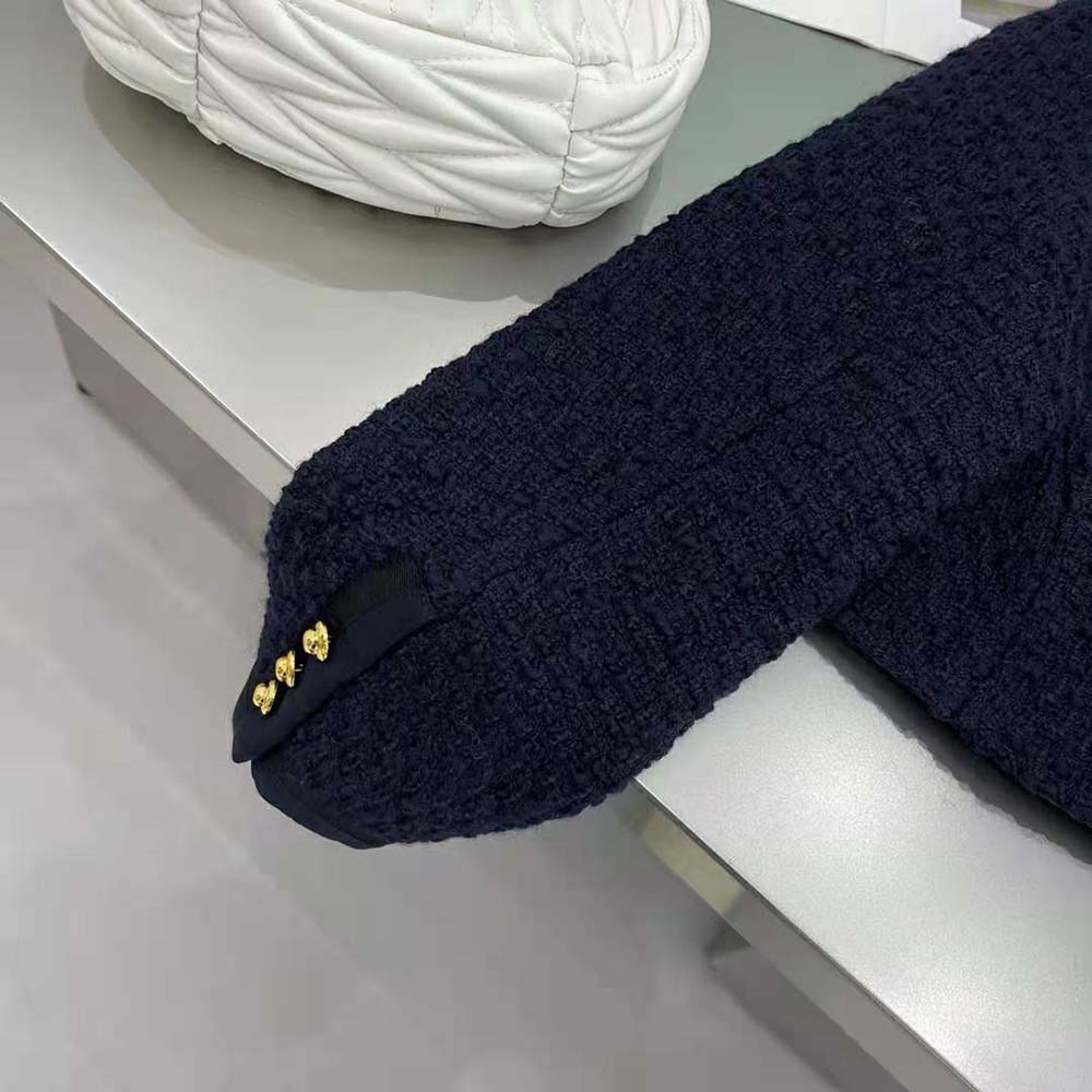 AAA-grade Replica Miu Miu Women Single-Breasted Tweed Jacket-Black
