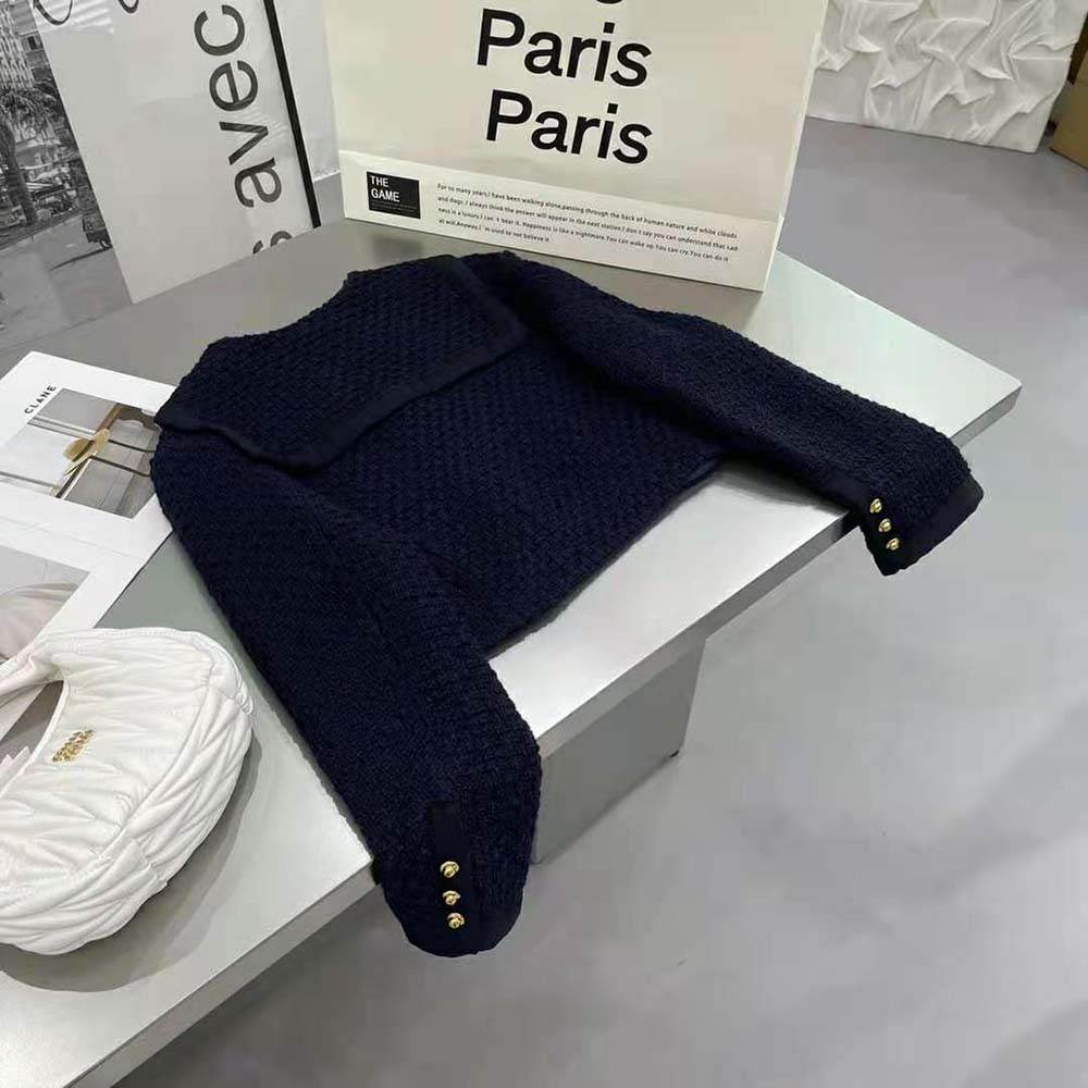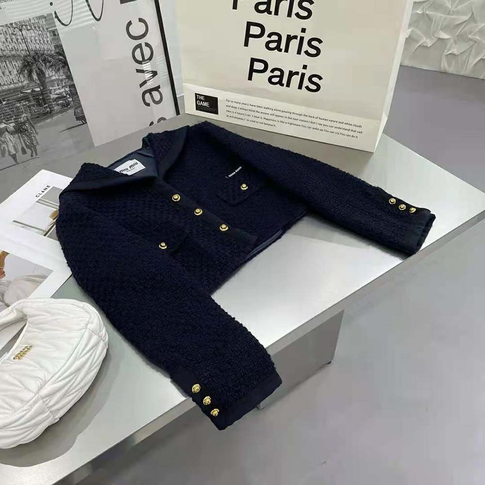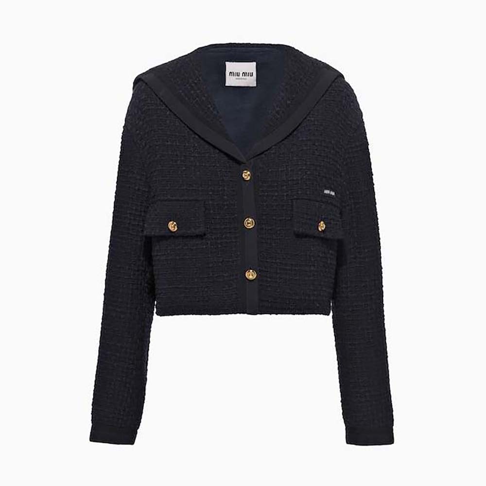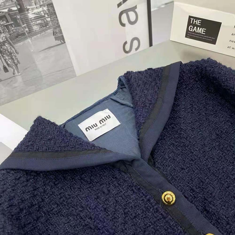 AAA-grade Replica Miu Miu Women Single-Breasted Tweed Jacket-Black