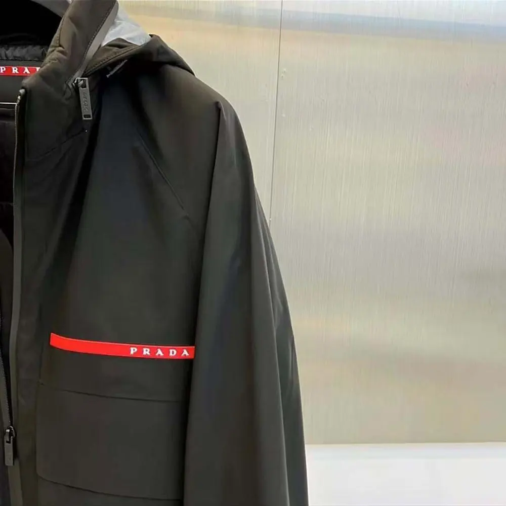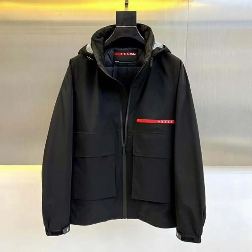 - The jacket with a sporty, modern design has a hood and heat-bonded seams.