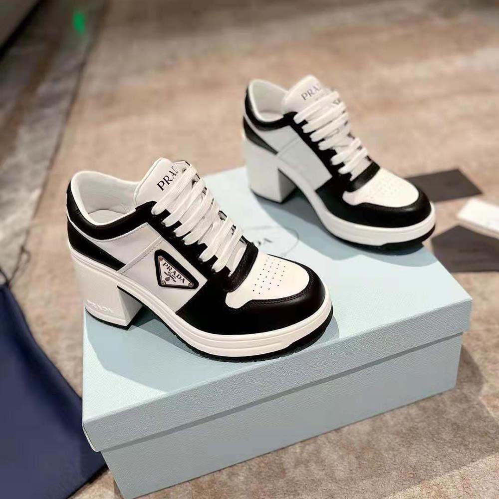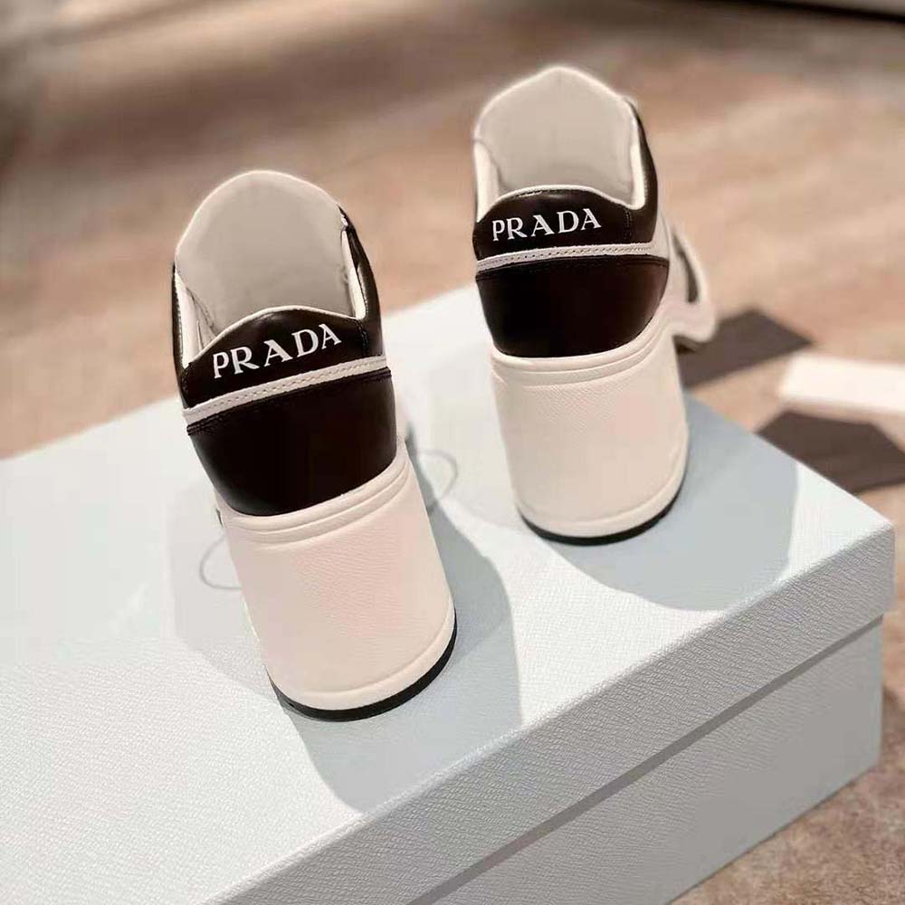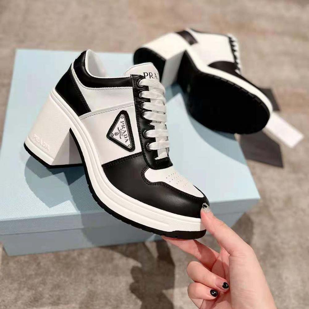 - The design features several interpretations of the Prada logo that appears on the tongue,