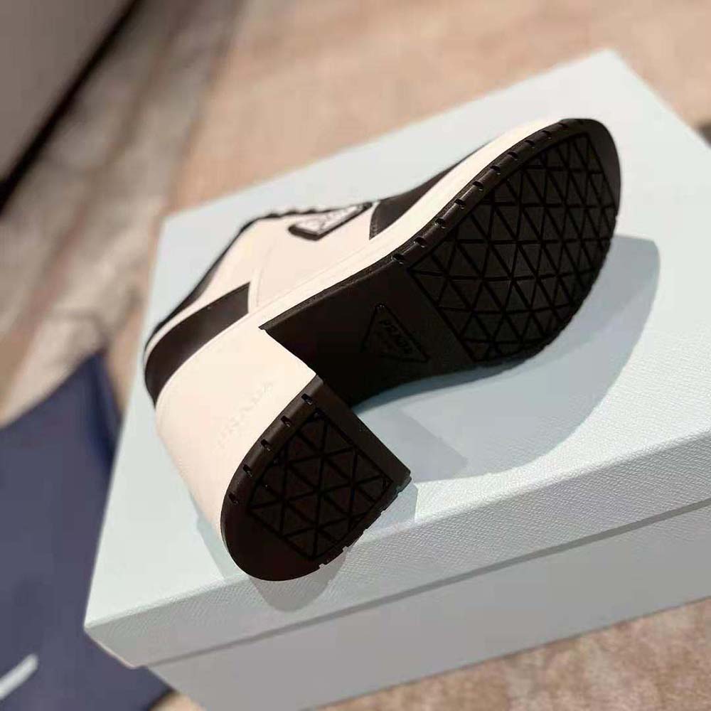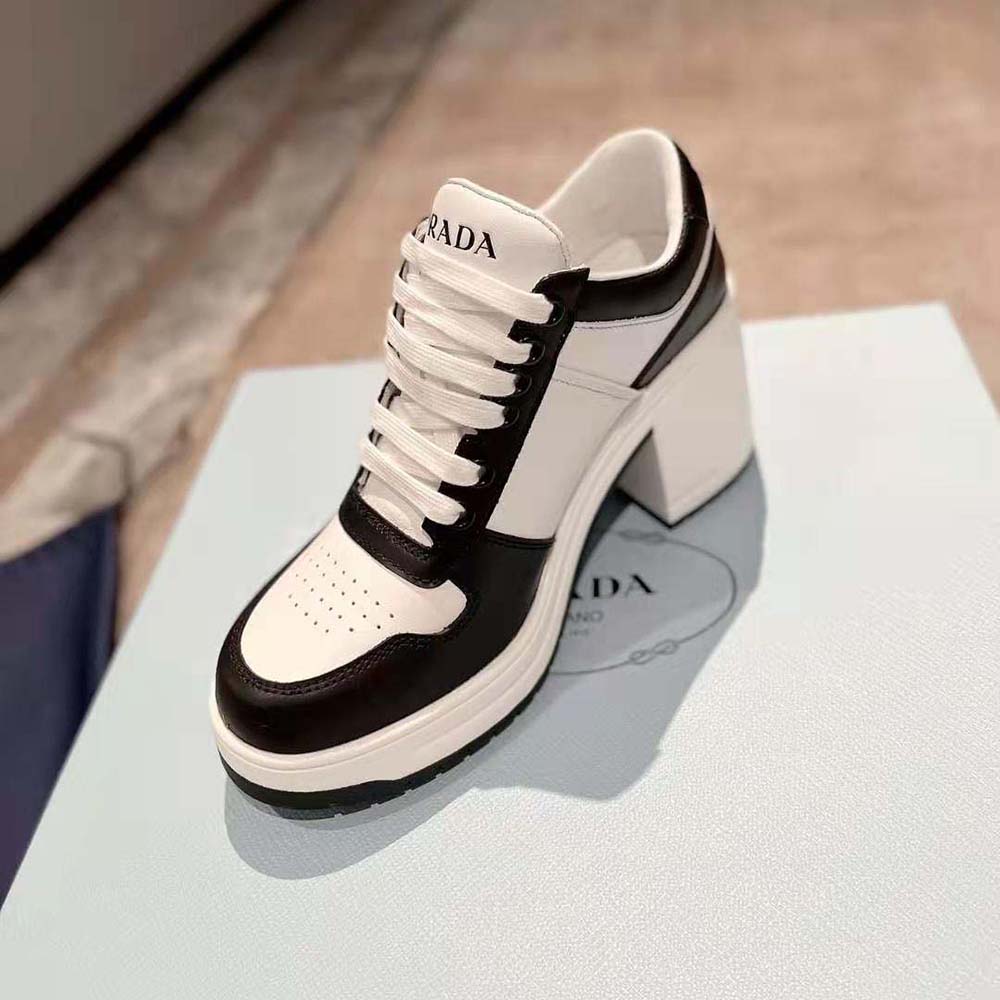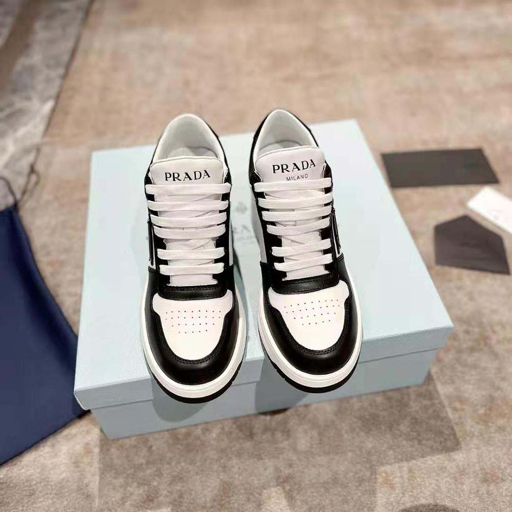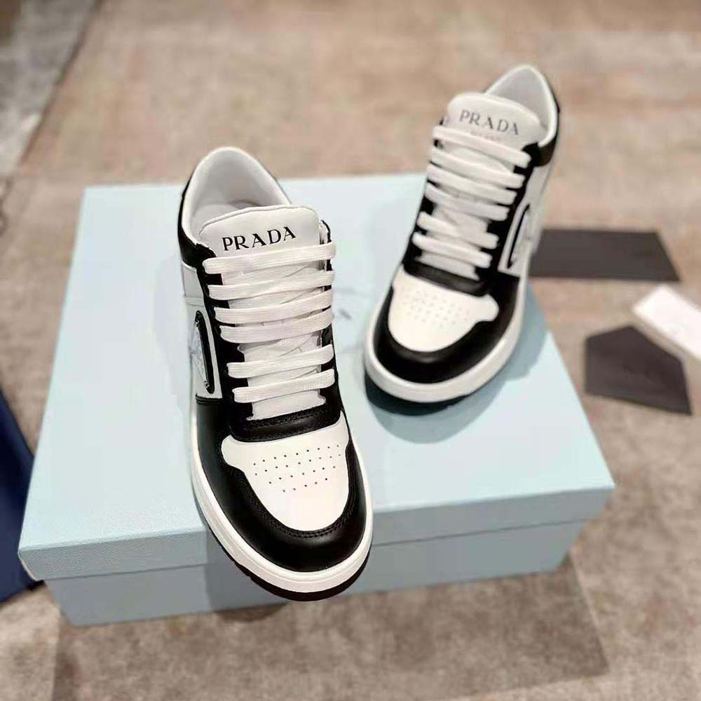 - The design features several interpretations of the Prada logo that appears on the tongue,